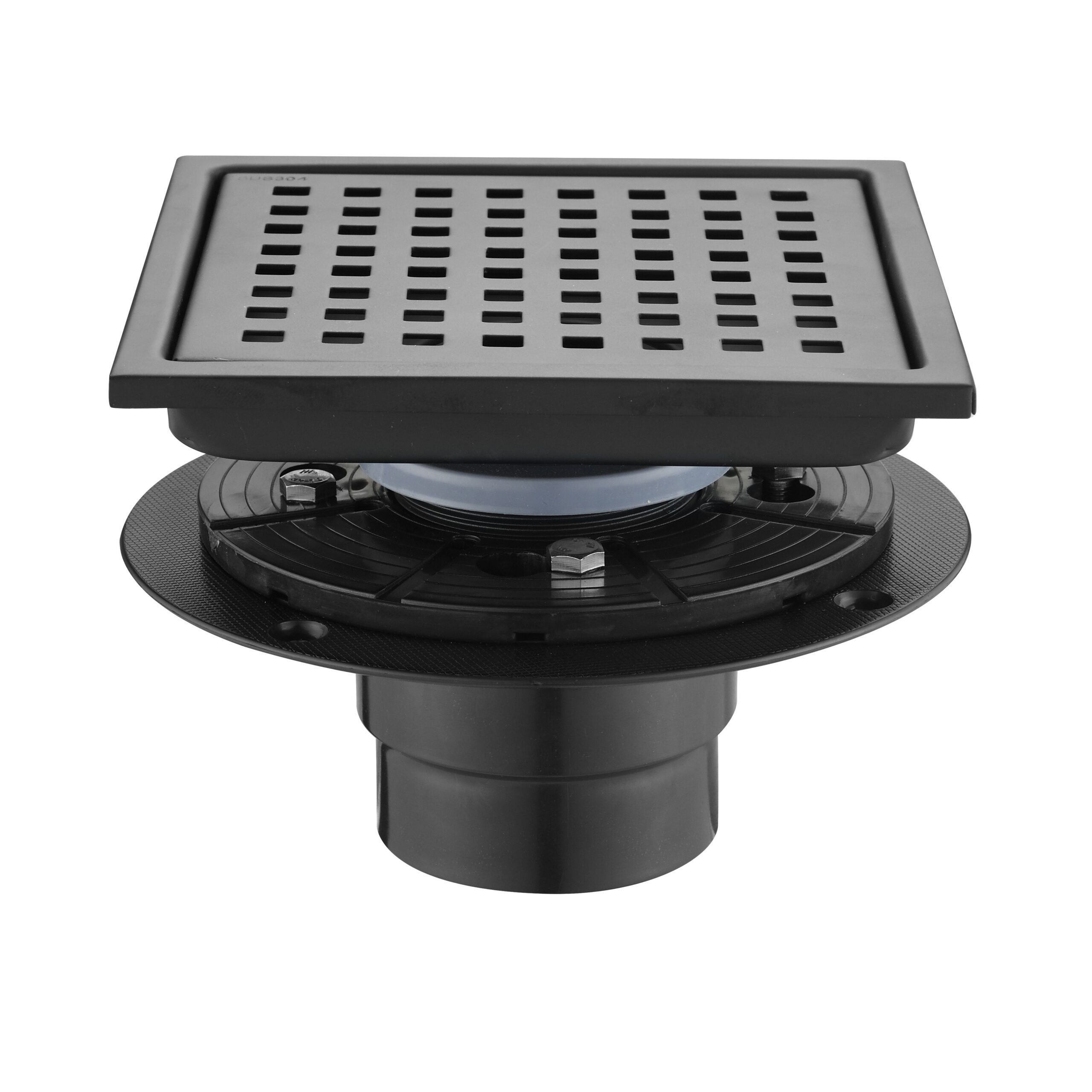 [square Shower floor drain Design]The square drain cover with grid design to enhance water flowing. Embedded design offer a invisible and seamless look on your floor. Heavy duty steel cover offer a good sealing ability.
