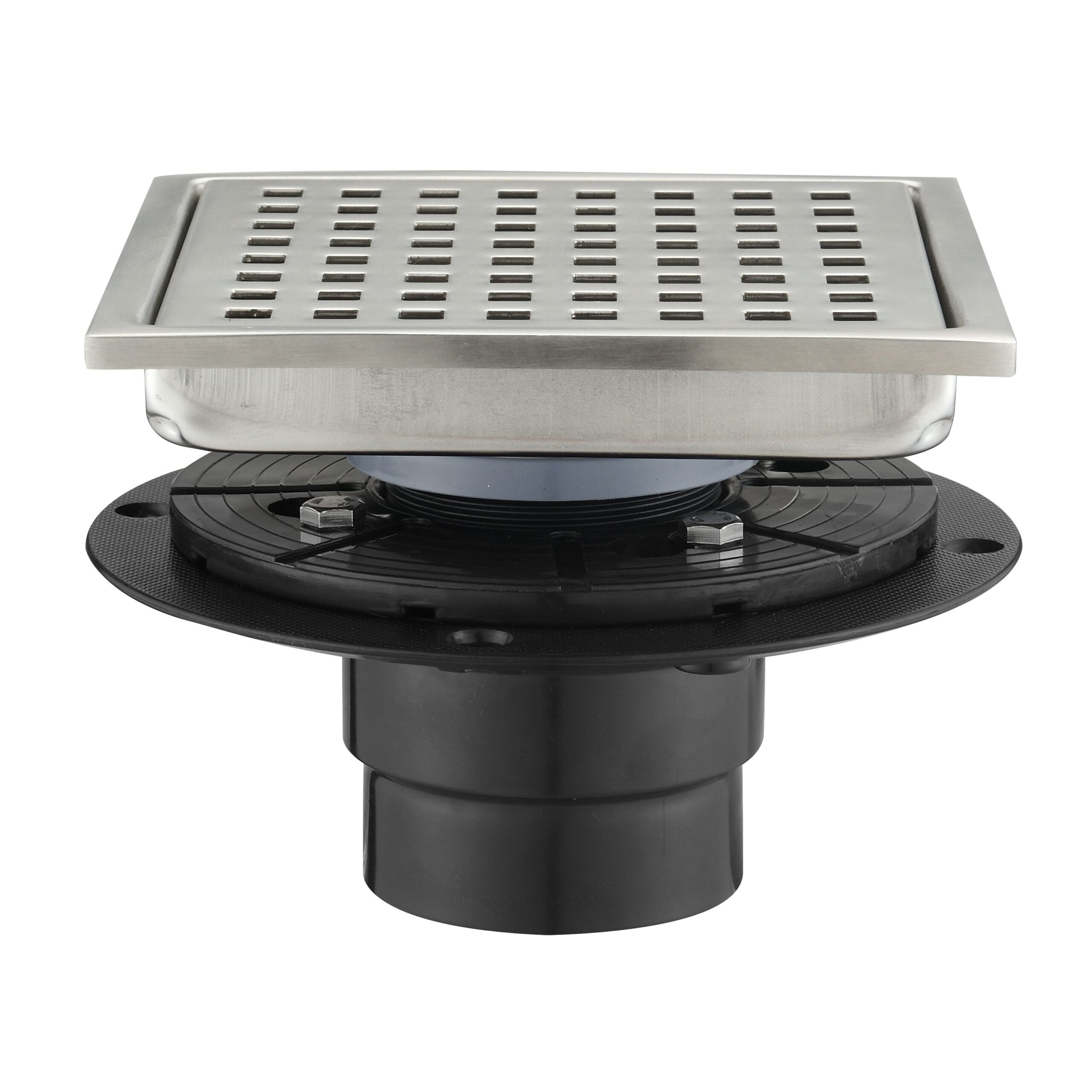 [square Shower floor drain Design]The square drain cover with grid design to enhance water flowing. Embedded design offer a invisible and seamless look on your floor. Heavy duty steel cover offer a good sealing ability.
