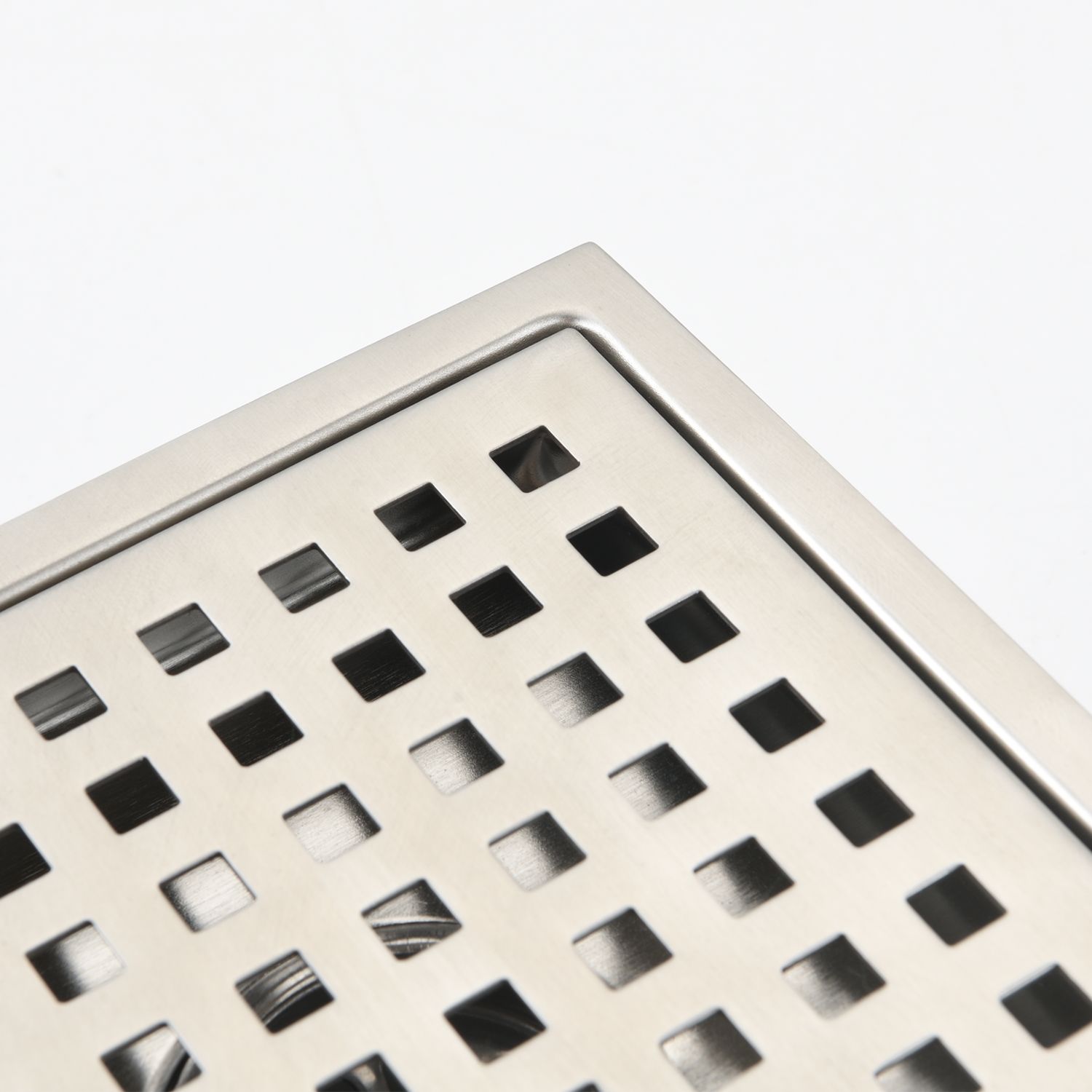 3.The square drain cover with grid design to enhance water flowing. Embedded design offer a invisible and seamless look on your floor