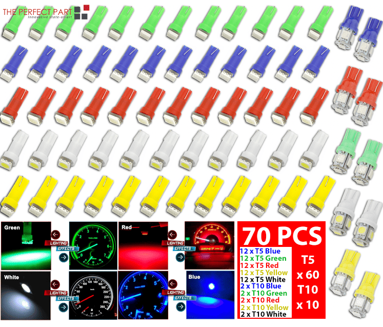 - 1 x 70PCS T5 T10 5050-SMD LED Speedometer Instrument Gauge Cluster Dash Light Bulbs