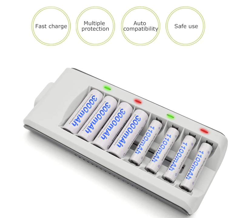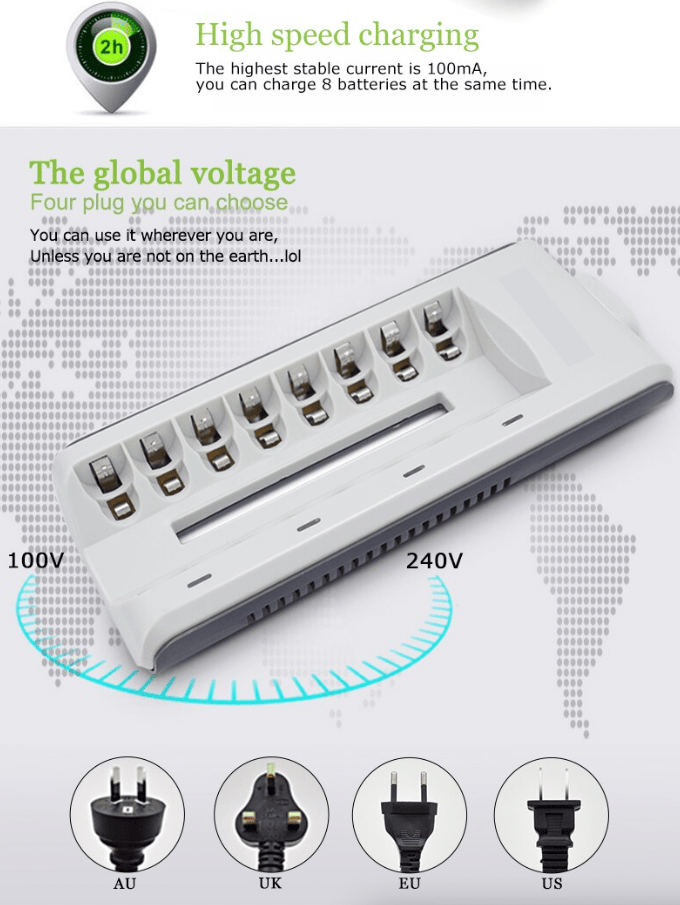 8 Slot Battery Charger For Ni-MH Ni-CD AA AAA Rechargeable Batteries Fast Charge