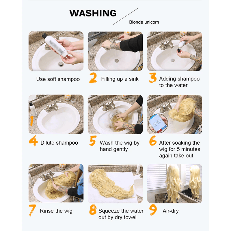 When the wig becomes dry, disheveled, or not wavy, this wig also needs care. You can spray wig care solution over the wig 2 to 3 times. Remember to keep the wig off the solution for 15-25 cm with a small amount when spraying, especially at the center of the wig ends.