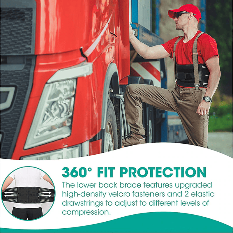 - PREVENT BACK INJURIES Our Back support with 2 elastic straps are designed to add extra compression around the lower back to prevent back injuries from weight lifting, long standing or sitting, doing housework, working, etc. Relief waist muscles ache, disc herniation, sciatica, scoliosis etc. when wearing the back belt.