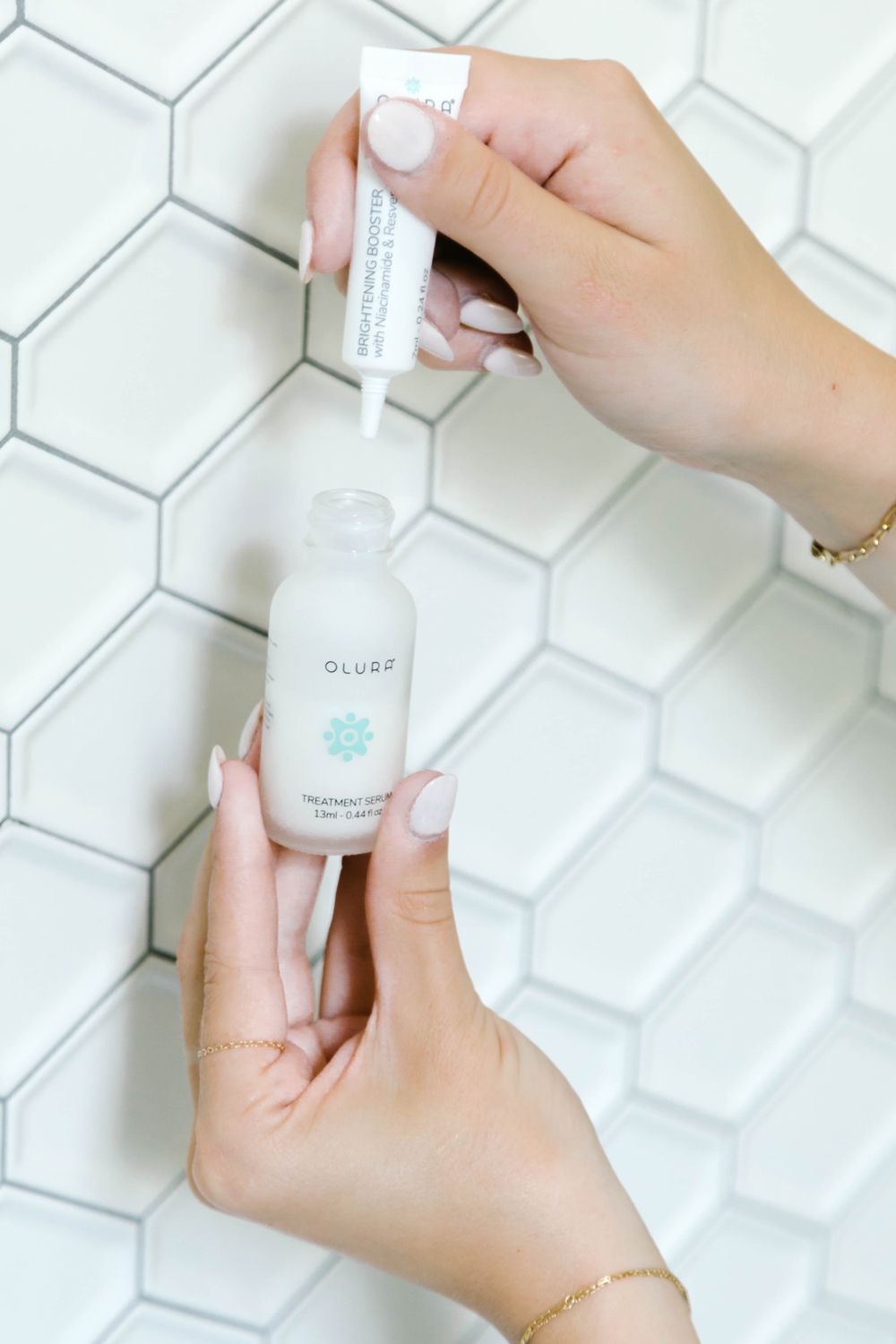 Customize: Pour your boosters into the Olura Treatment Serum bottle and shake for 10-15 seconds to blend thoroughly.