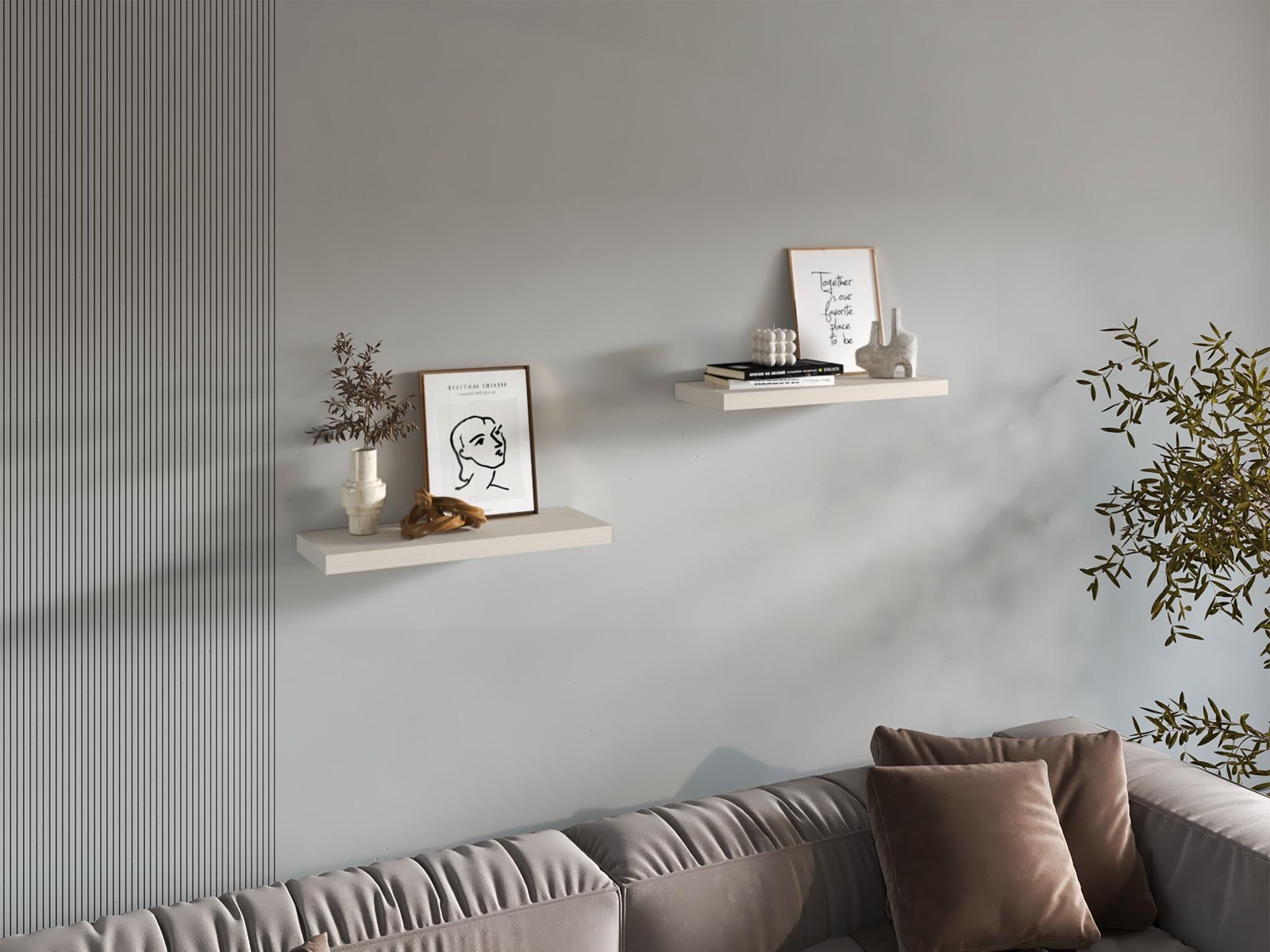 The Belville Floating Shelves provide a modern and practical solution for displaying decor, books, or essentials in your living room or office. With 2 spacious shelves, these floating shelves offer ample space for organizing while maintaining a minimalist look. The white finish adds a sleek and clean aesthetic, making them an ideal choice for contemporary interiors. Perfect for maximizing wall space and creating a clutter-free environment.