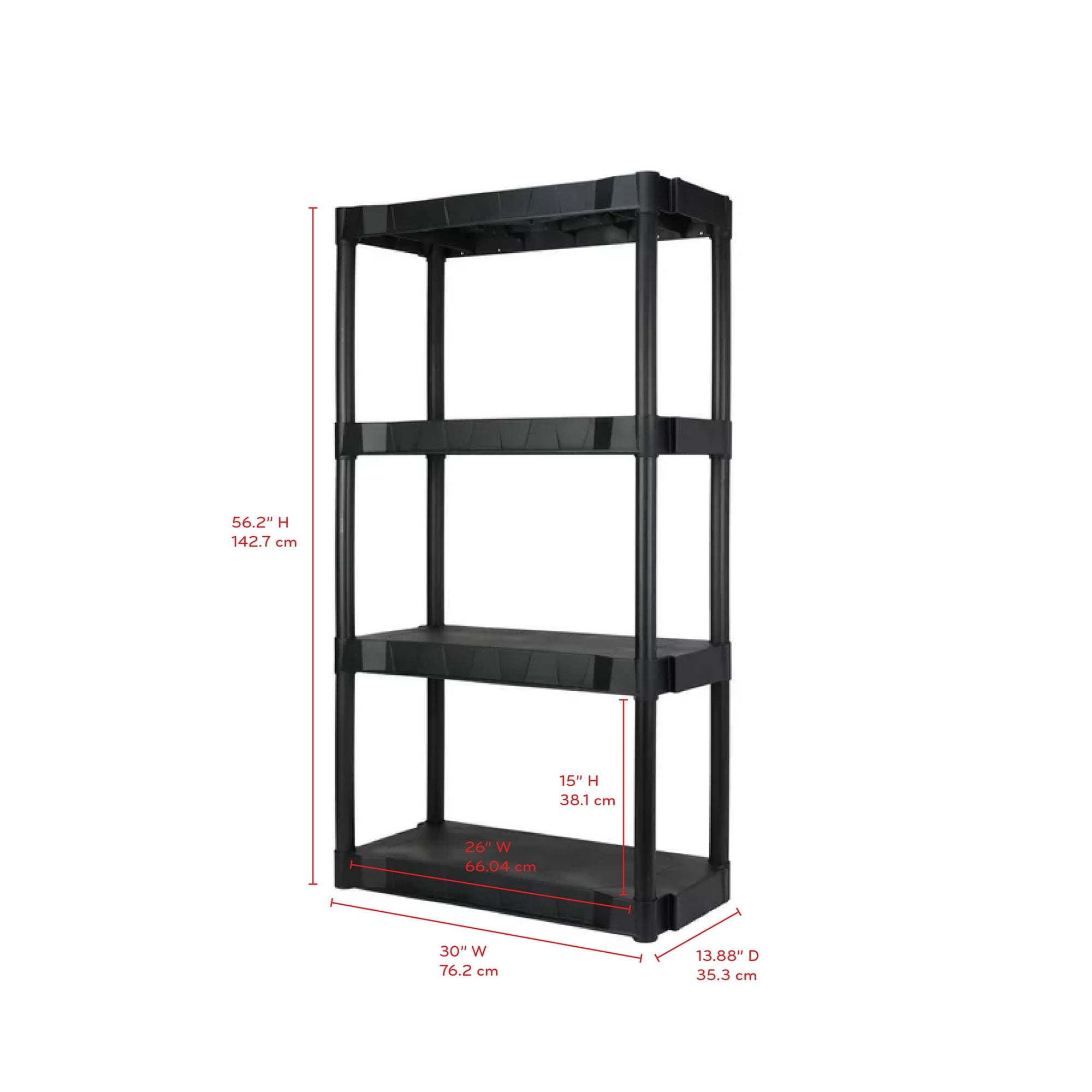 Black Plastic 4-Tier 56.2″ H x 30″” W x 13.8″ D, 280lb Total Capacity