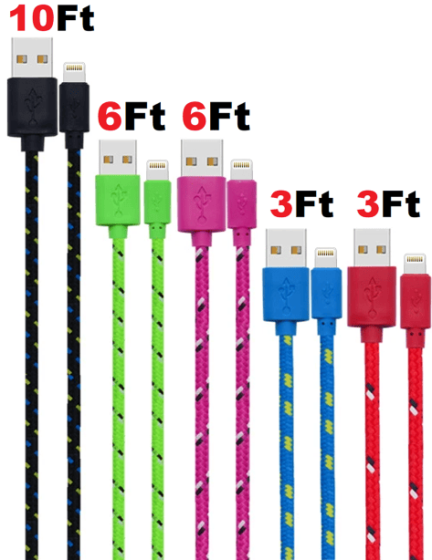 - PERFECT COMBINATION — 5 Pack Multi Color For iPhone USB A to 8 Pin Cable. Every package contains 5 cables in different lengths 3ft 3ft 6ft 6ft and 10ft for various distances charging! You can all enjoy watching or playing a game, follow your heart.