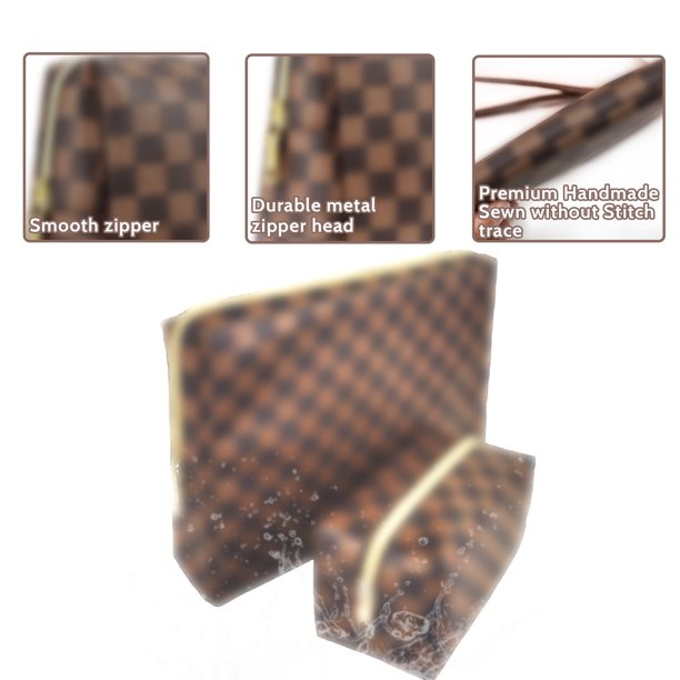Checkered Makeup Bag, 2Pcs Travel Cosmetic Bags, Portable Toiletry Organizer for Women, Lightweight and Waterproof Leather Toiletries Bag for Girl Friend Wife Christmas Gifts, Brown
