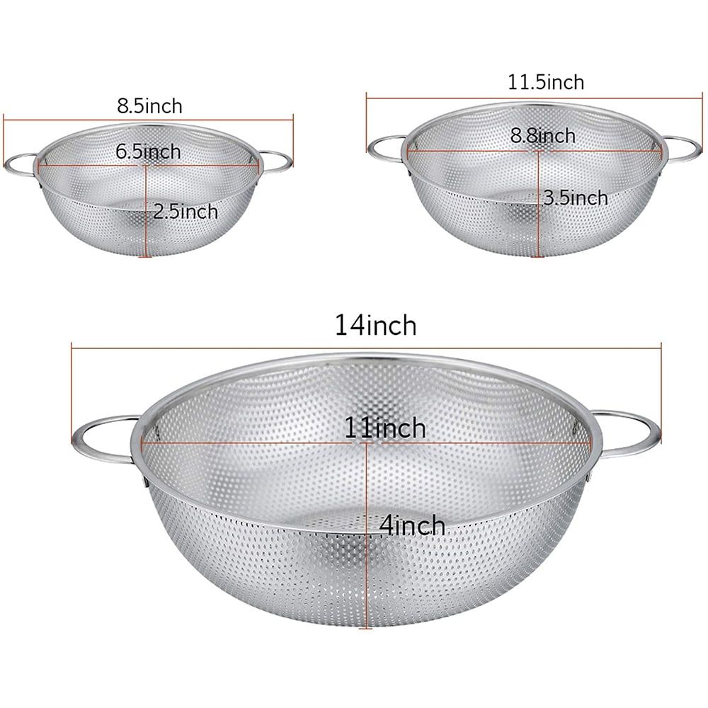 Colander Set of 3, Stainless Steel Micro-Perforated Colanders Strainers for Draining Rinsing Washing, Ideal for Pasta Vegetables Fruits, Heavy Duty & Dishwasher Safe – 1/3/5 Quart