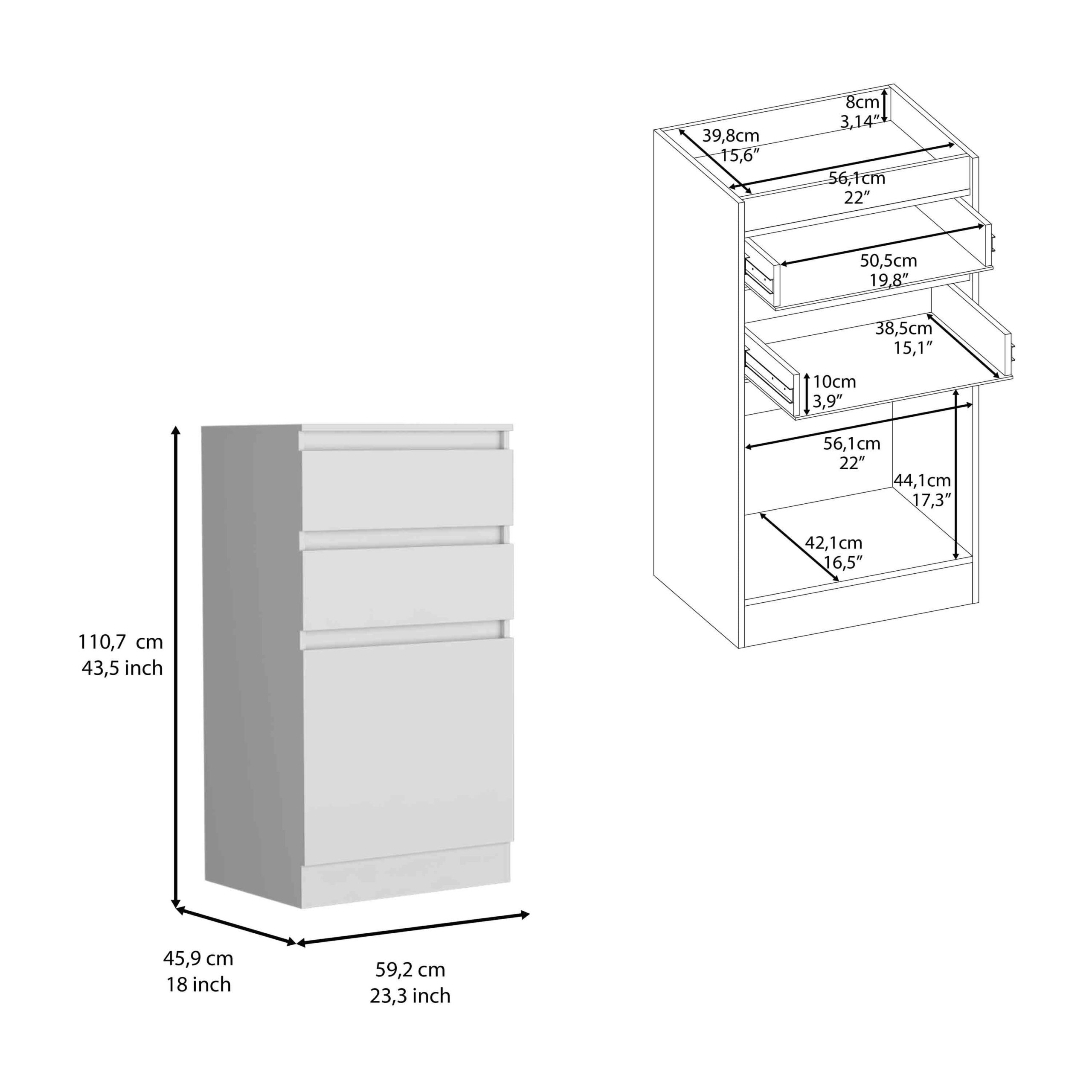 Palmer 3 Drawers Dresser, Chest of Drawers, White