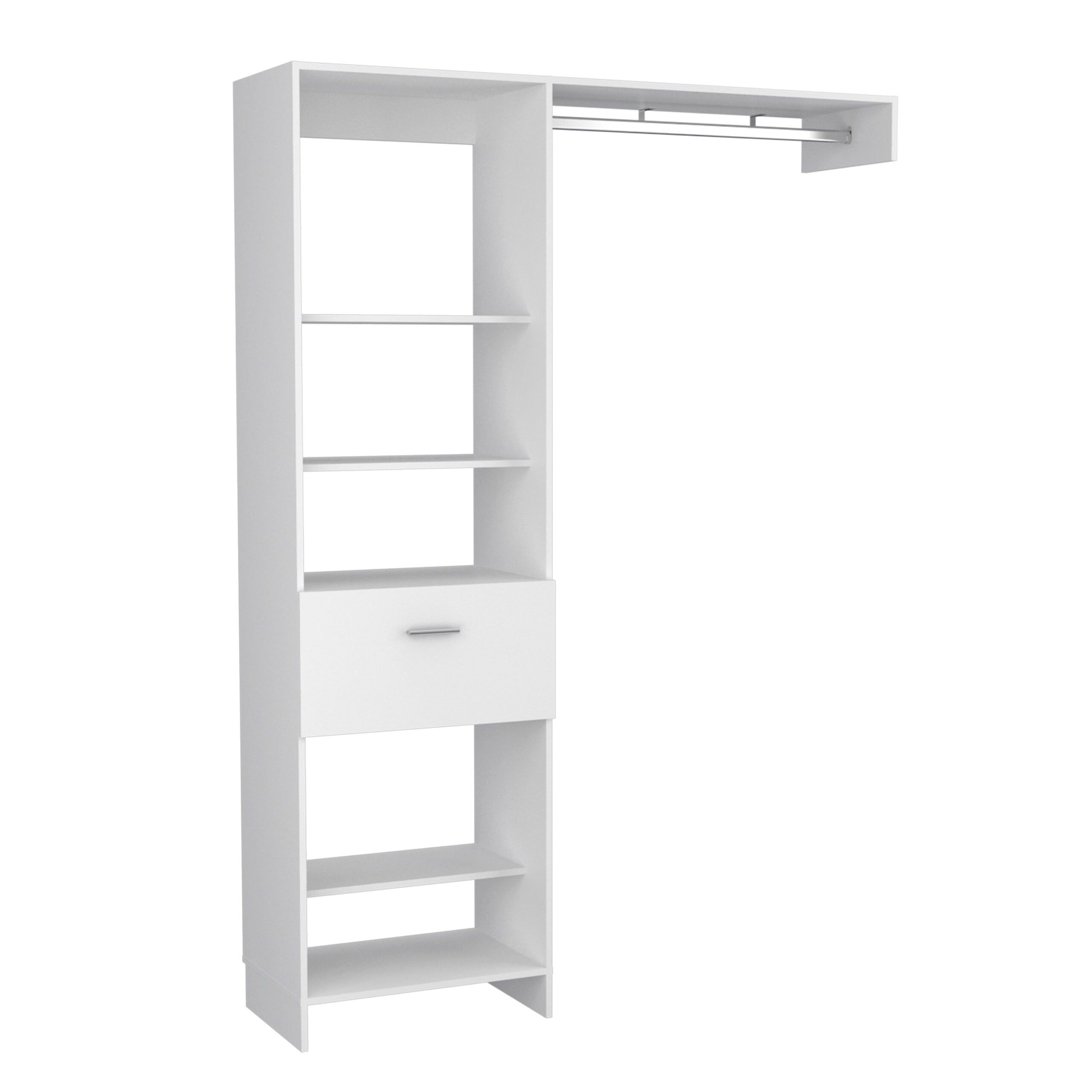 Dynamic Closet System, Five Open Shelves, One Drawer, One Metal Rod