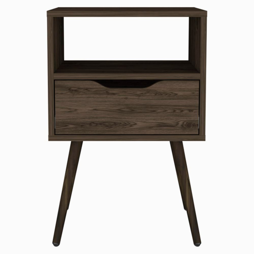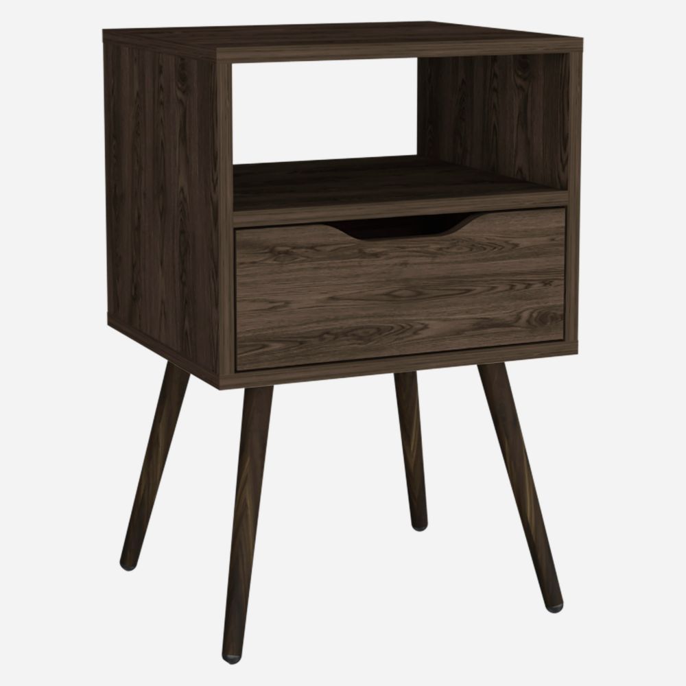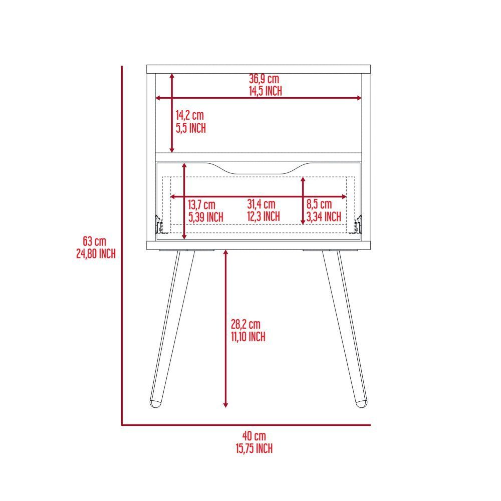 Emma Nightstand, Superior Top, Four Legs, One Open Shelf, One Drawer