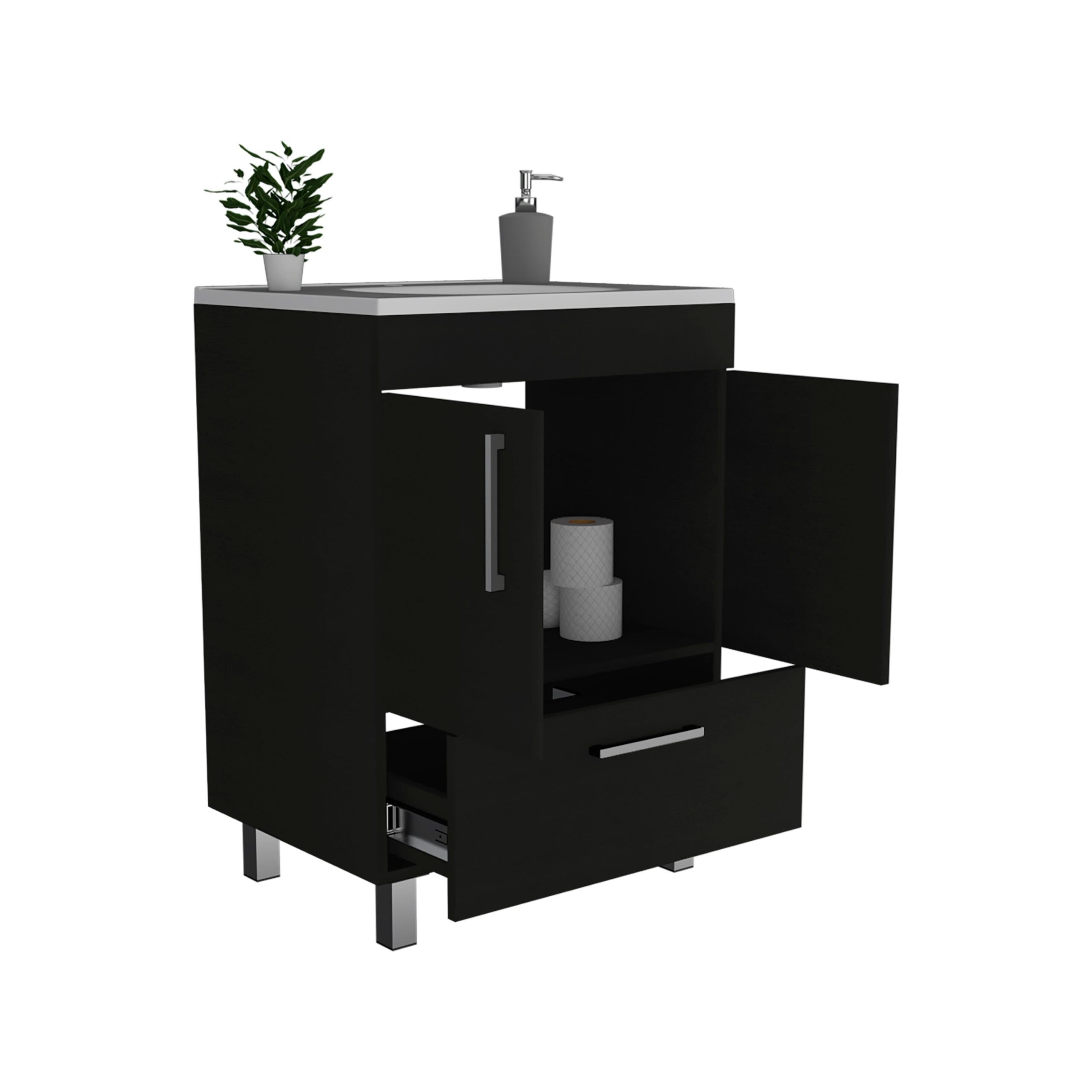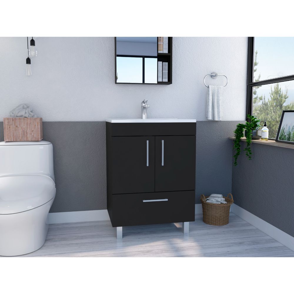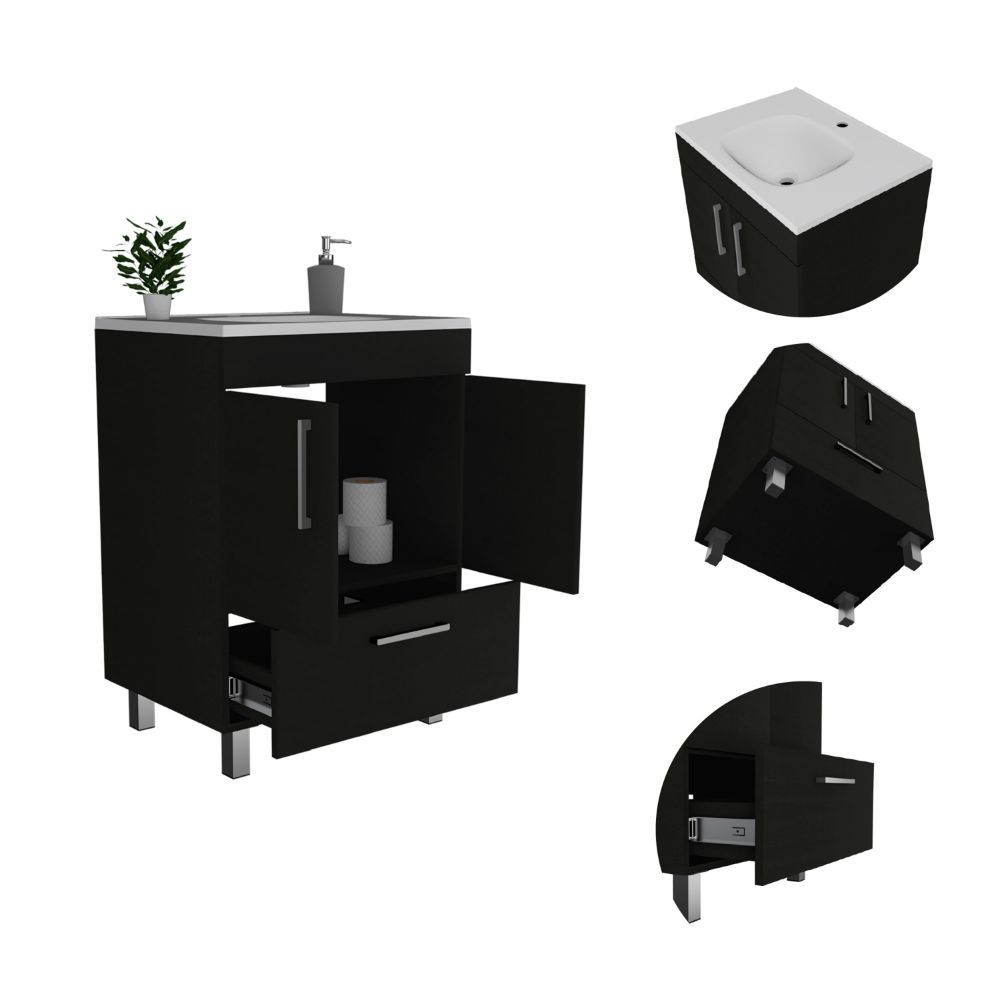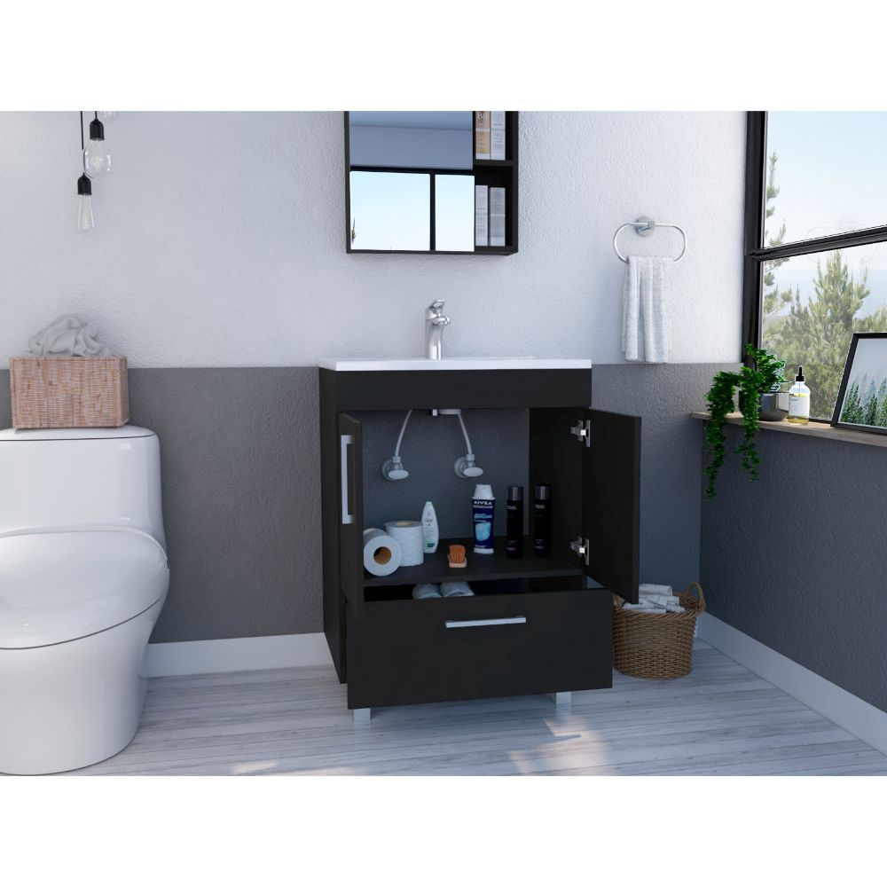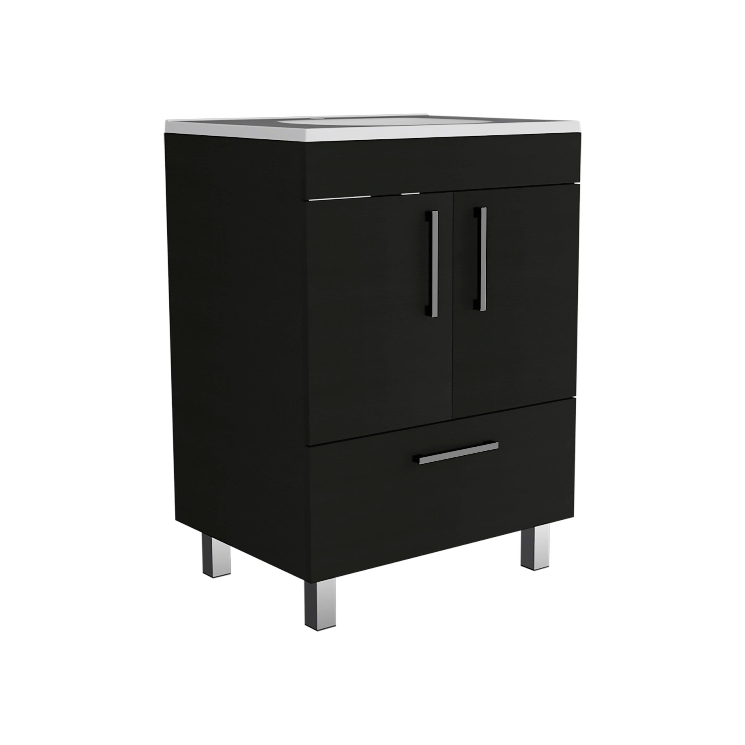 Essential Single Bathroom Vanity is the perfect addition to any bathroom, big or small. Its contemporary design and sleek black finish will complement any decor, while its vast storage capacity (22.4”W X 15.5”H) provides ample room for all your essentials. Plus, it’s specially designed to tolerate the dampness of a bathroom environment, making it a wise choice for any homeowner, and the perfect superior-top (29.5”) *****FAUCET NOT INCLUDED**** Designed with elegant Black Wengue, Light Grey, White manufactured wood.