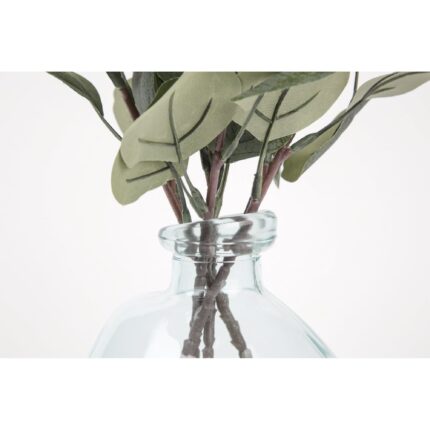 12″ Artificial Green Eucalyptus in Blown Glass Vase