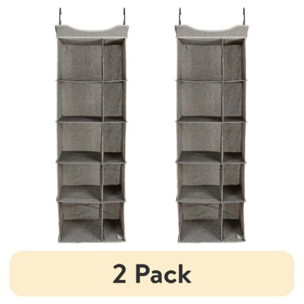 (2 Pack)Charleston10-Compartment Hanging Closet Organizer, Fabric, 16″W x 12″D x 48″H
