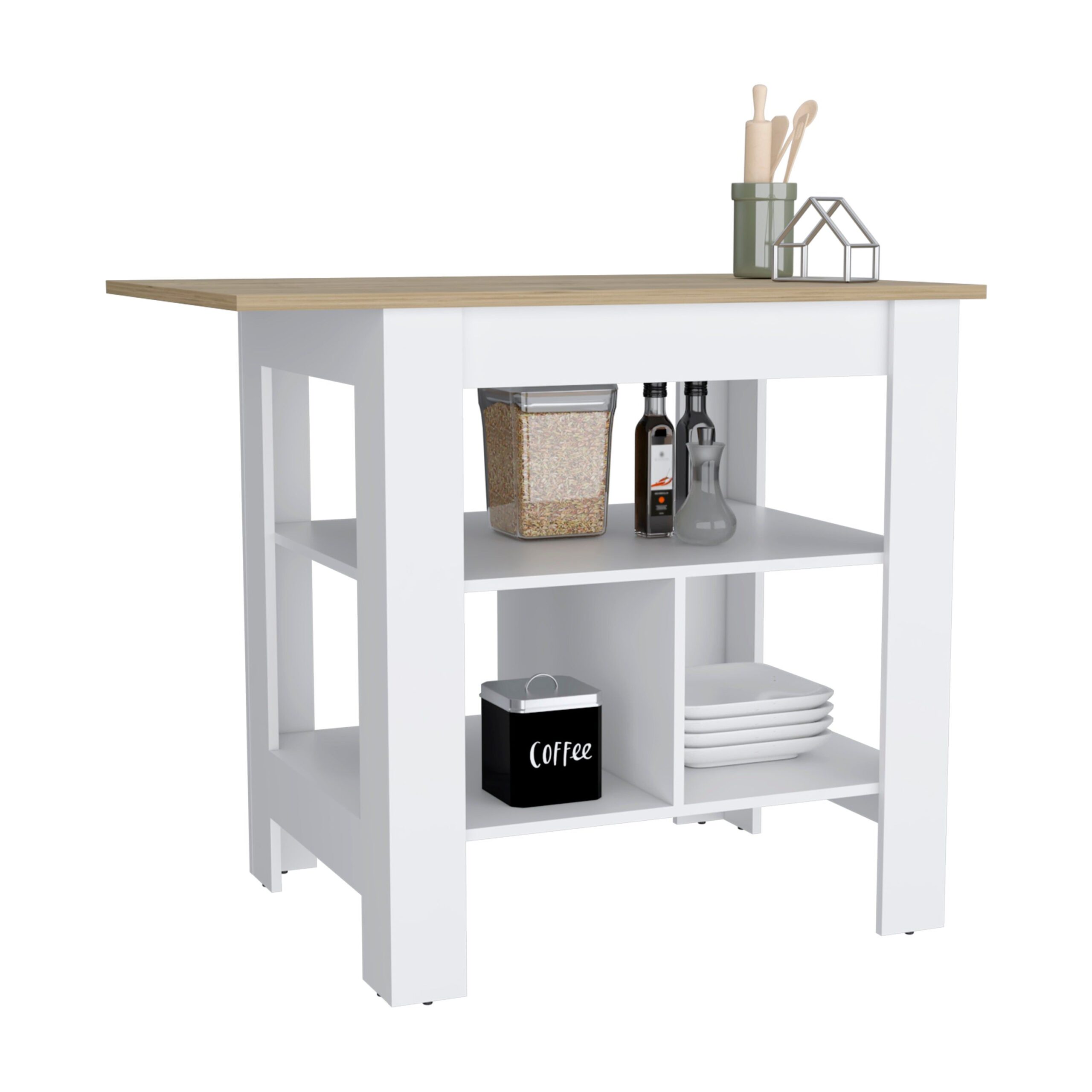 Finley Kitchen Island. When it comes to having an essential piece of furniture in your kitchen, this is it! Designed with sturdy materials and exclusive finishes, this kitchen island is perfect for you. This island is ergonomically perfect, with three wide low shelves for storage and an upper surface ideal for your preparations or as a central table. Thanks to its dimensions, it is the perfect addition to any kitchen.