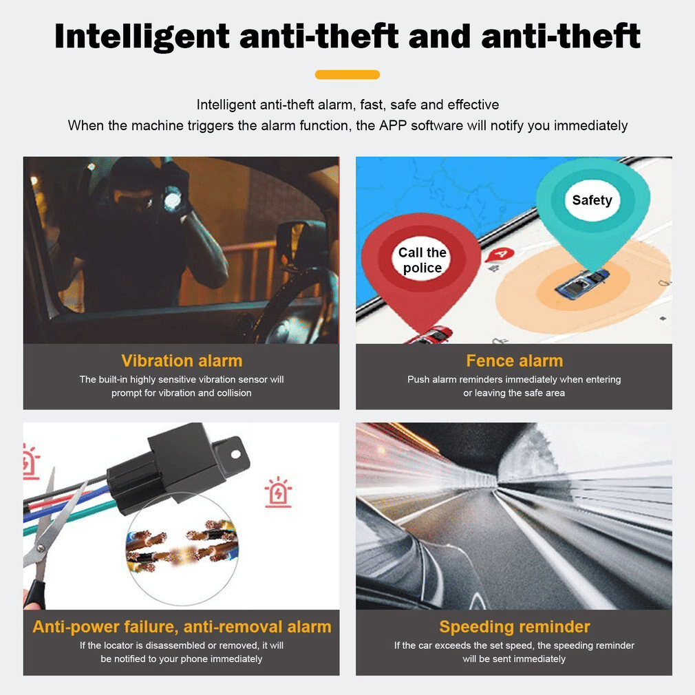 • Intelligent Anti-Theft System: Automatically cancel the anti-theft mode when car starts, when car power off, the GPS tracker will automatically enter the anti-theft mode.