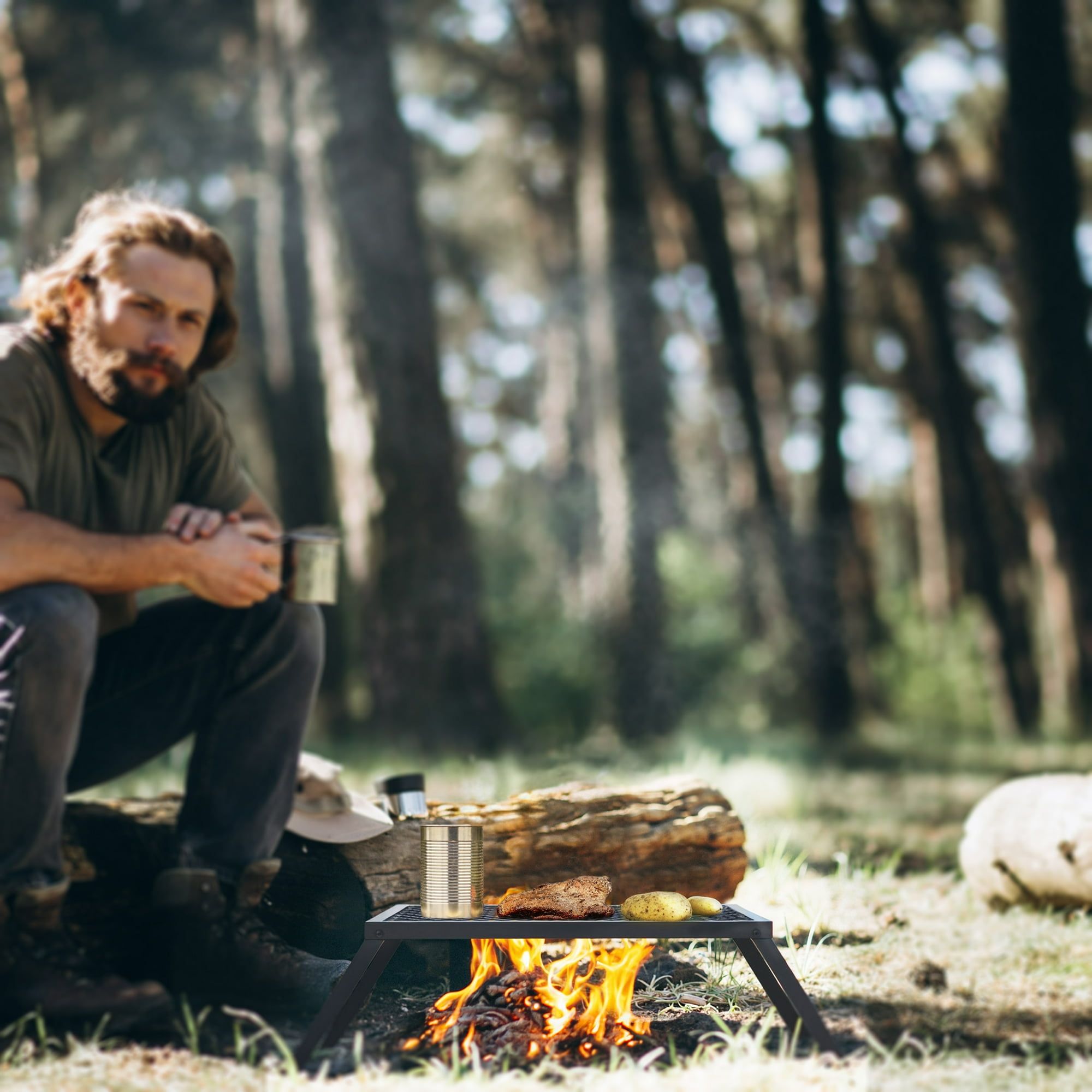 Heavy-Duty Carbon Steel Campfire Grill, 24″ x 16″, Foldable Legs, Black