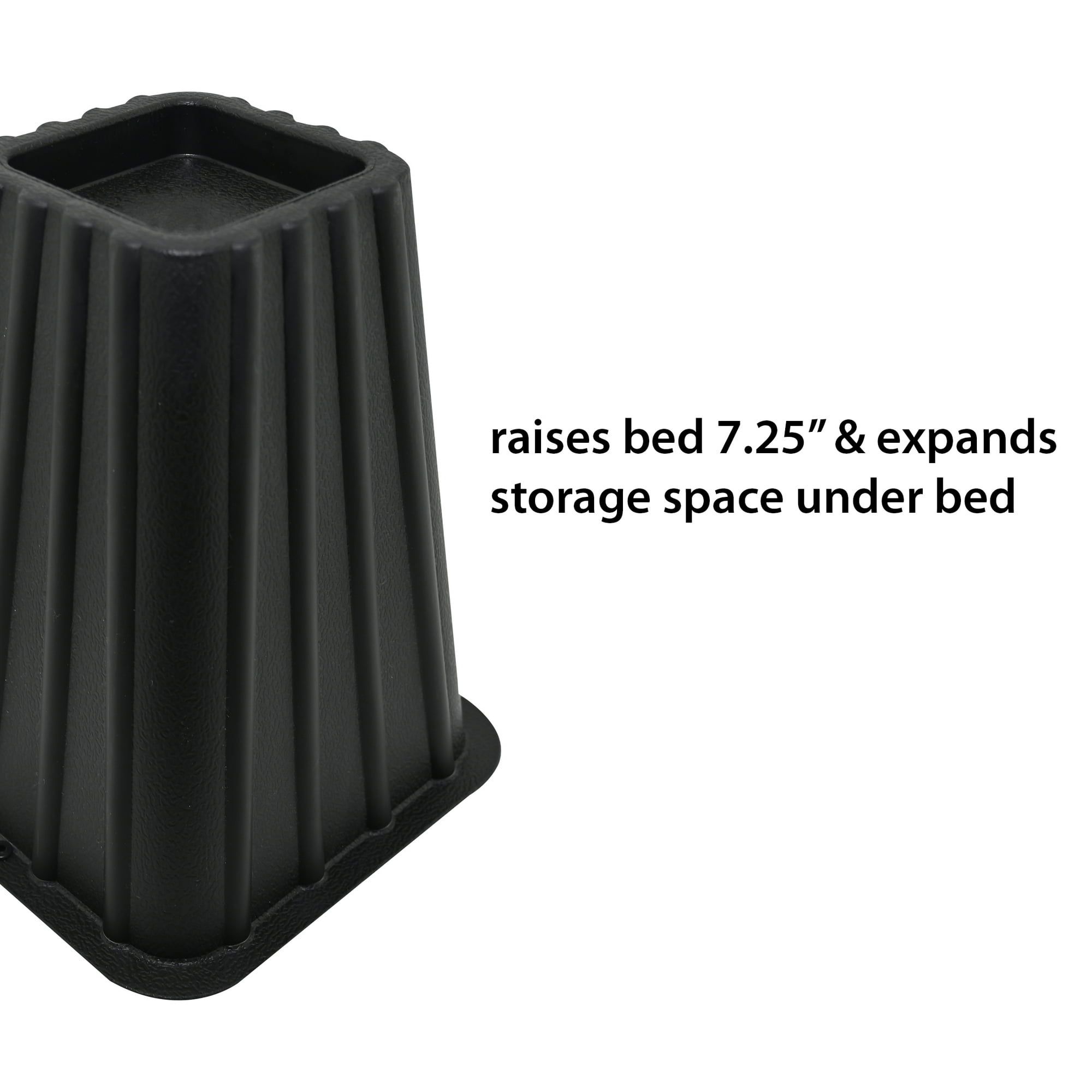 When you need some more storage space, or your bed just isn’t tall enough for your liking, reach for these Home Management Tall Bed Risers in black to lift up your bed to instantly create more space. Each pack comes with four risers, perfect for a four-post bed. They’re 7.25 inches tall and fits bedposts or casters up to 2.75 inches wide. These tall bed risers are made of a heavy-duty polypropylene plastic construction and can hold up to 300 pounds per riser. Simply slip a riser under each bedpost and instantly upgrade your bed by 7.25" inches, making it perfect for creating more under the bed space or just making it easier to get in and out of bed if you’re tall.