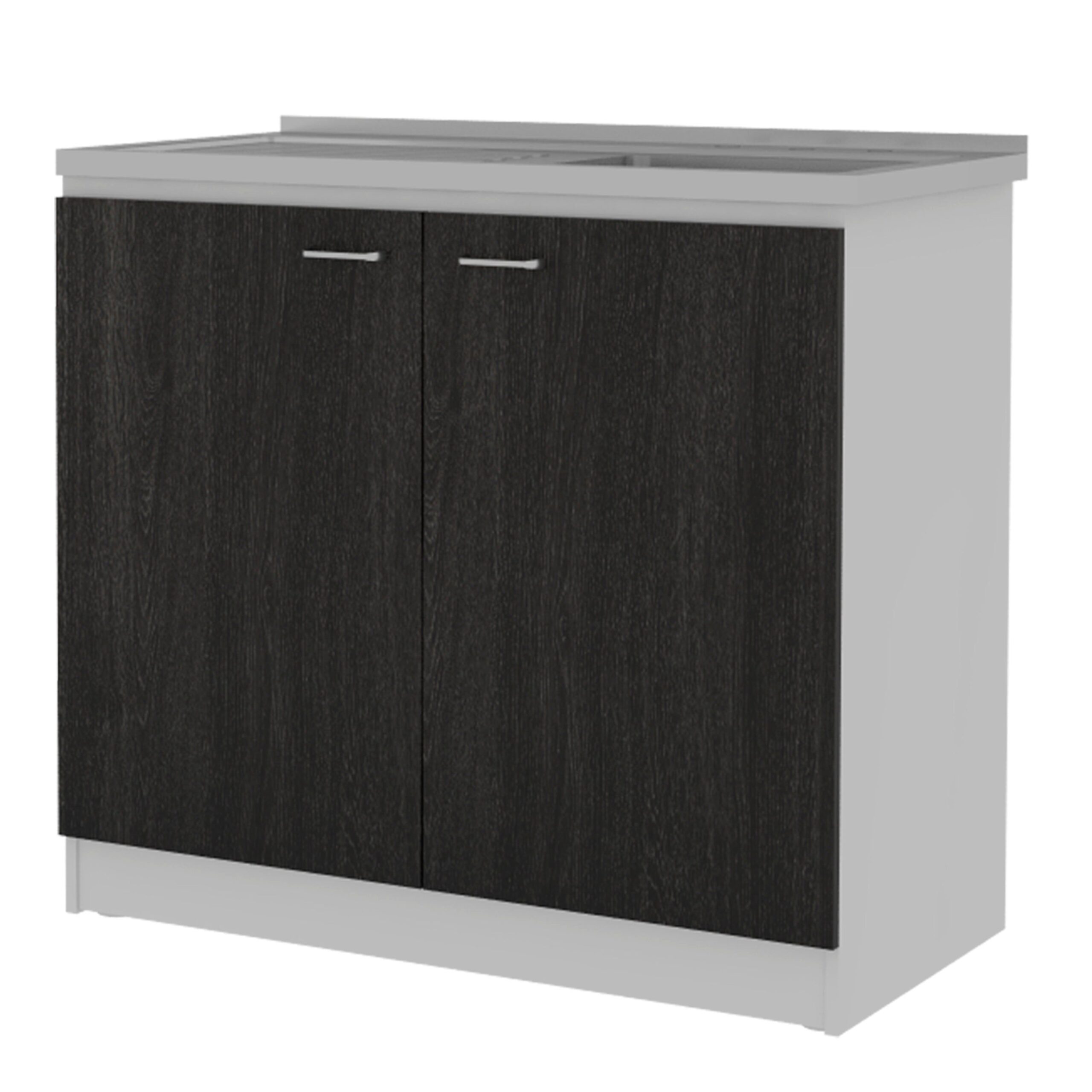 Luther Two Piece Kitchen Set, Wall Cabinet + Utility Sink Cabinet, Black/White