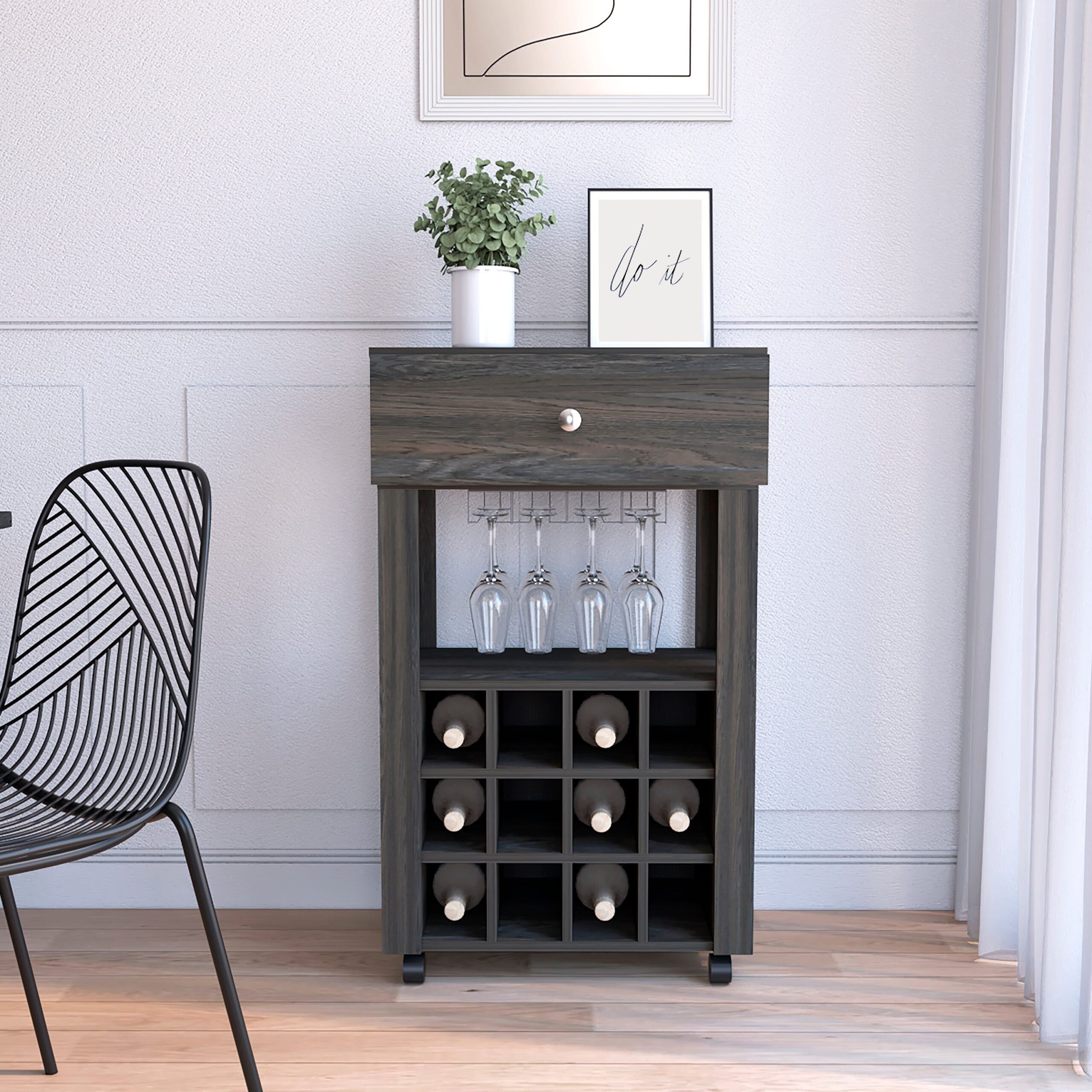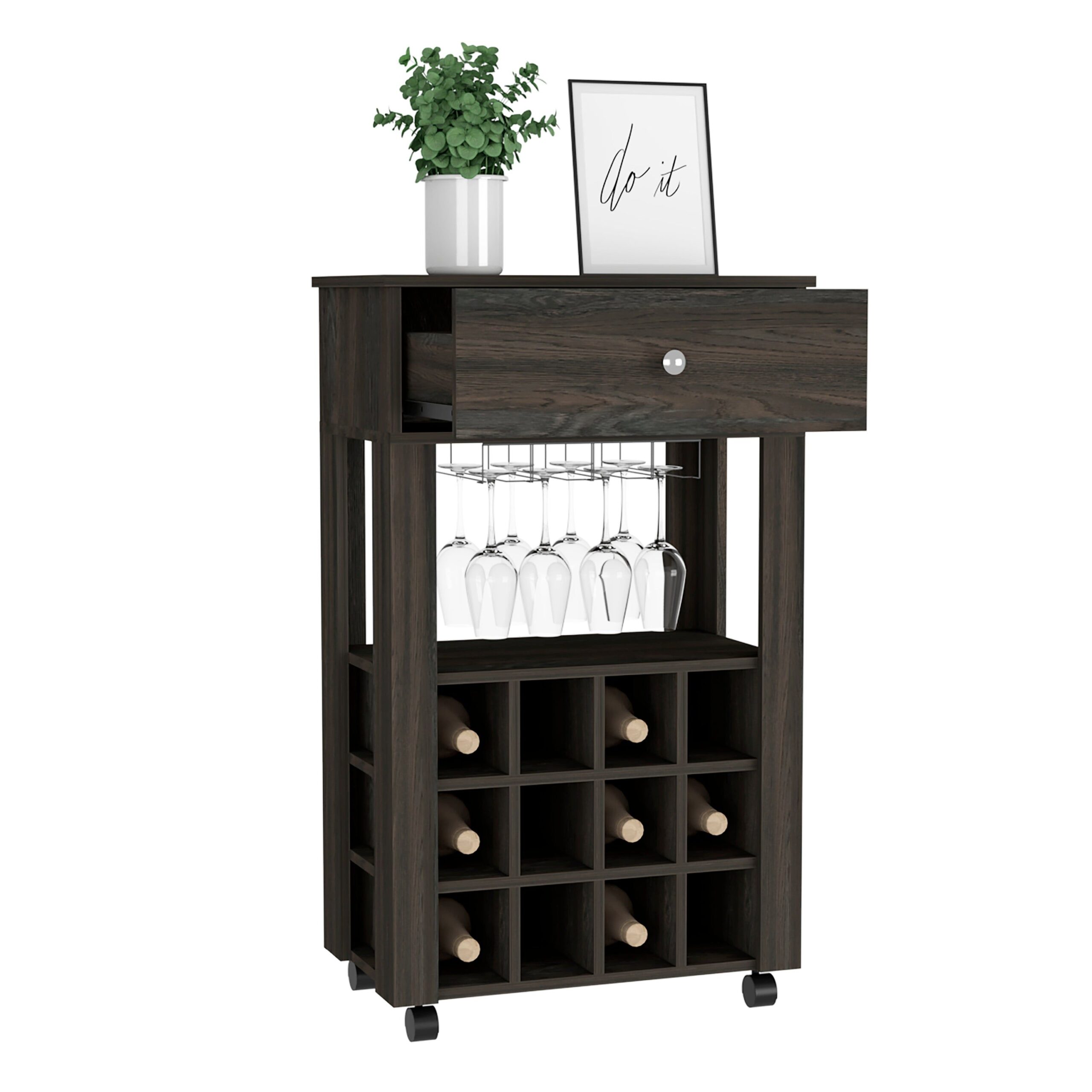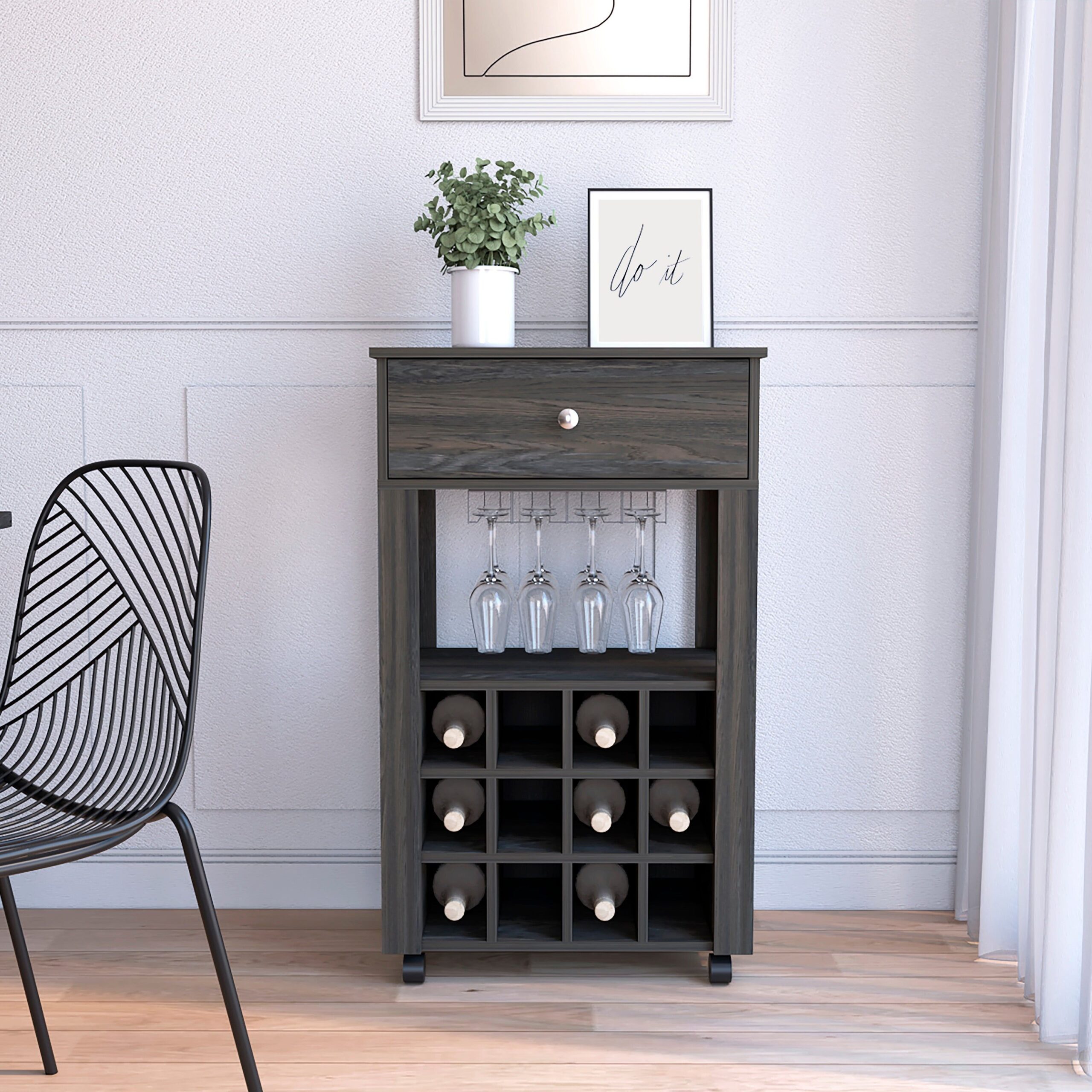 Margh Bar Cart, Twelve Built-in Wine Rack, Drawer