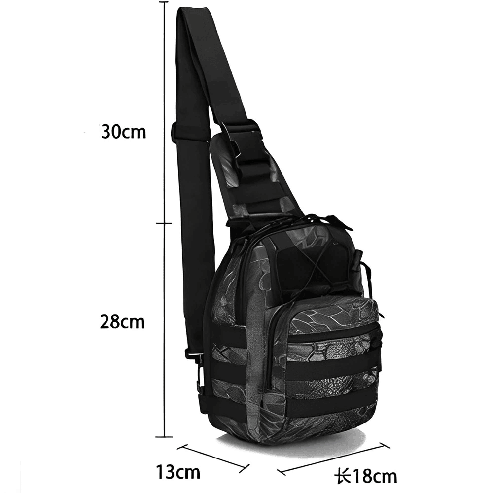 Our Tactical Shoulder Bag is the perfect compact solution for organizing and carrying your gear for EDC, hiking, camping, hunting, attending sports events, school, or working outdoors. A generous number of dividers, straps, clips, loops, pockets, and snaps give this MOLLE compatible pack endless configurations for whatever your specific needs are. Heavy on utility, it allows you to configure your pack to carry it as a shoulder bag, chest pack or simply hand carry it by the hand strap.