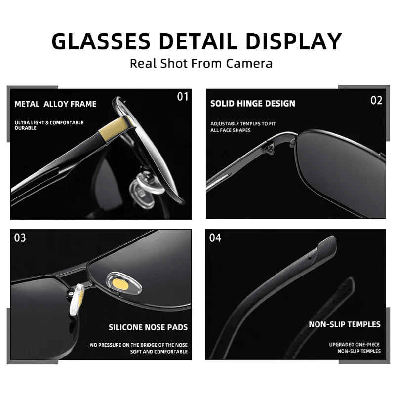 - Material: Metal Frame & UVA/UVB Coated Polarized Lens