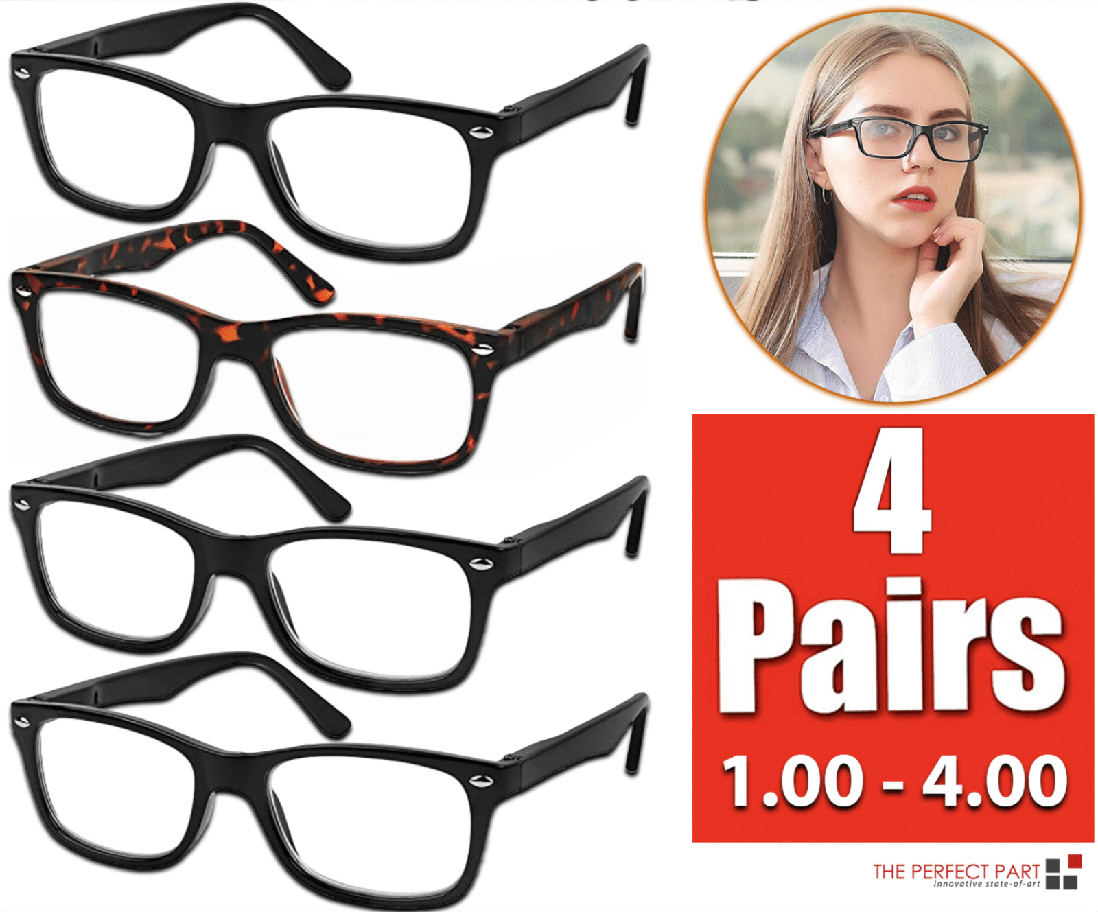 Mens Womens Reading Glasses 4 Pairs Unisex Classic Retro Spring Hinge Readers