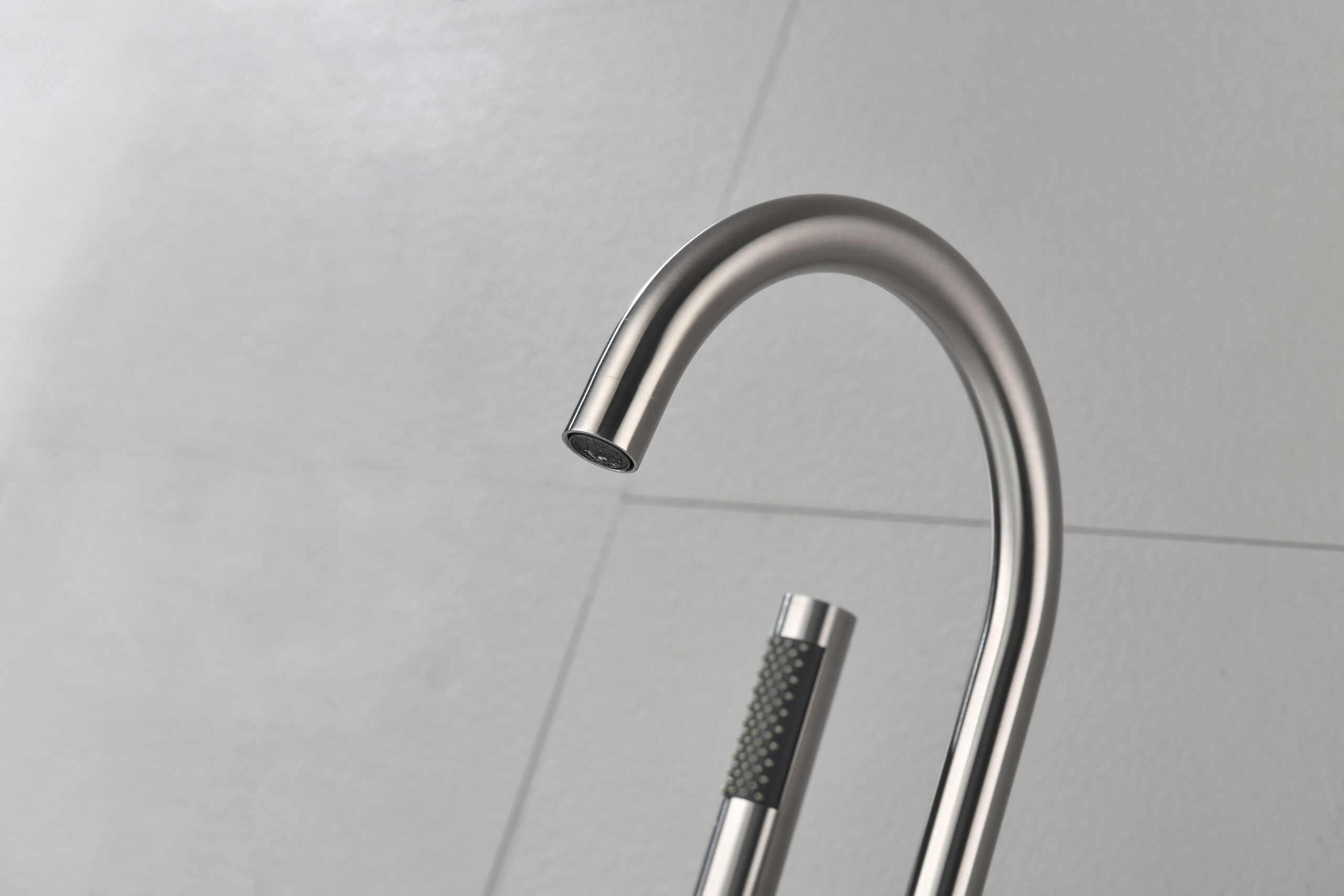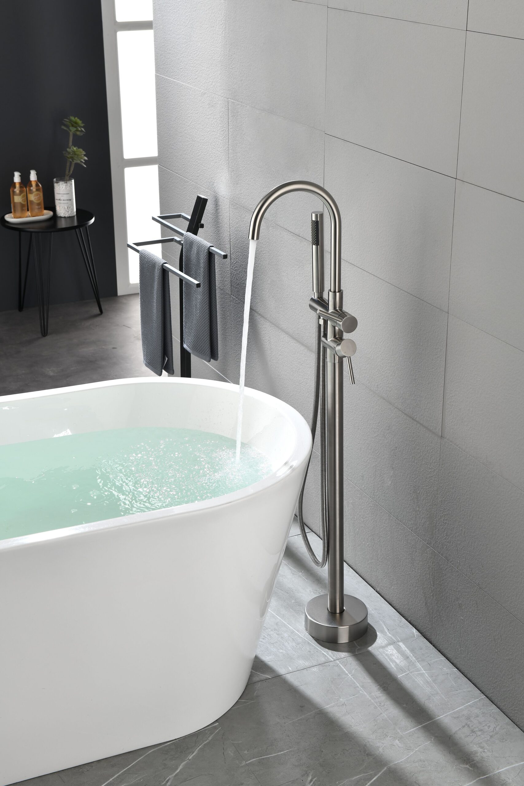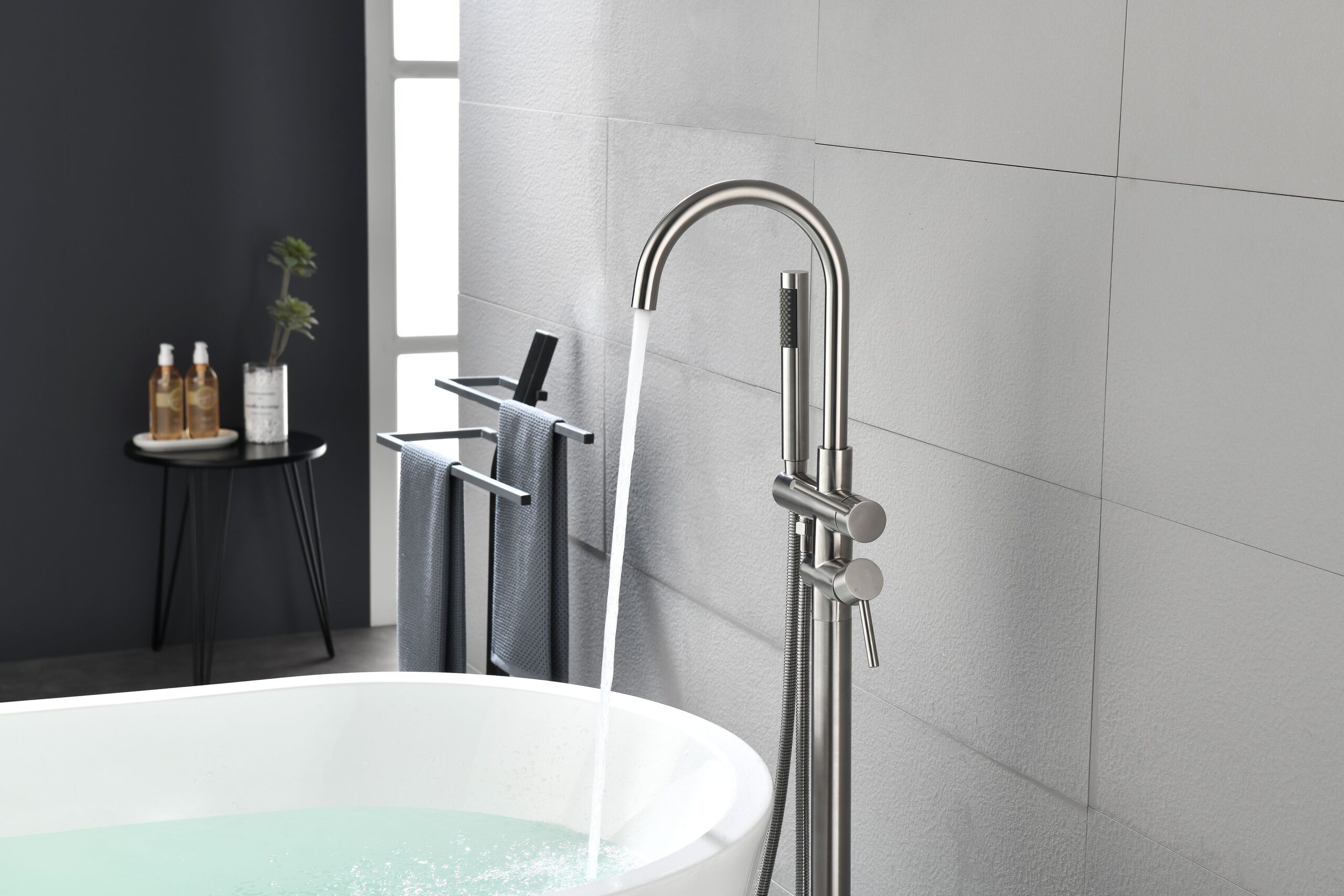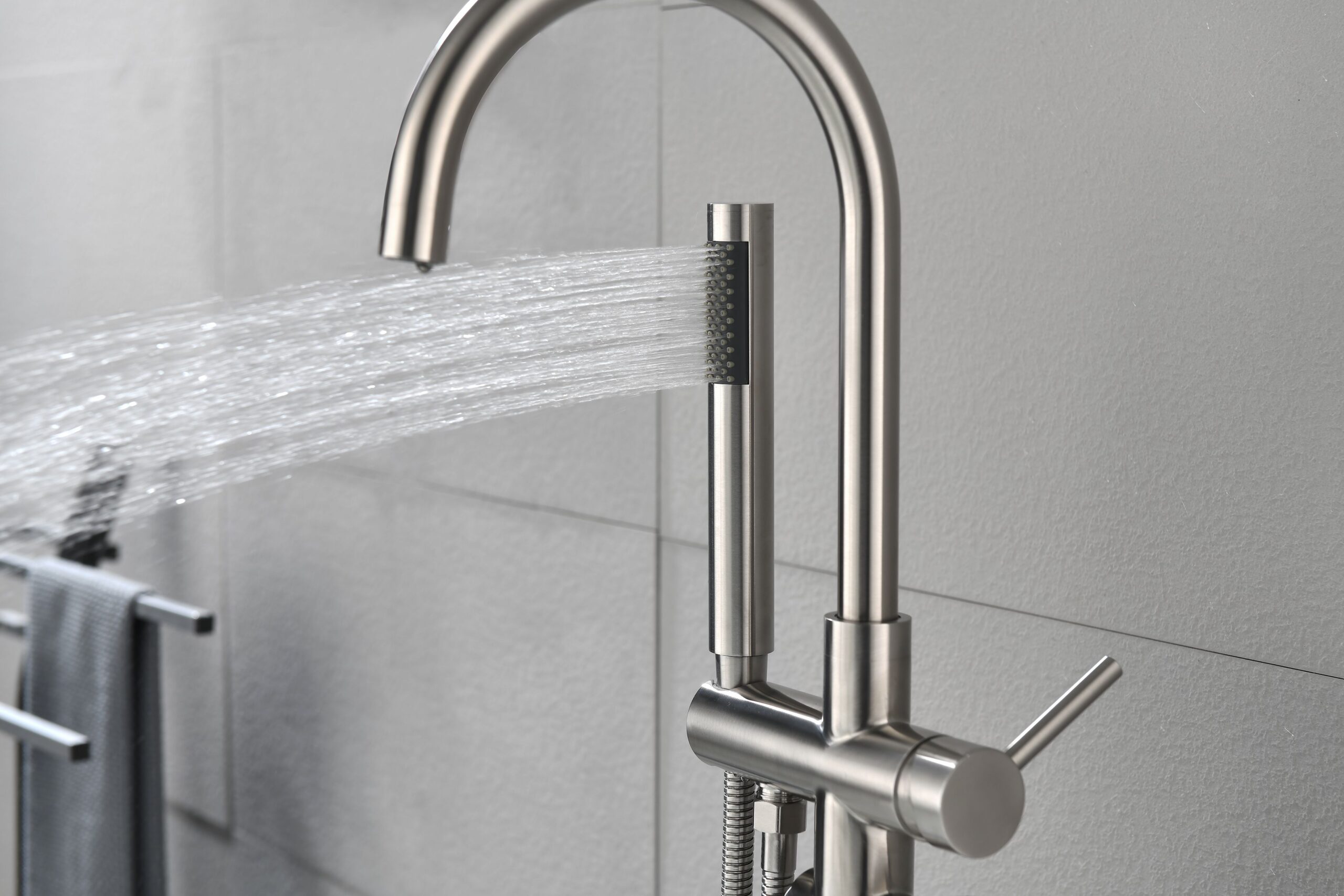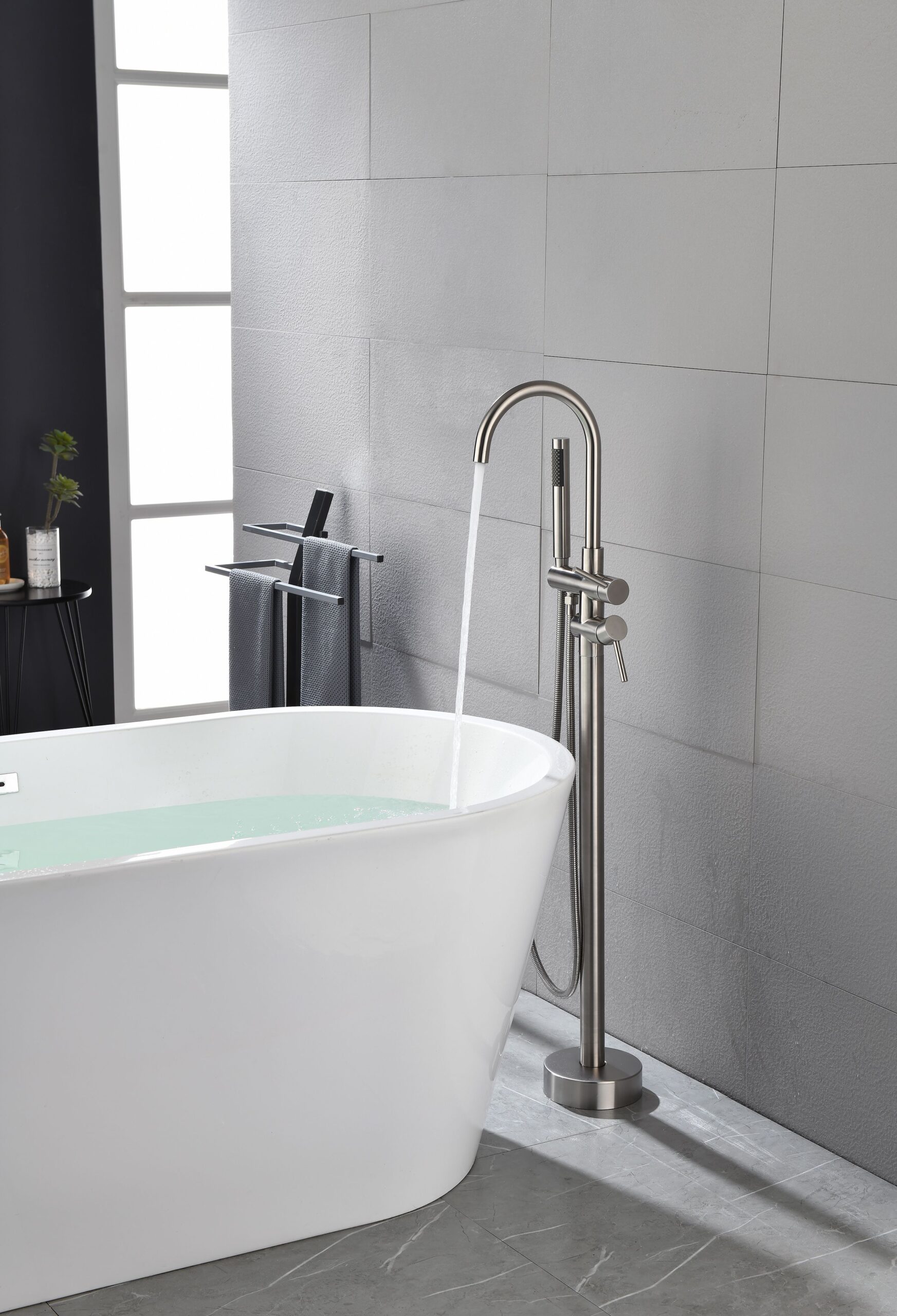 Mount Bathtub Faucet Freestanding Tub Filler Brushed Nickel Standing High Flow Shower Faucets with Handheld Shower Mixer Taps Swivel Spout