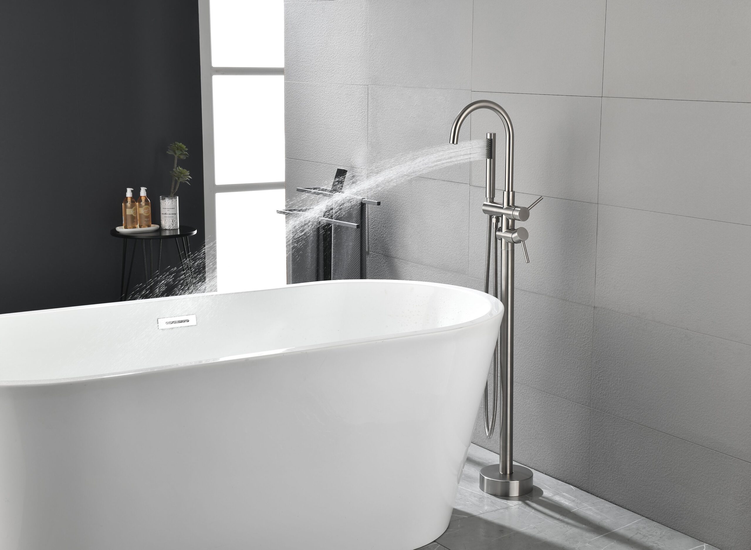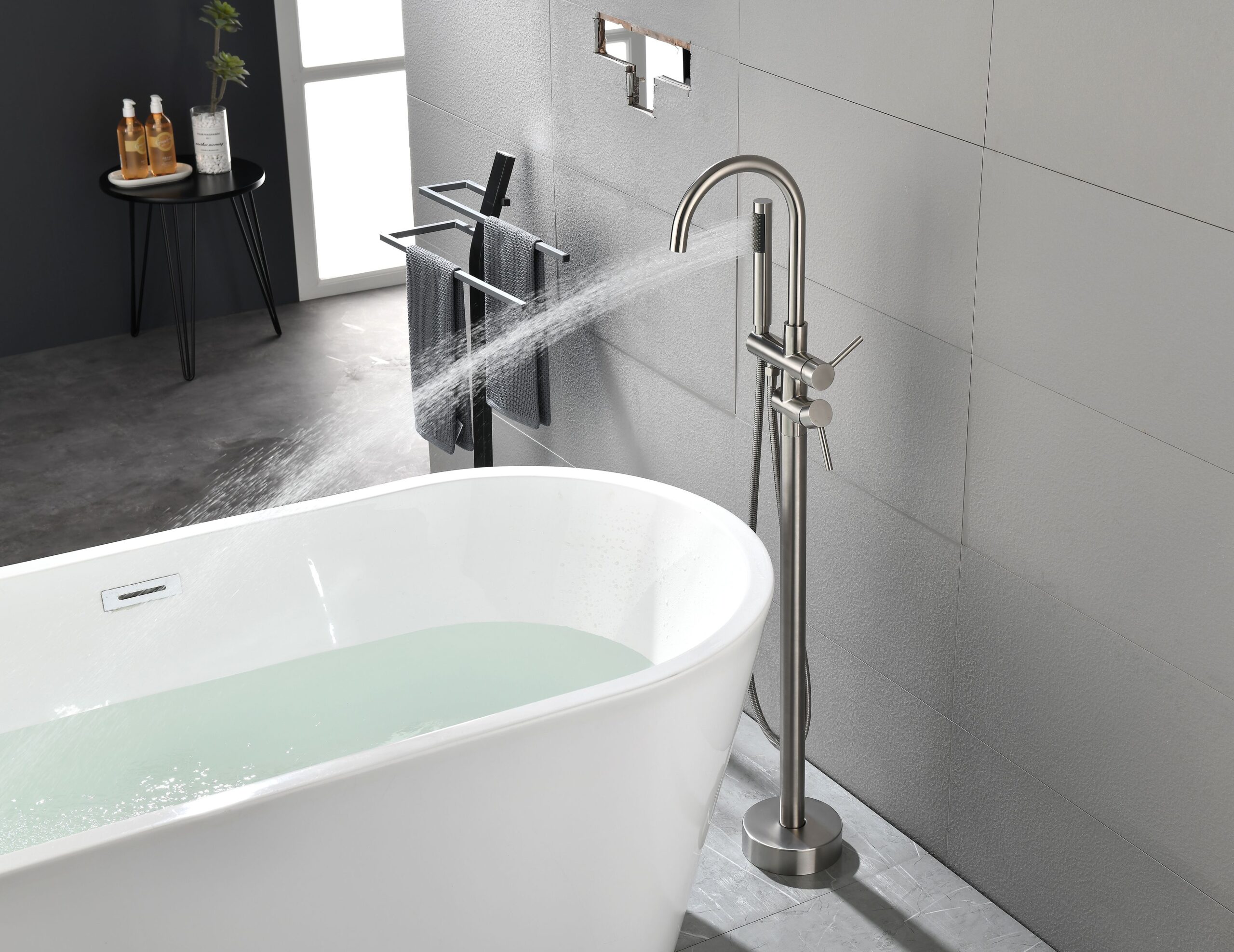 Be the first to review “Mount Bathtub Faucet Freestanding Tub Filler Brushed Nickel Standing High Flow Shower Faucets with Handheld Shower Mixer Taps Swivel Spout” Cancel reply