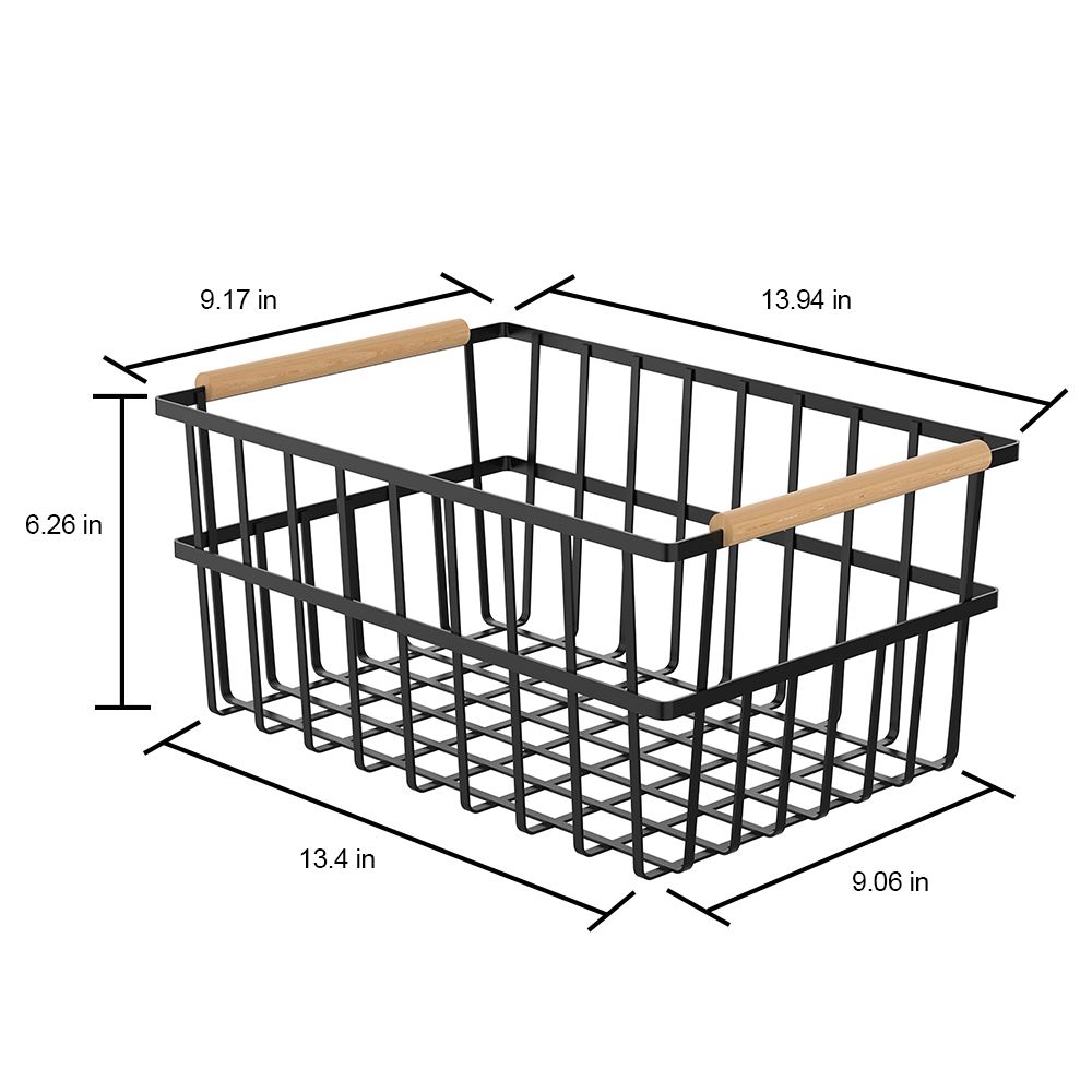 Need a simple solution to keeping your kitchen; office; or pantry organized? The Oceanstar Metal Wire Organizer Bin Basket with Handles is the perfect-sized; quick fix for every space. The Bamboo wood handles are smoothed down to perfection and are comfortable to pick up and transport. Use these in the kitchen to store kitchen essentials such as canned foods and dressings or in cabinets to hold skincare and towels. These multi-purpose baskets keep your belongings easily organized and picture-perfect. These portable baskets are ready to be used out of the box and do not require assembly; making the start to your organization ventures quick and painless. Begin creating your very own customized organization system today using this set of baskets!