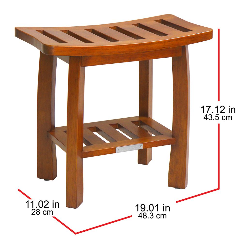 Oceanstar Solid Wood Spa Shower Bench with Storage Shelf, Teak Color Finish