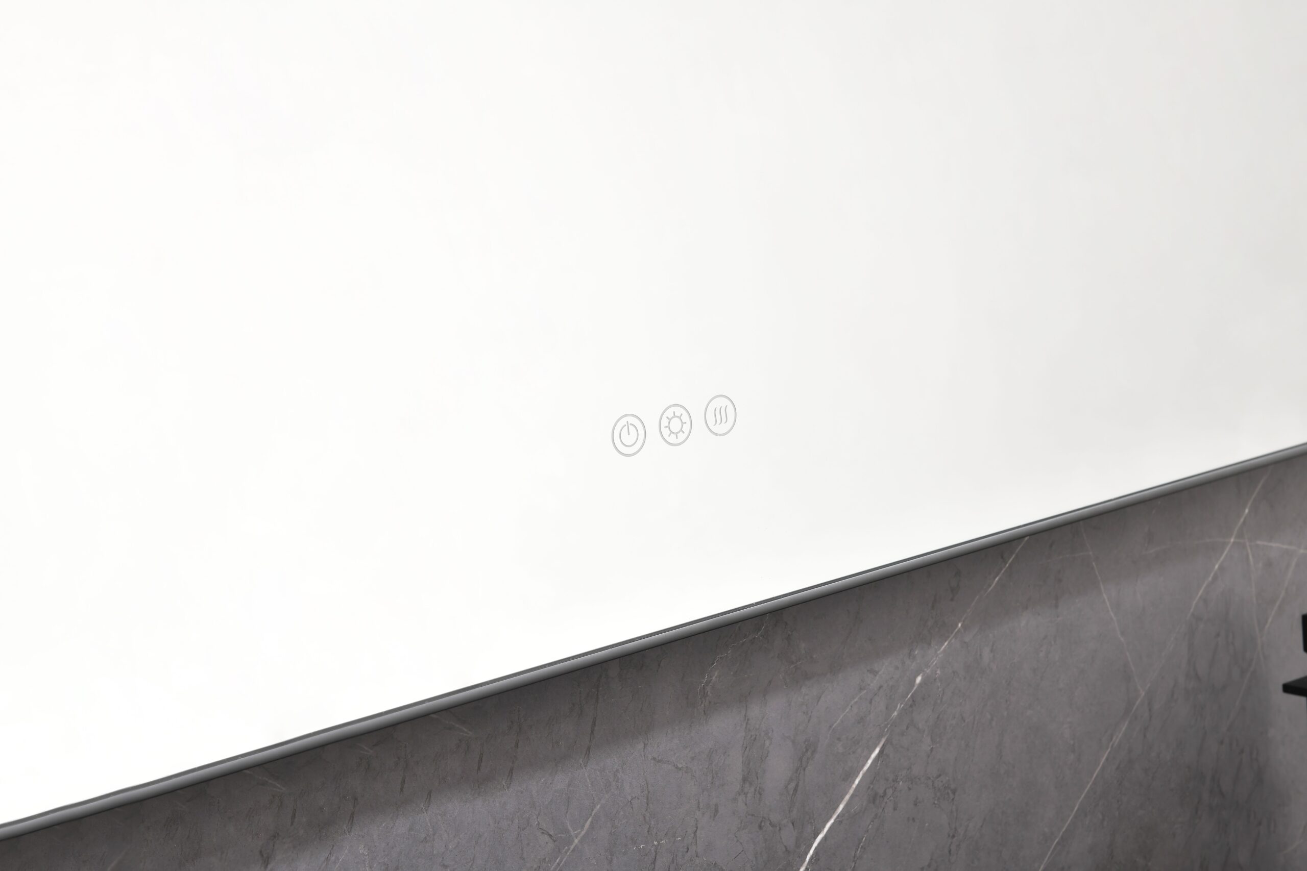 1.This brightness of the mirror is dimmable, controlled with a round touch button