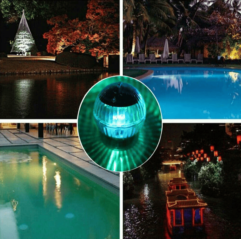 - Amazing Floatable Pool Lights The Unique floating pool lights float on the water during the day, the pool lights creates you a floating light show in your pool when the night comes, Also this floating pool lights with RGB color Changing automatically, The color is intense and mesmerizing! Adds a nice touch of color at night to the pool and create a perfect atmosphere for parties and gatherings! These floating Pool Lights add brilliant color, energy, and excitement to Pool, Spa, Hot tub, Garden.