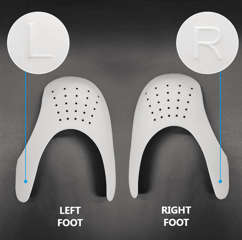 With auxiliary cutting lines, the anti-wrinkle shoes creases protector can be trimmed. Put the shoes creases protector on the front of the sports shoes, which can hold up the wrinkles left before and can make a good anti-wrinkle effect when walking. Even not worn for a long time, it is recommended that you place the anti-wrinkle shoes creases protector inside the shoes for support protection.