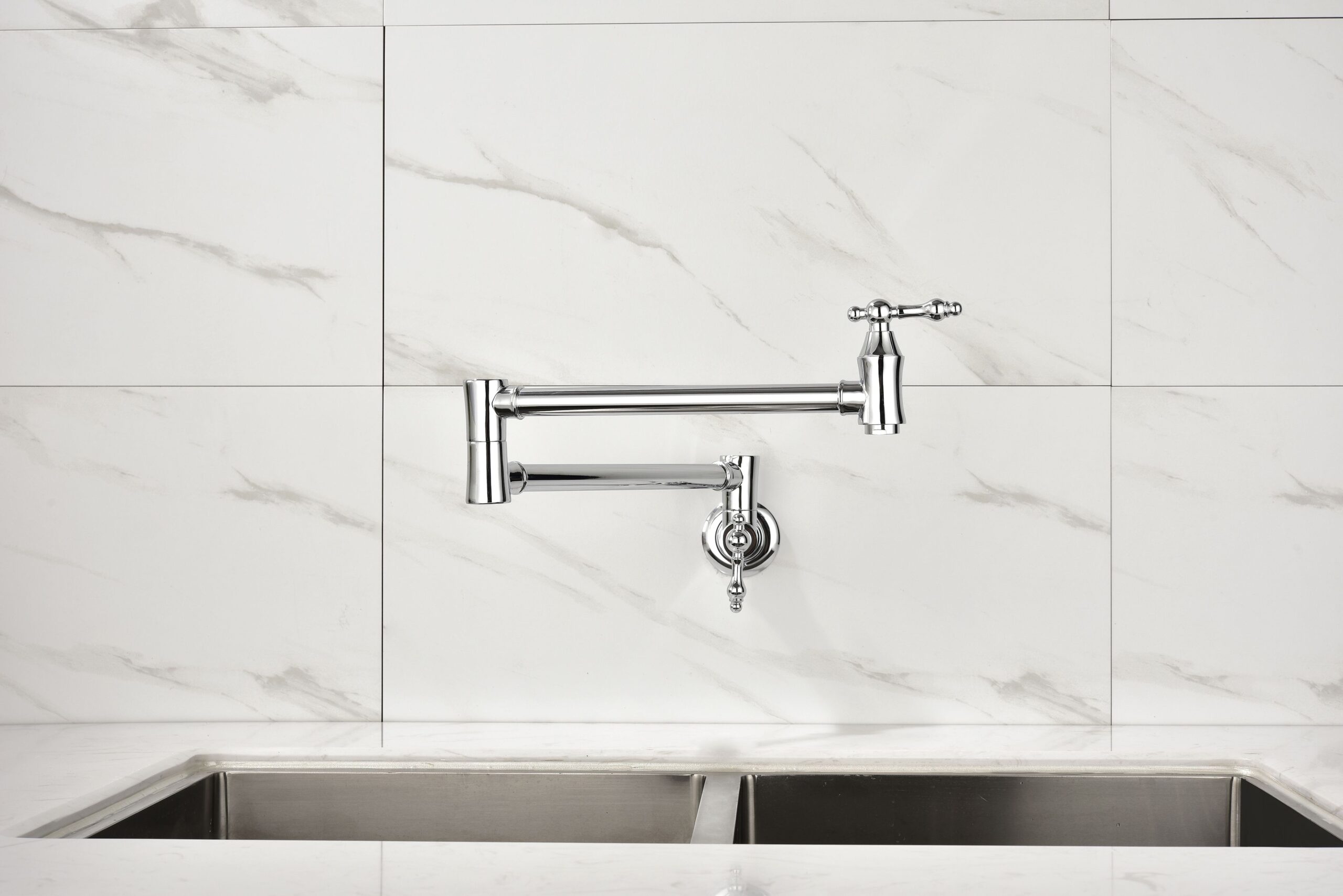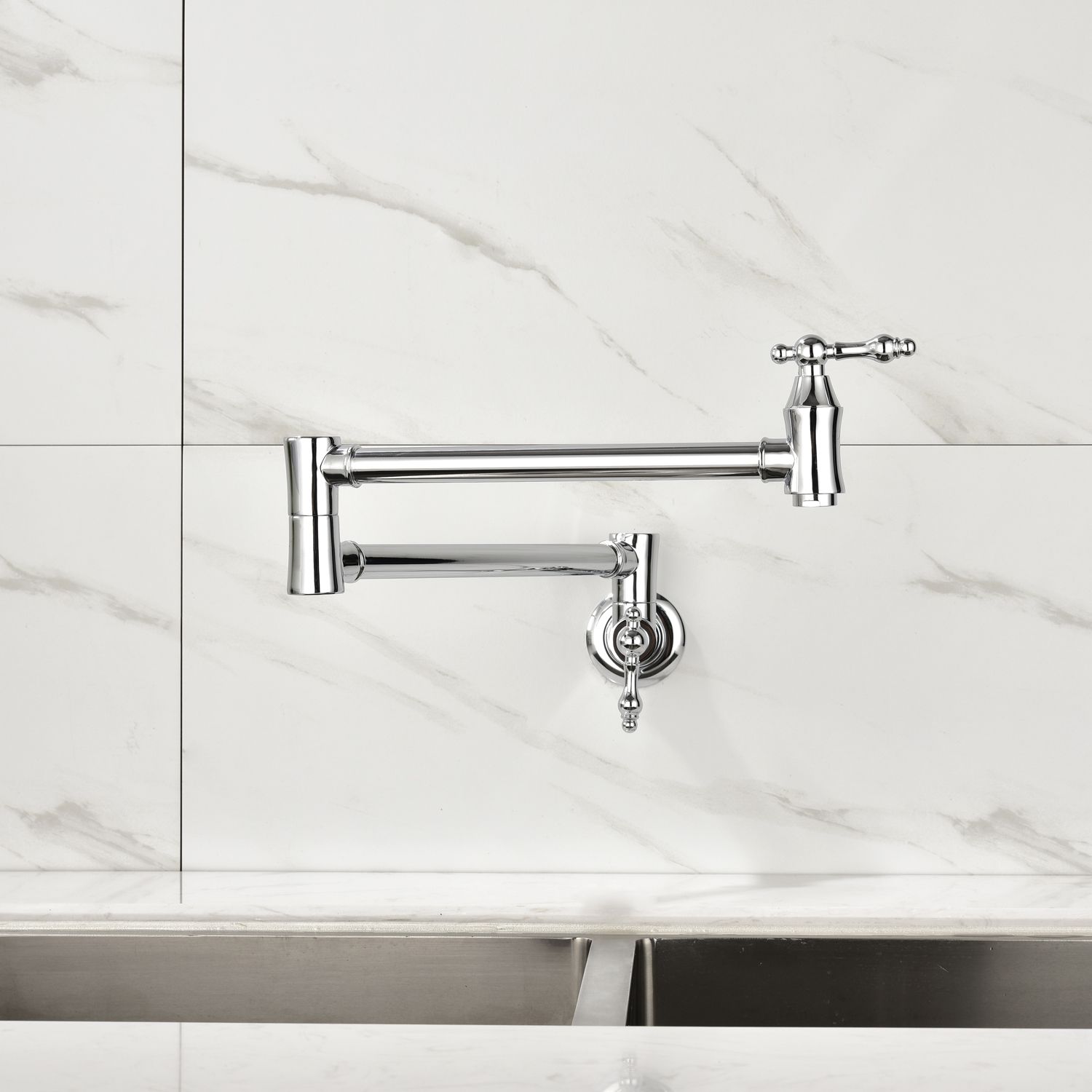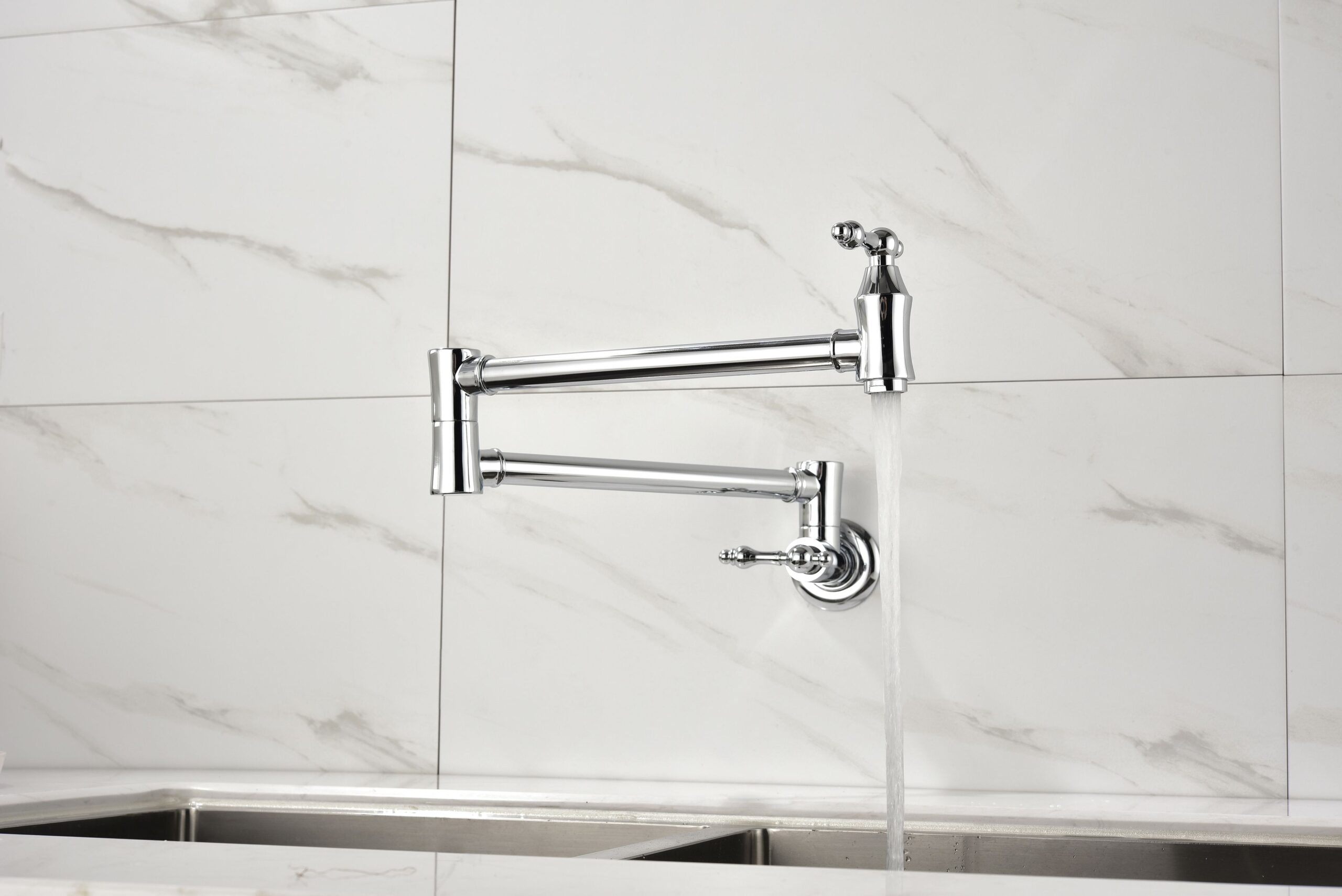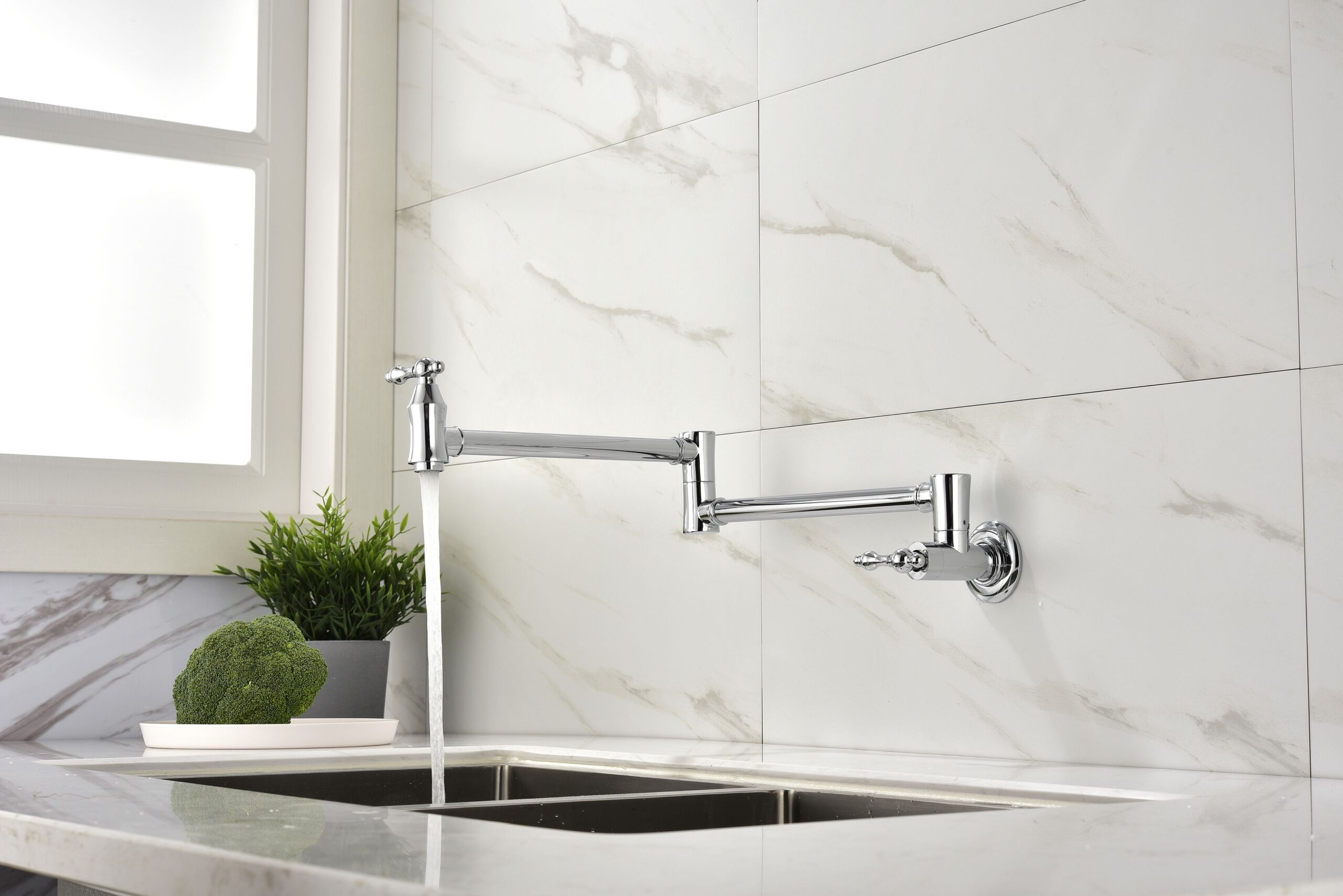 Complete your gourmet kitchen update with the Wall-Mount Pot Filler. Designed to retract and swivel above your stove; this product keeps cooking tasks efficient. Brass construction gives the faucet a high-end quality that feels durable to the touch. To coordinate with your kitchen decor; this pot filler is covered in a finish that is resistant to corrosion or fading.