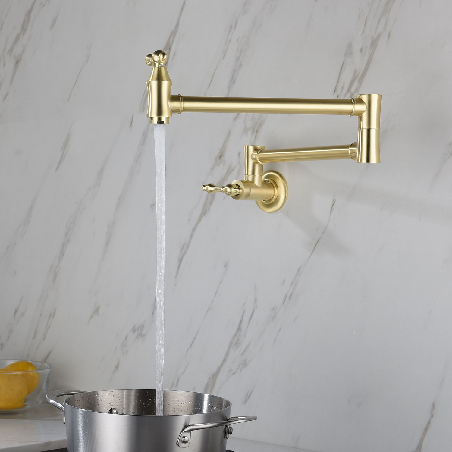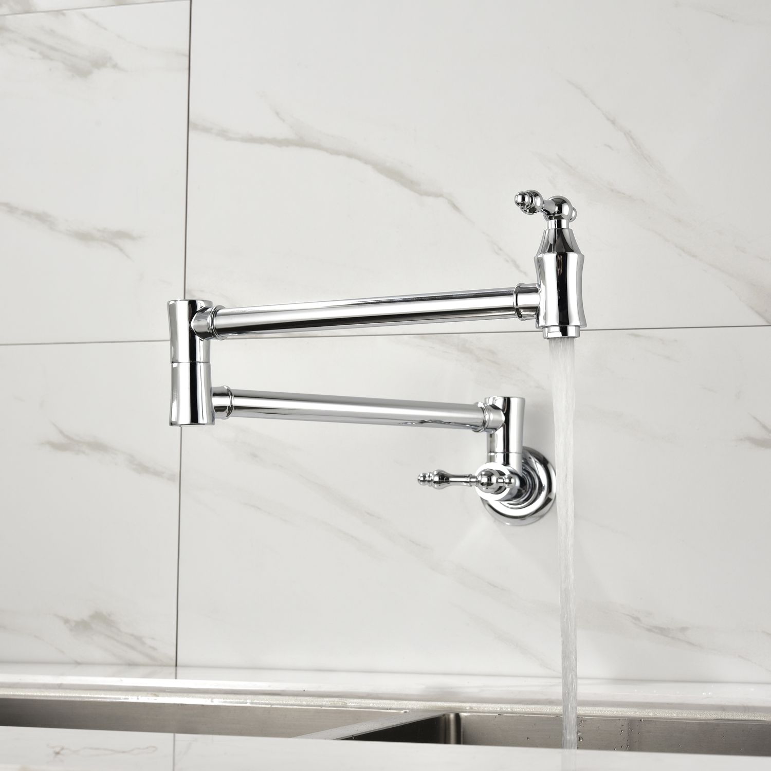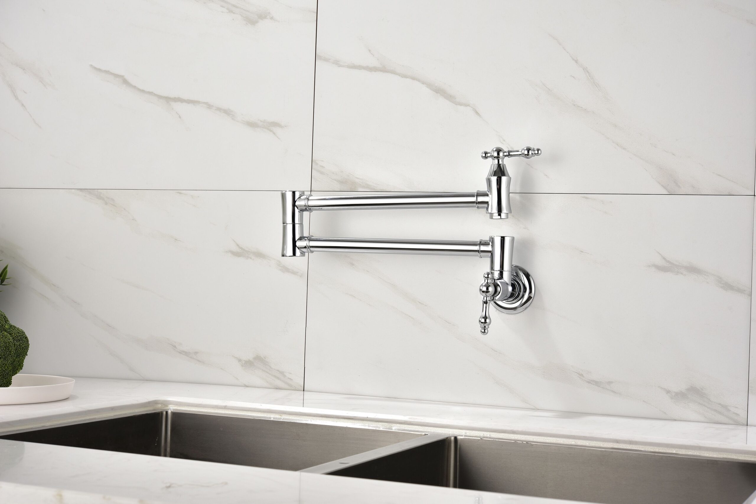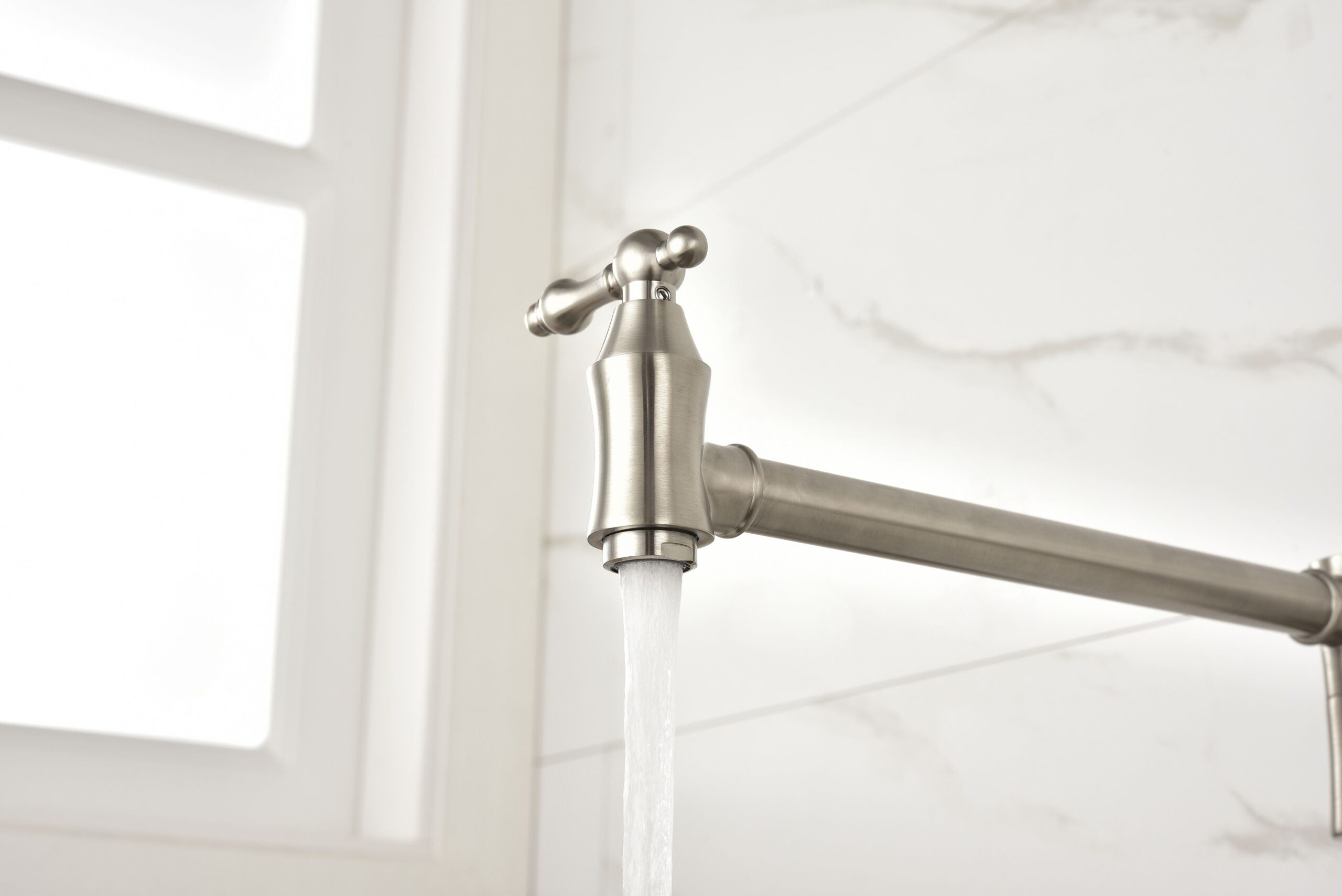Complete your gourmet kitchen update with the Wall-Mount Pot Filler. Designed to retract and swivel above your stove; this product keeps cooking tasks efficient. Brass construction gives the faucet a high-end quality that feels durable to the touch. To coordinate with your kitchen decor; this pot filler is covered in a finish that is resistant to corrosion or fading.