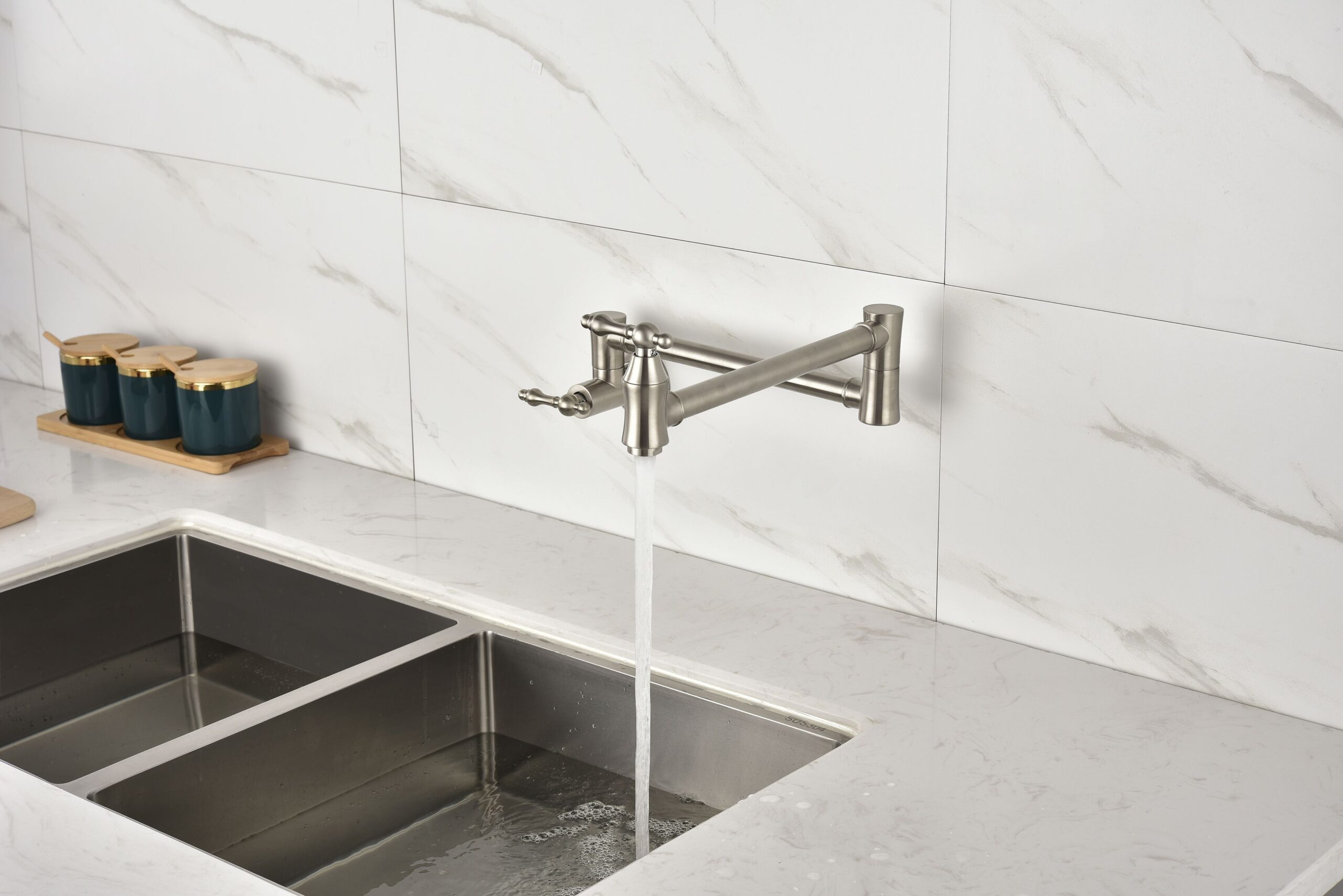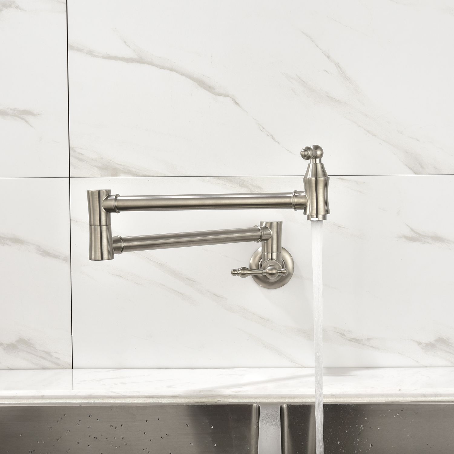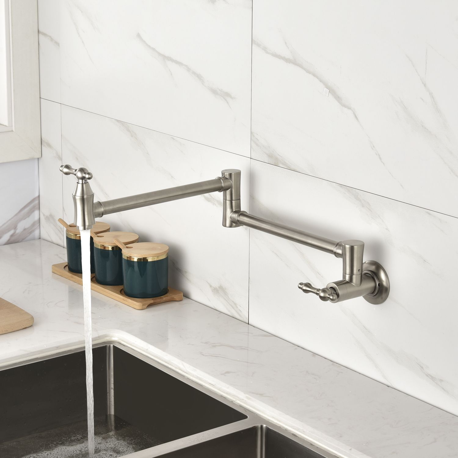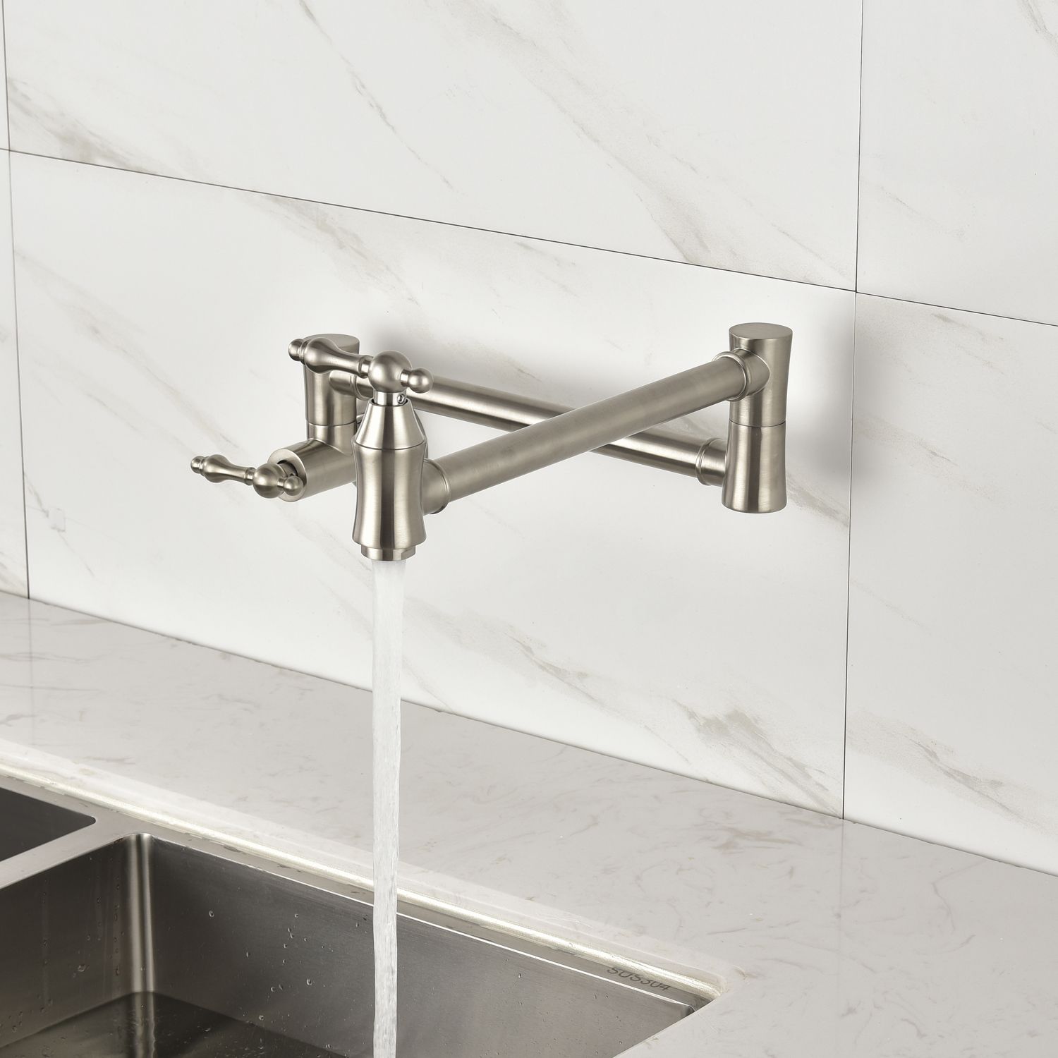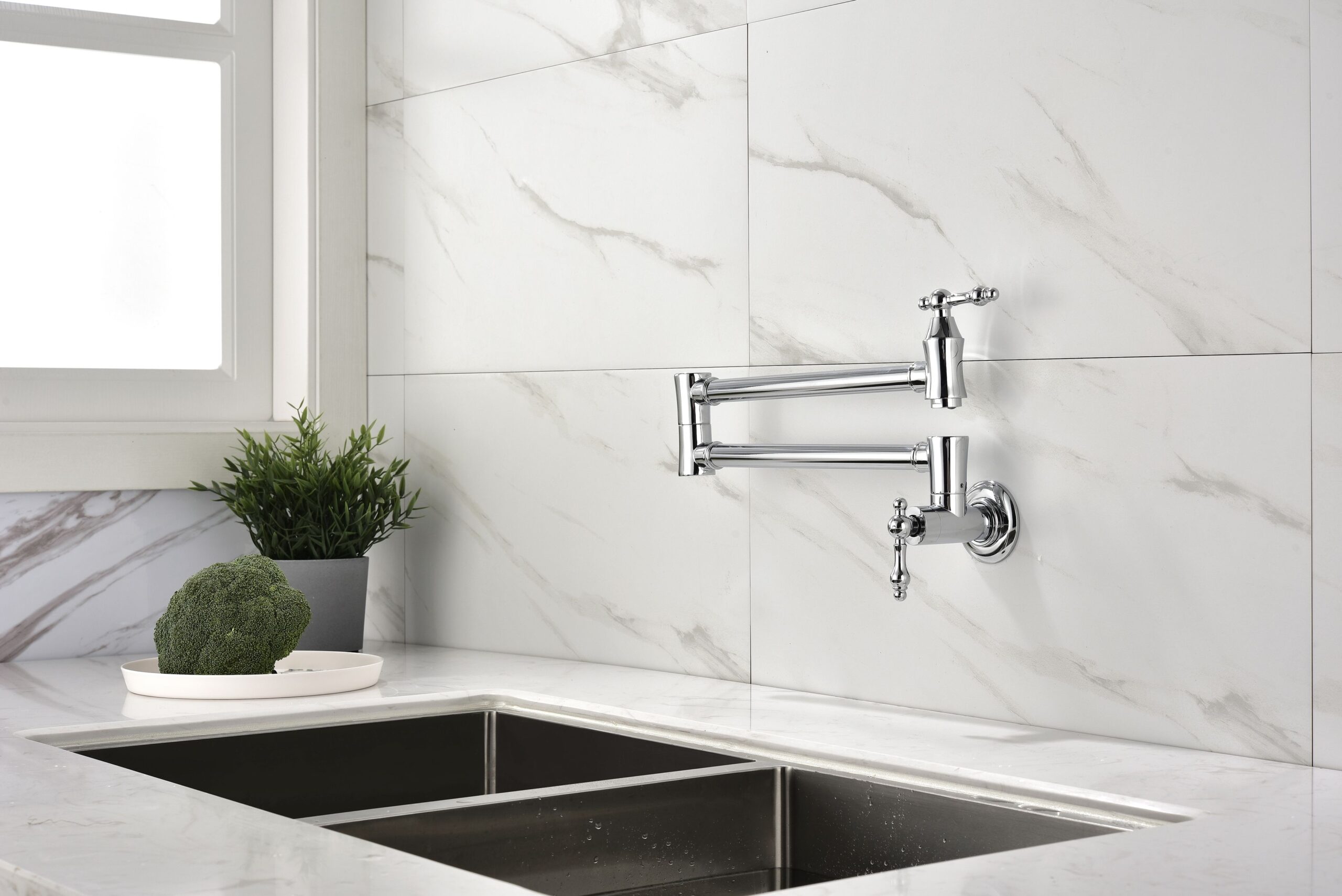 Complete your gourmet kitchen update with the Wall-Mount Pot Filler. Designed to retract and swivel above your stove; this product keeps cooking tasks efficient. Brass construction gives the faucet a high-end quality that feels durable to the touch. To coordinate with your kitchen decor; this pot filler is covered in a finish that is resistant to corrosion or fading.