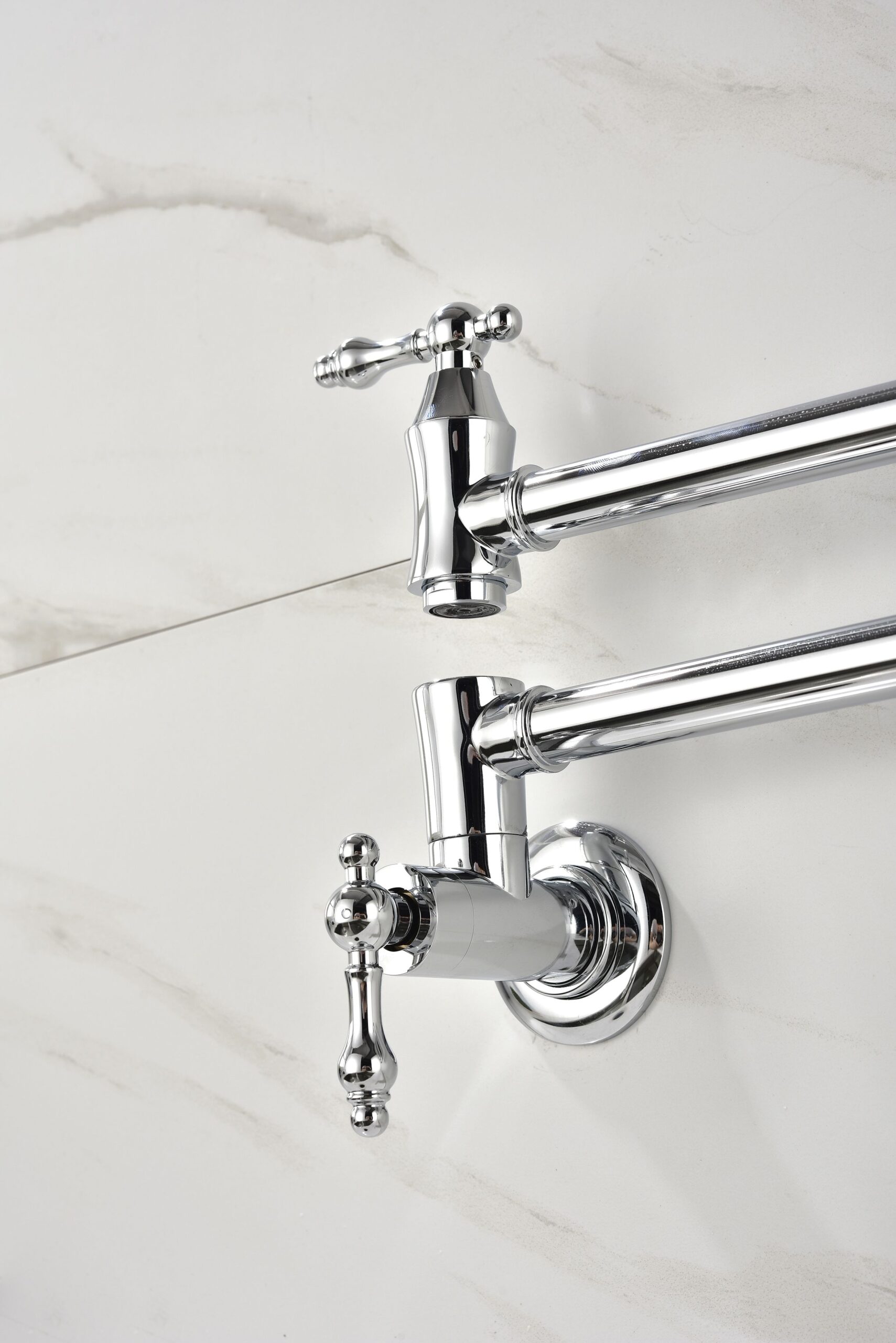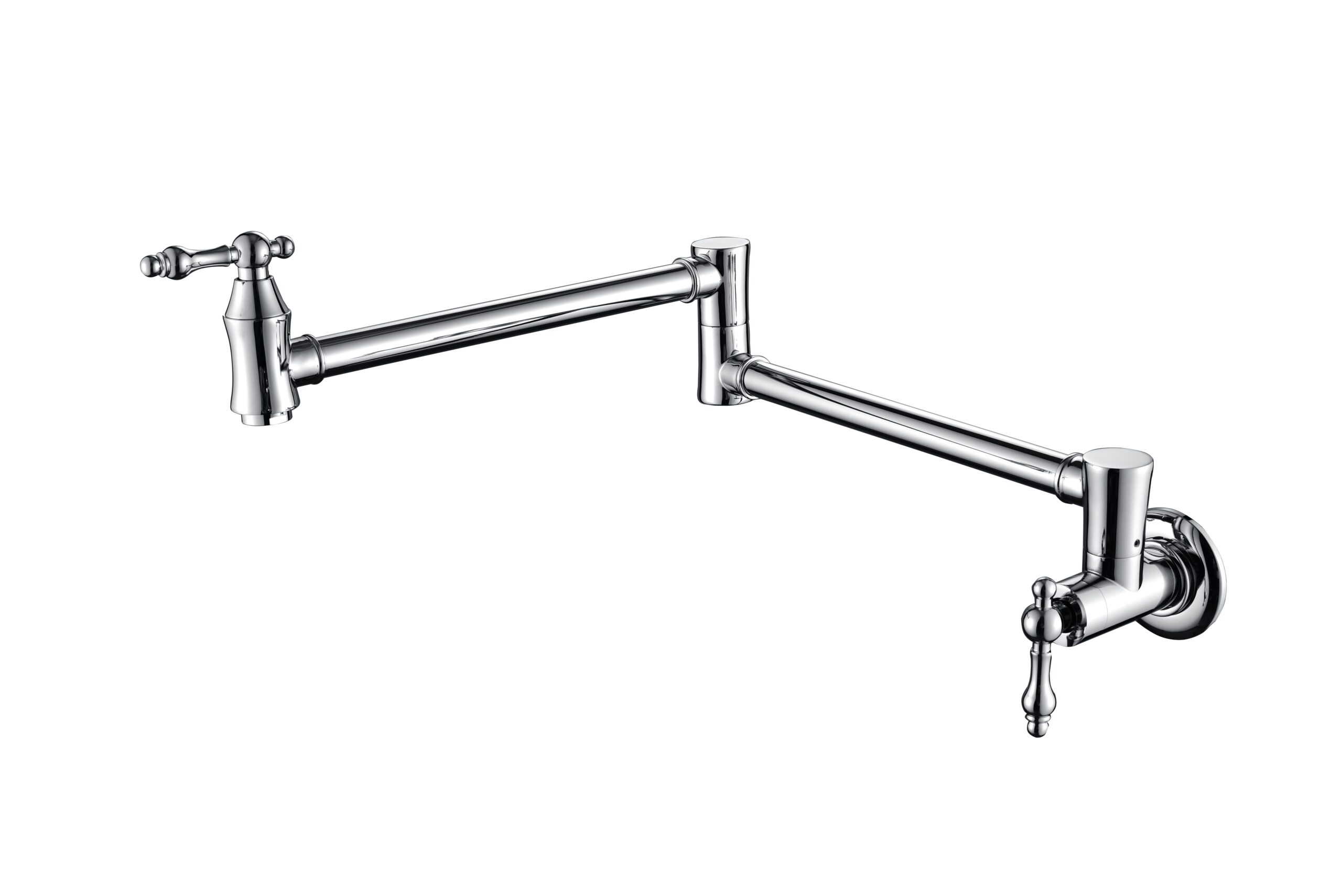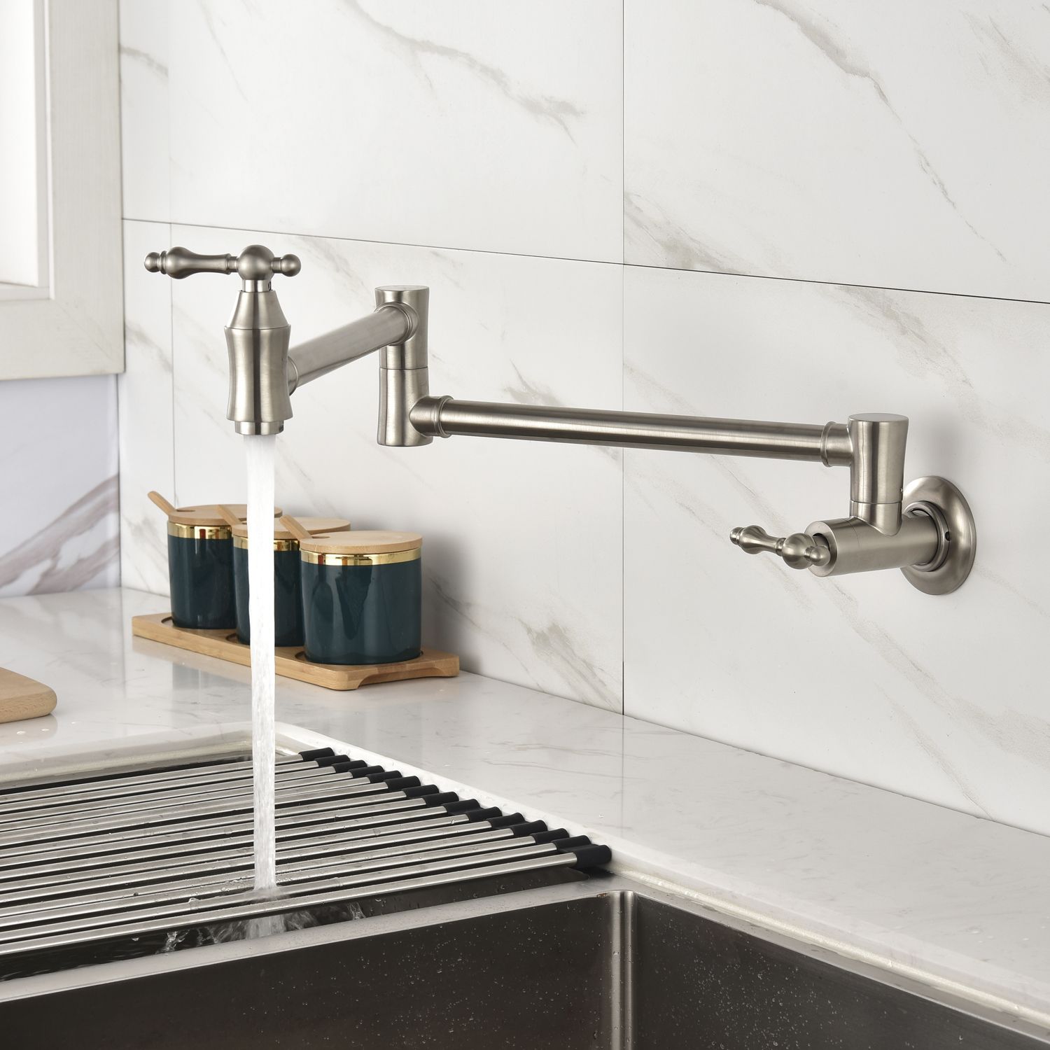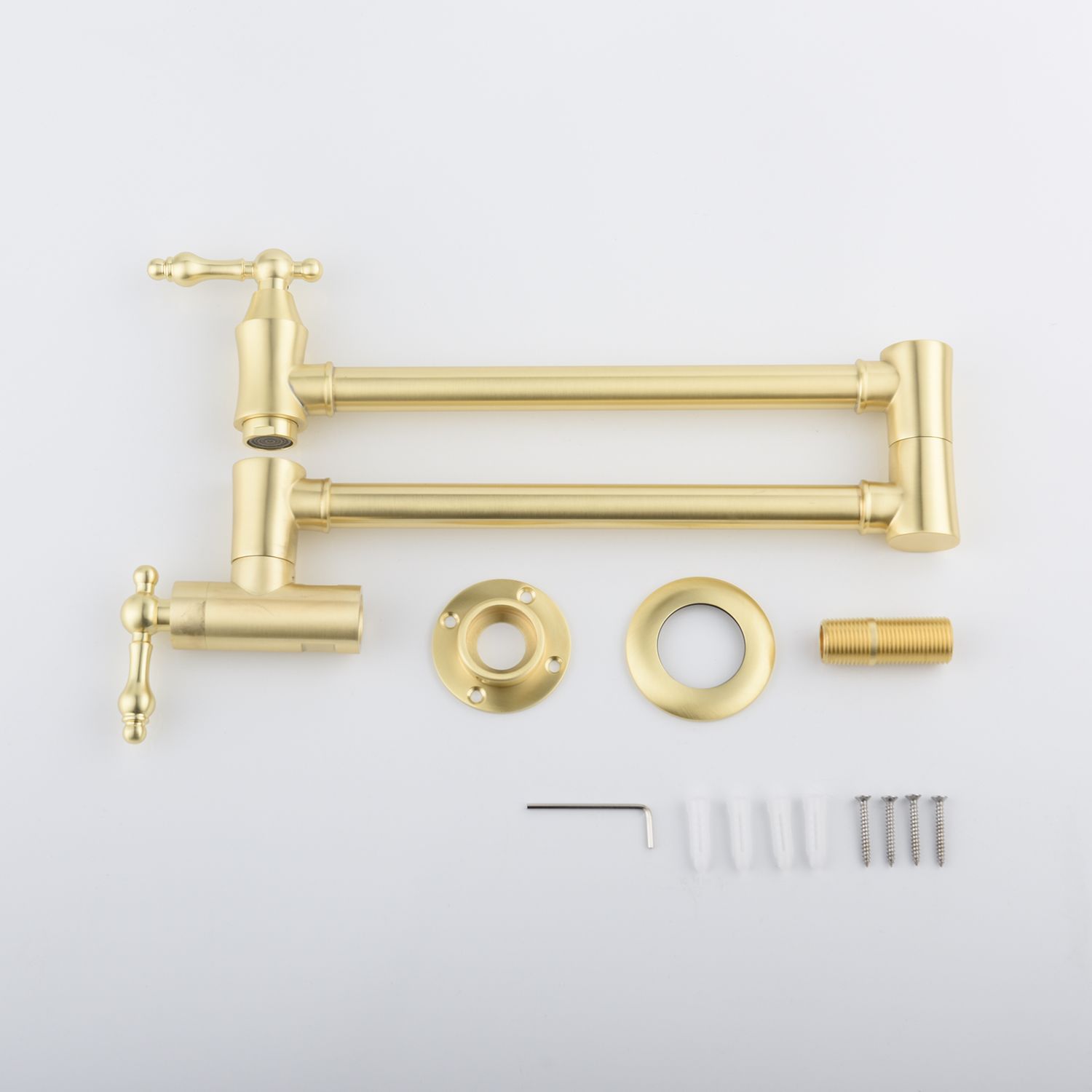 Complete your gourmet kitchen update with the Wall-Mount Pot Filler. Designed to retract and swivel above your stove; this product keeps cooking tasks efficient. Brass construction gives the faucet a high-end quality that feels durable to the touch. To coordinate with your kitchen decor; this pot filler is covered in a finish that is resistant to corrosion or fading.