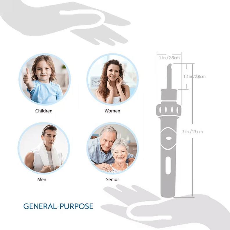 2.5 cm allows the earplugs for different ear hole sizes. This ear wax removal head is made of silicone and is soft enough to be safer and more reliable with the experience. Pain-free from annoying wax, eardrum not damaged, safe and reliable.