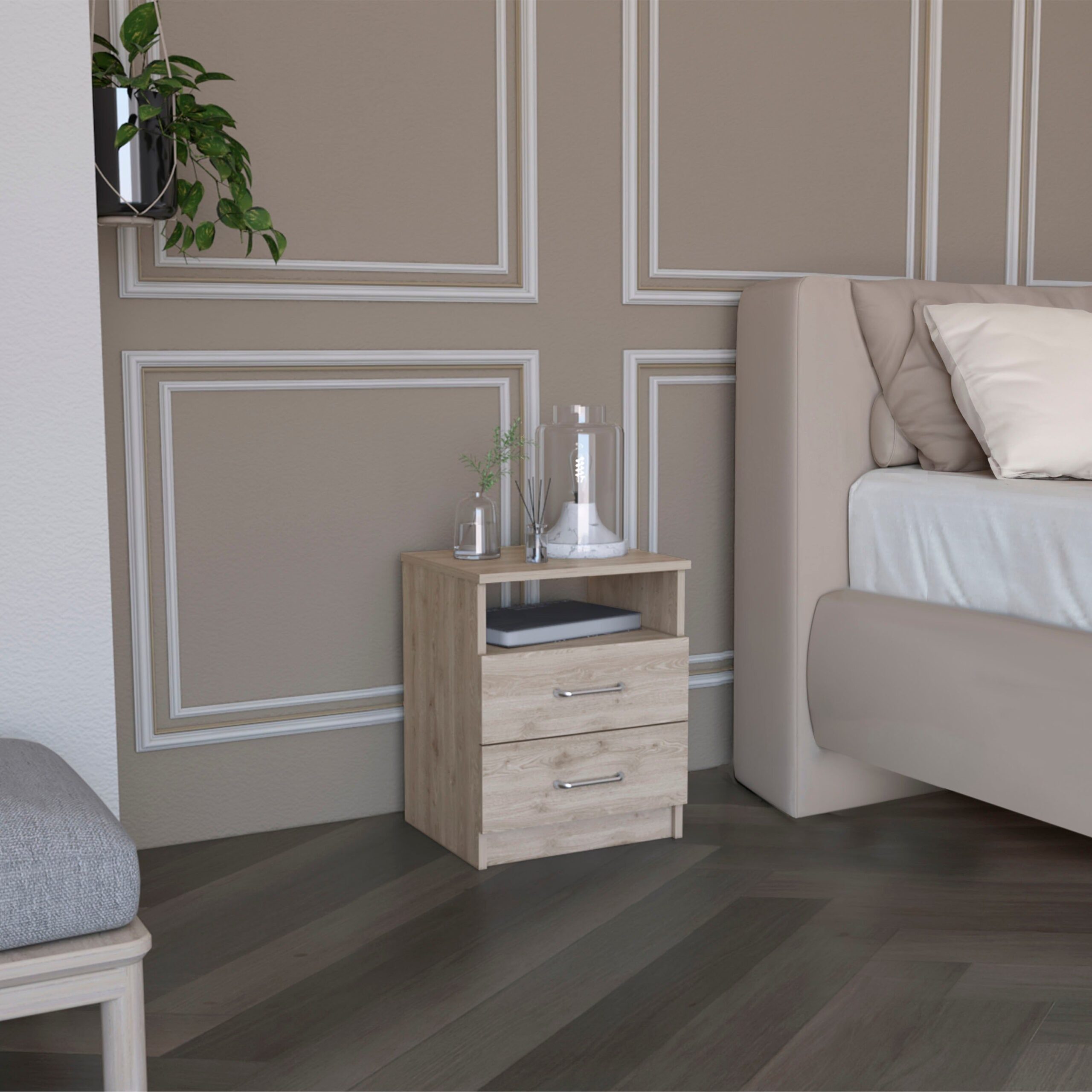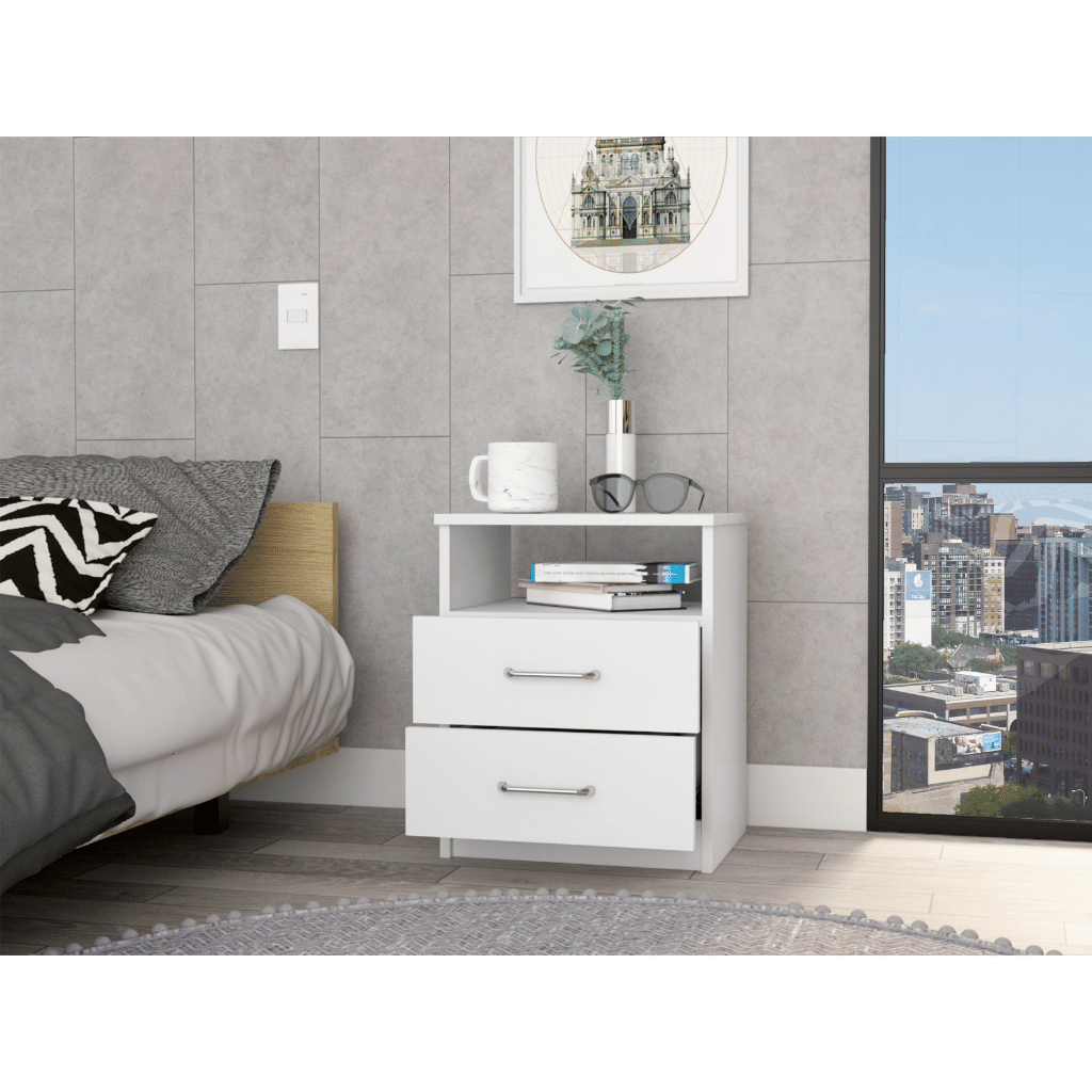 Salento Nightstand, Two Drawers, One Shelf, Superior Top