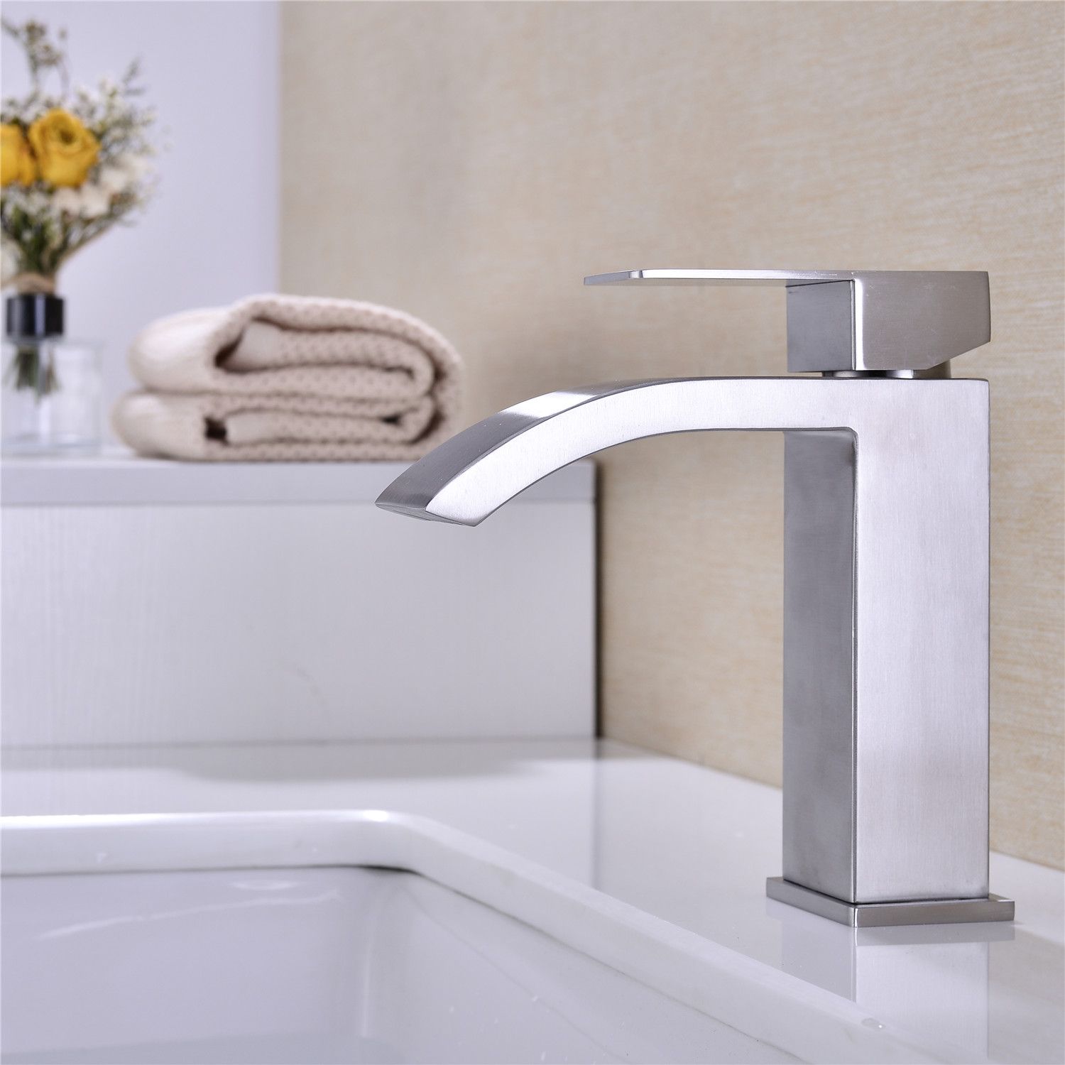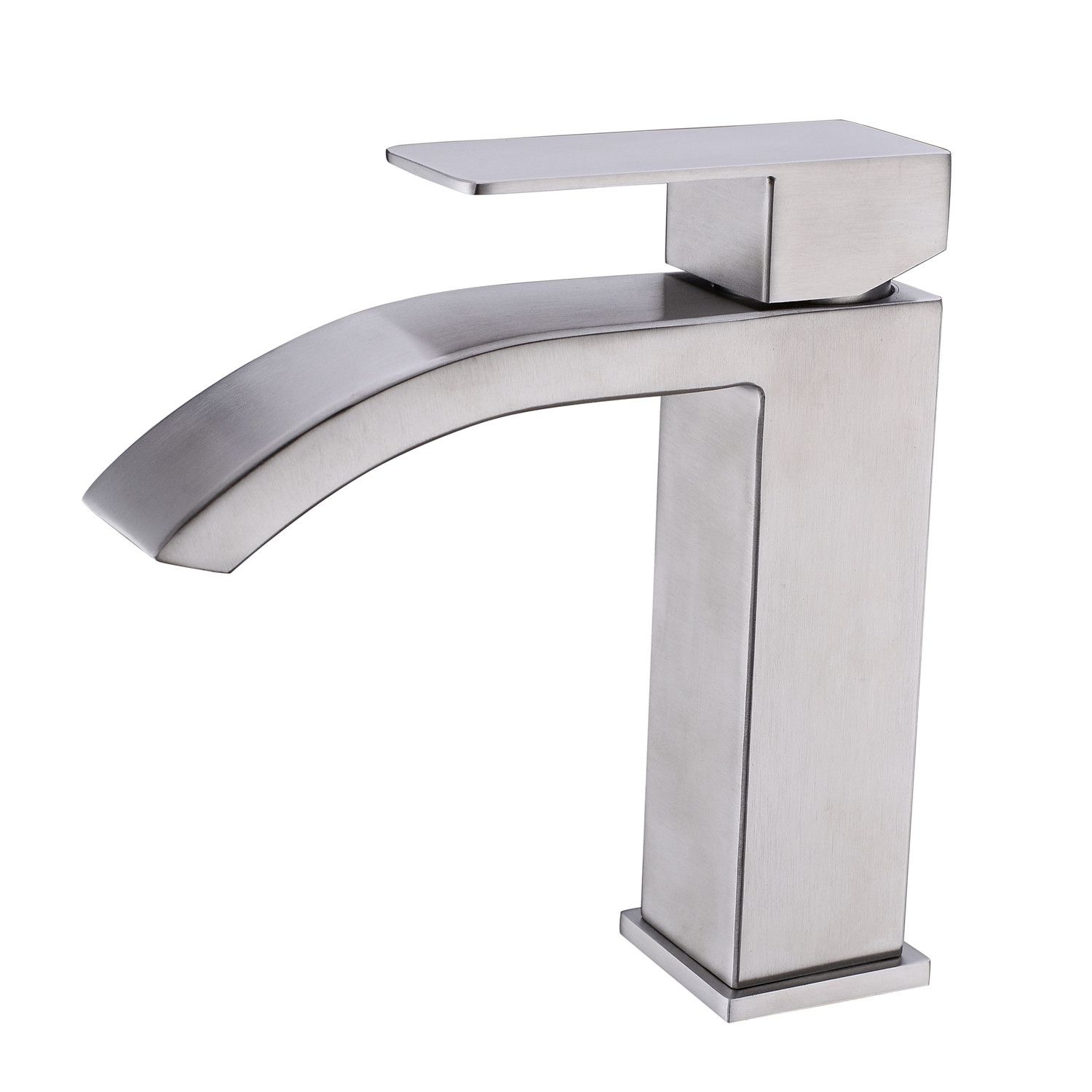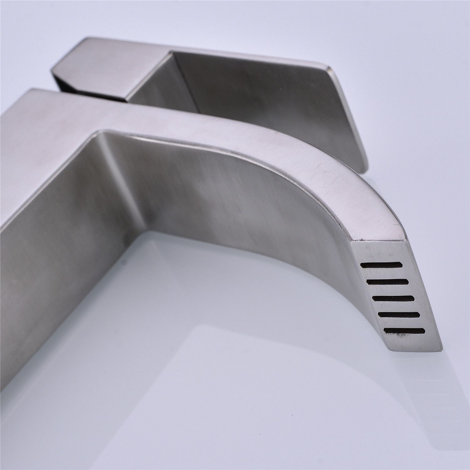 1.RELIABLE QUALITY–Ceramic disc cartridge can survive 500,000 times open & close test. Brushed Nickel resist corrosion and tarnishing through everyday use. What’s more, each faucet is tested at high water pressure to ensure high quality and long durability. POPULAR DESIGN–Extra large rectangular spo
