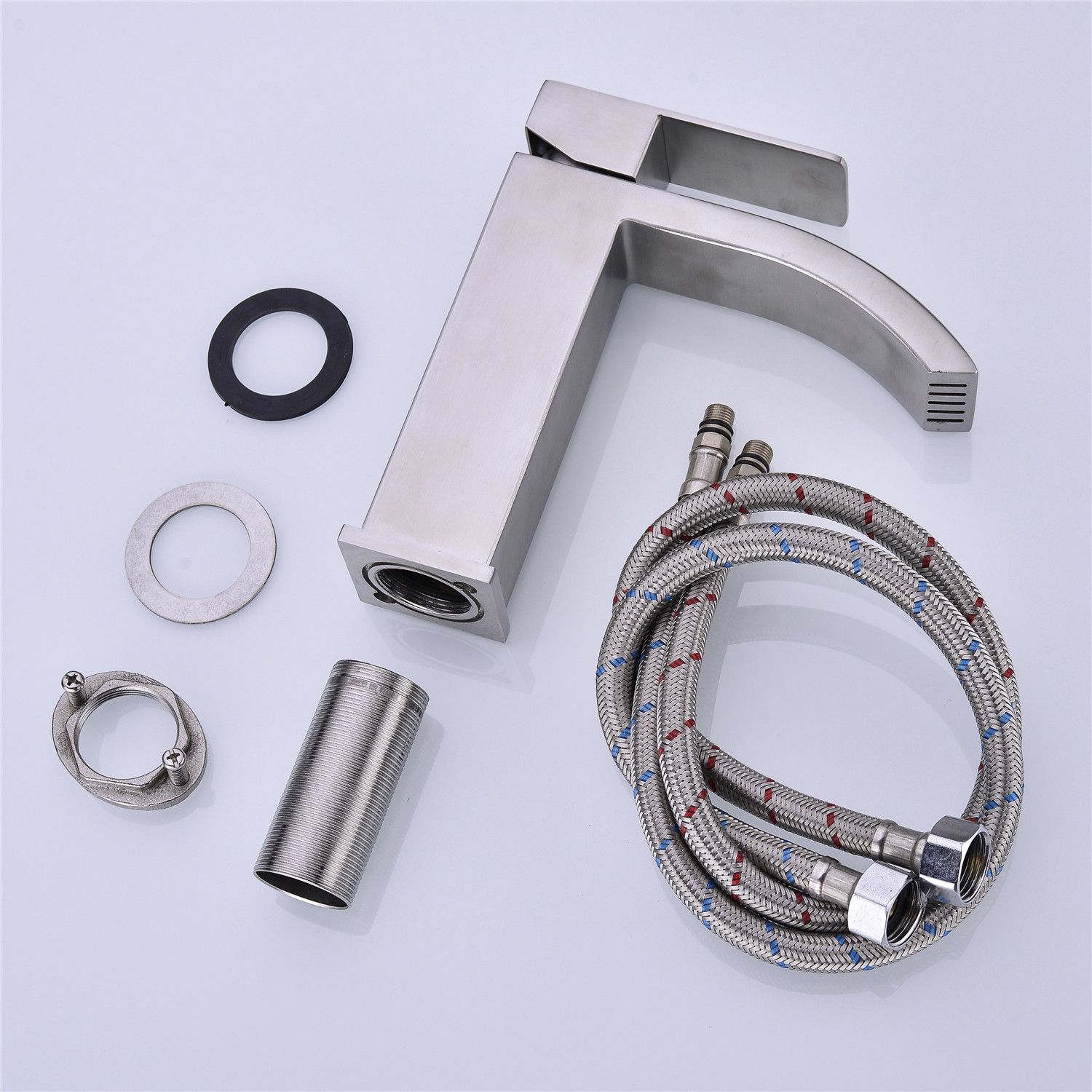 Be the first to review “Single Handle Waterfall Bathroom Vanity Sink Faucet with Extra Large Rectangular Spout, Brushed Nickel” Cancel reply