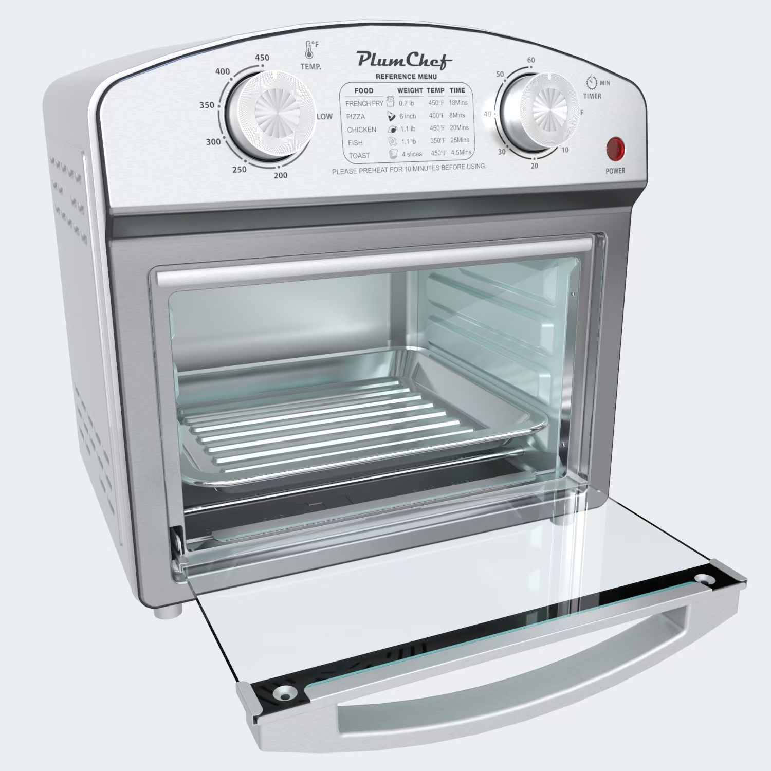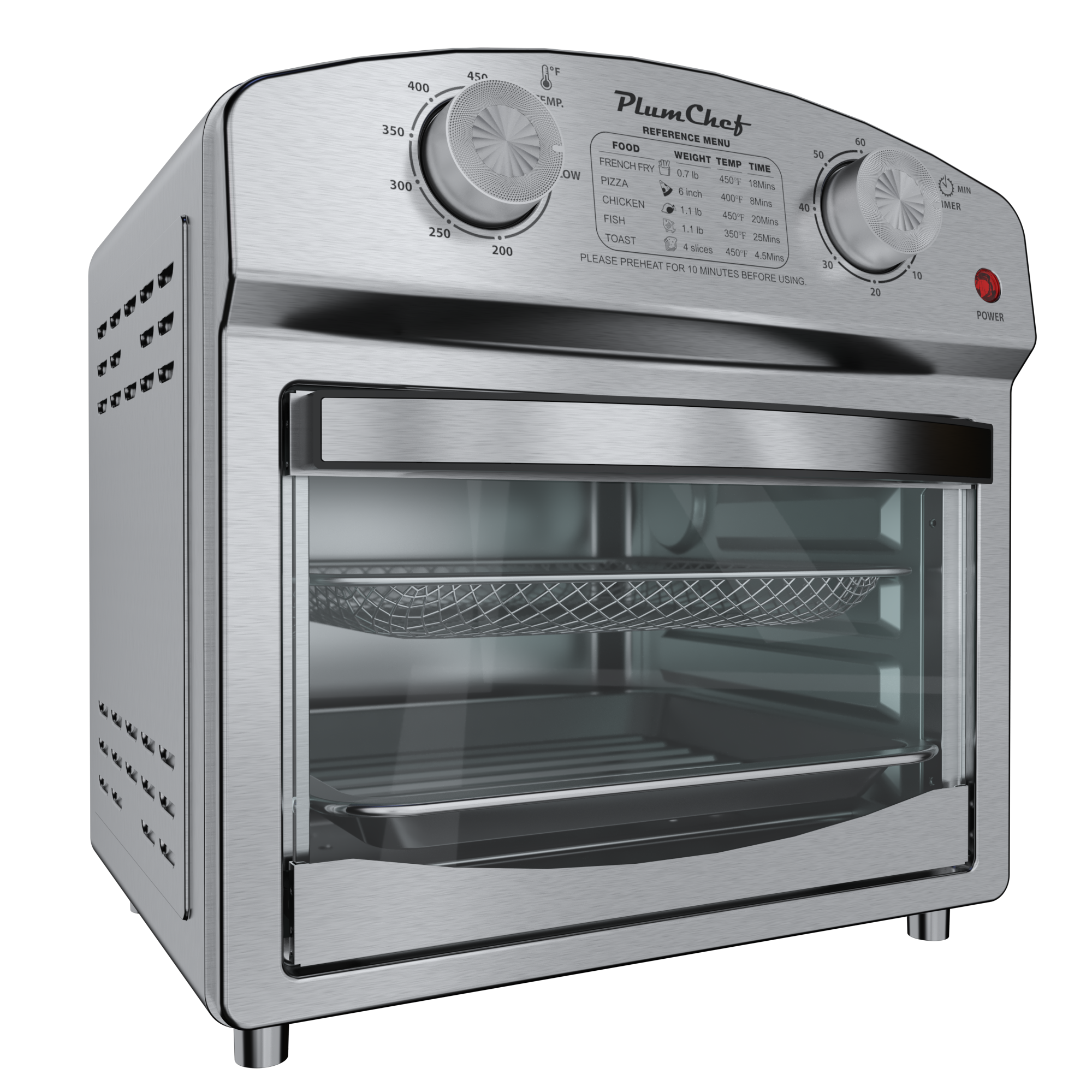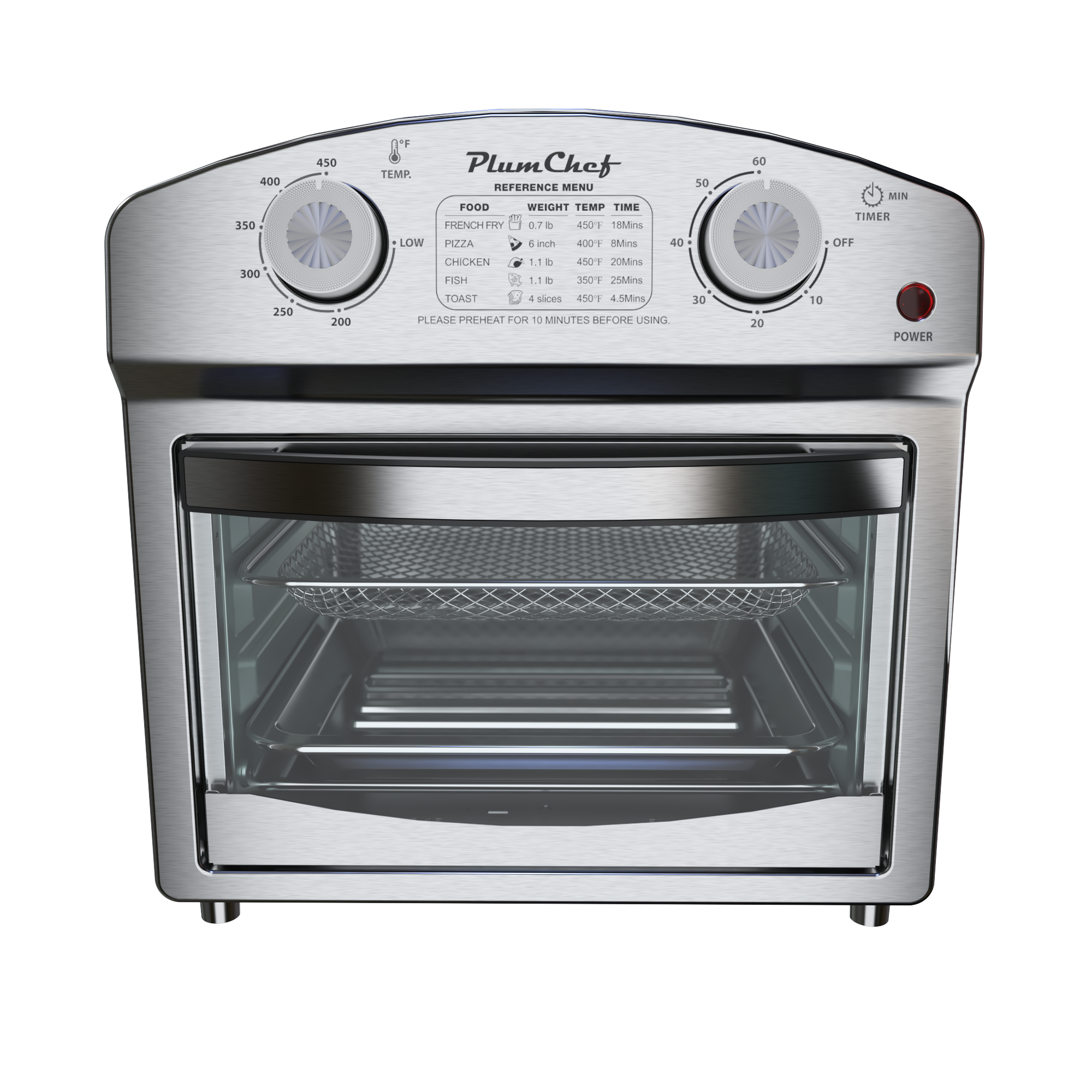 Stainless Steel 12-Liter Air Fryer, Dual Knob Control, 450°F Temperature Range, 60-Min Timer, Presets for French Fries, Pizza, Chicken, Fish, and Toast, Family-Sized Capacity Oven