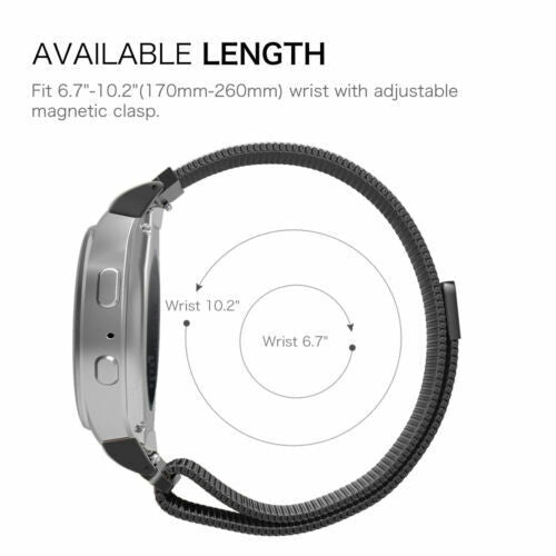 - Fits 5.9"-9.8" (150mm-250mm) wrist with adjustable magnetic clasp.
