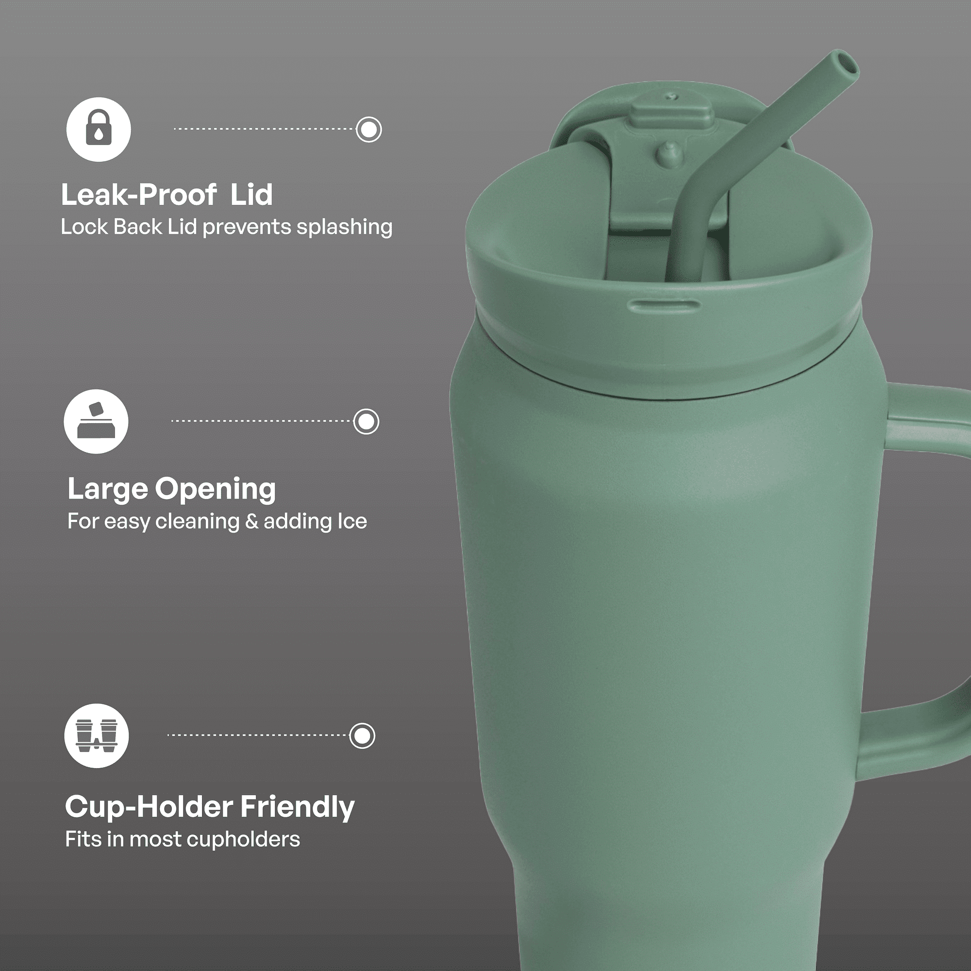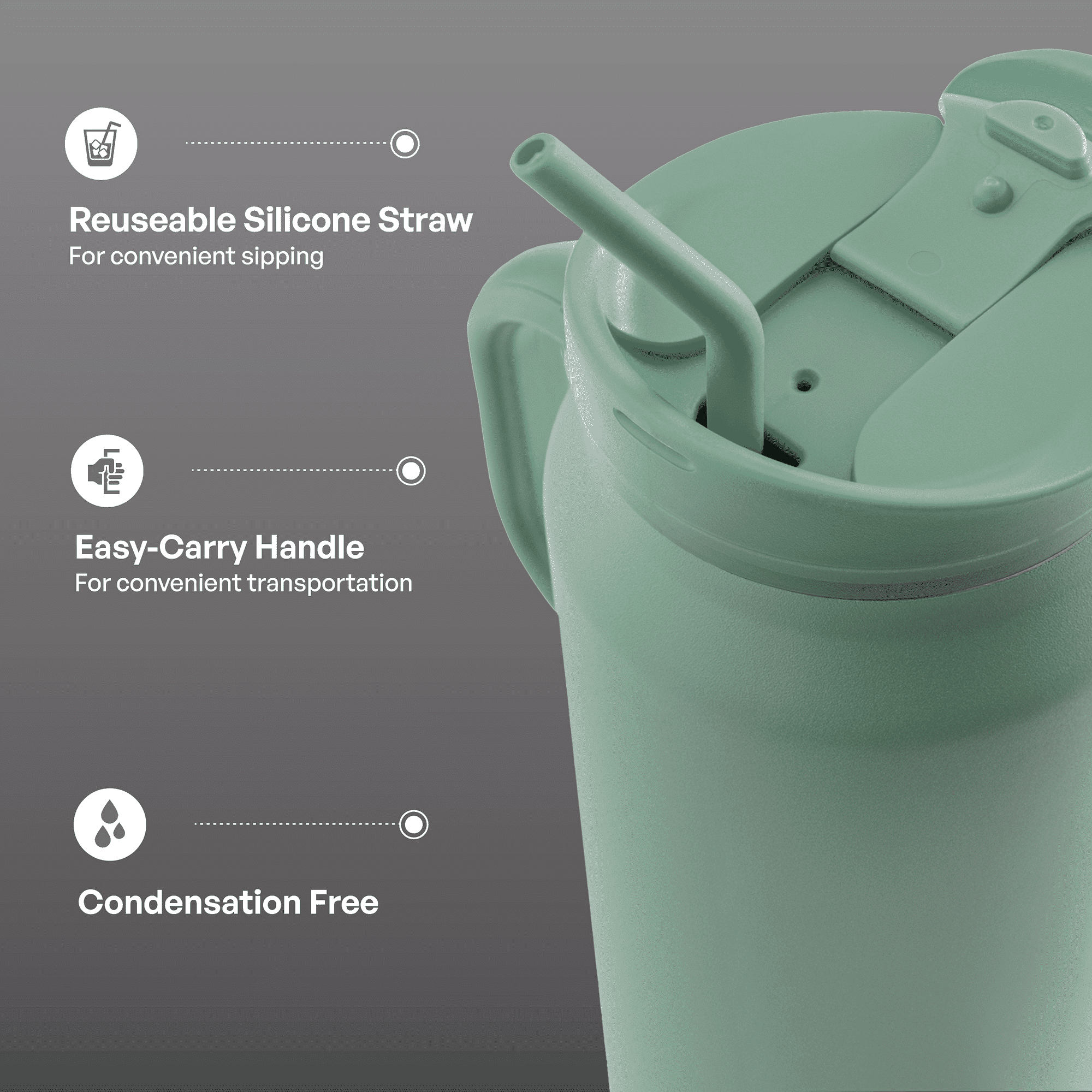 Stainless Steel Basin Travel Mug with Silicone Straw 30 oz, Sage