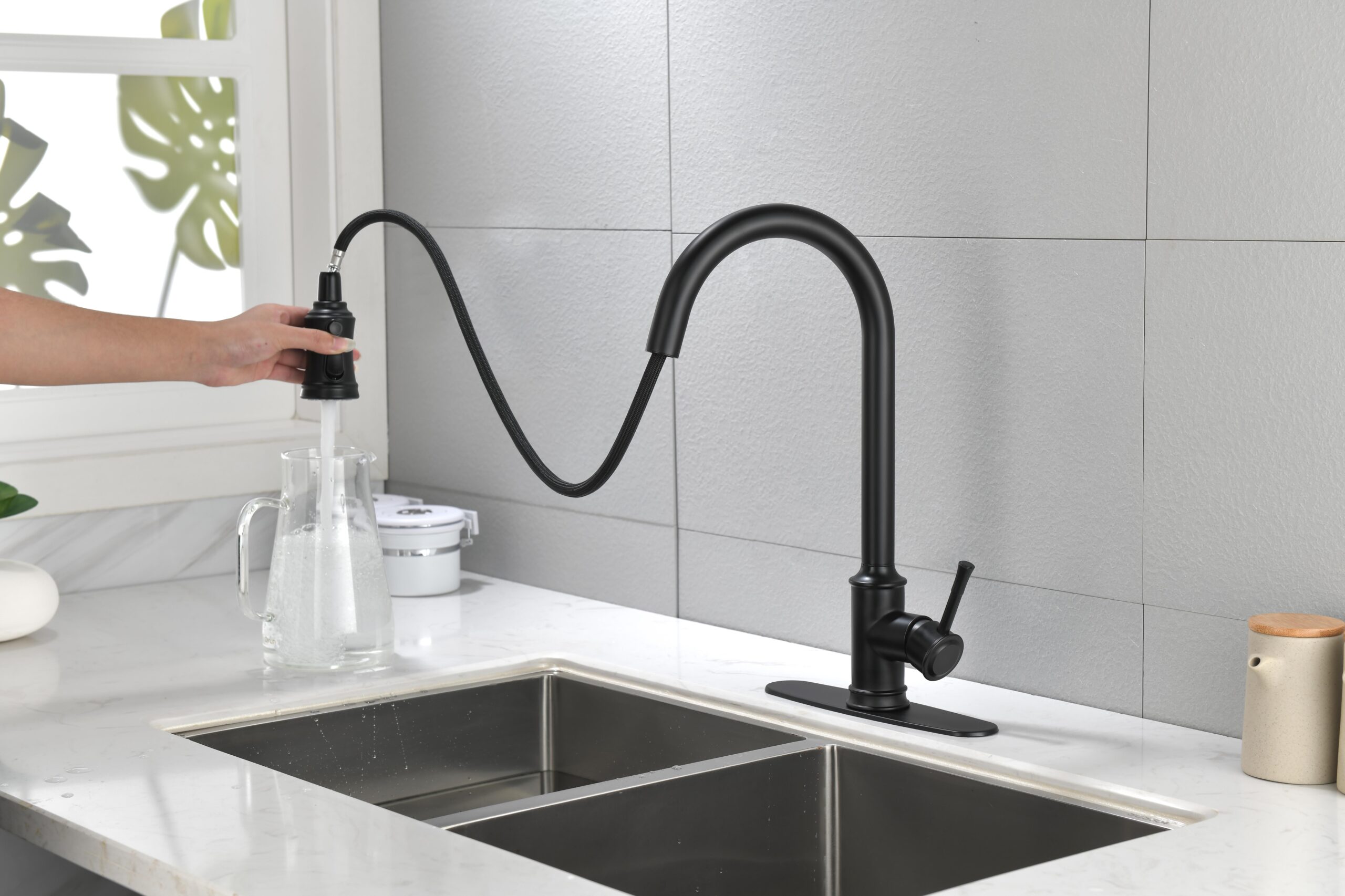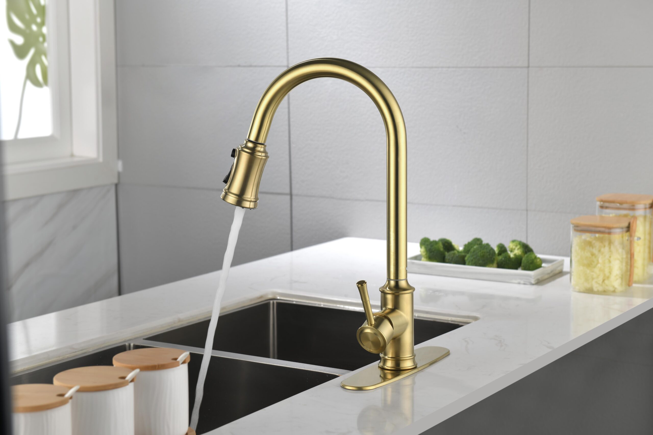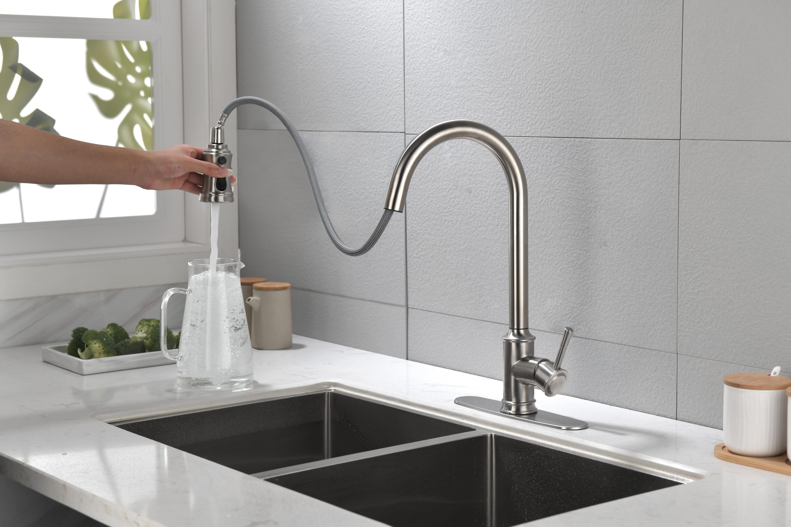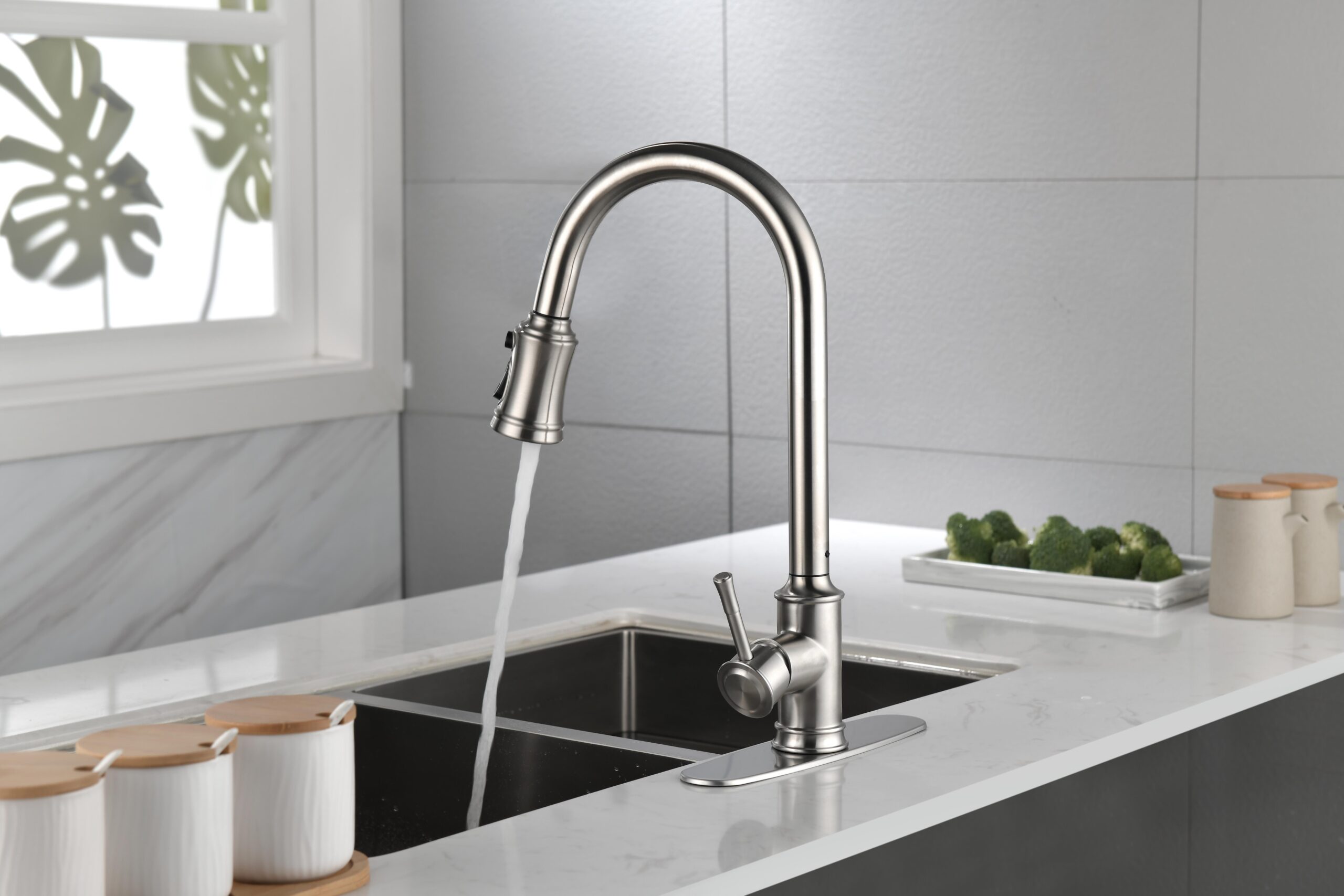 Double Outlet Water Pull-Down Spray: Easily Switch Between Spray And Steam Mode, Bringing Greater Convenience To Kitchen Cleaning.