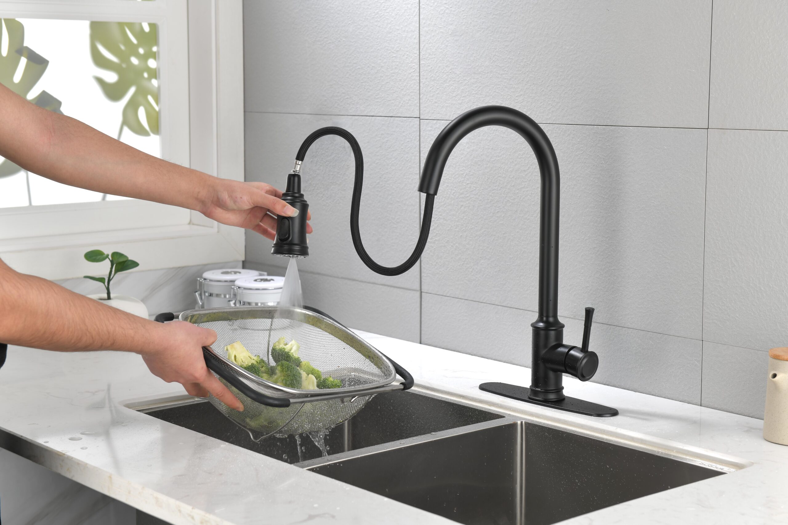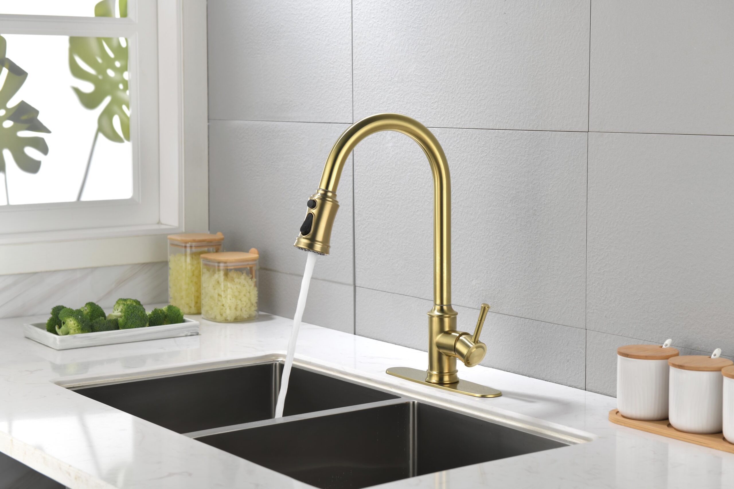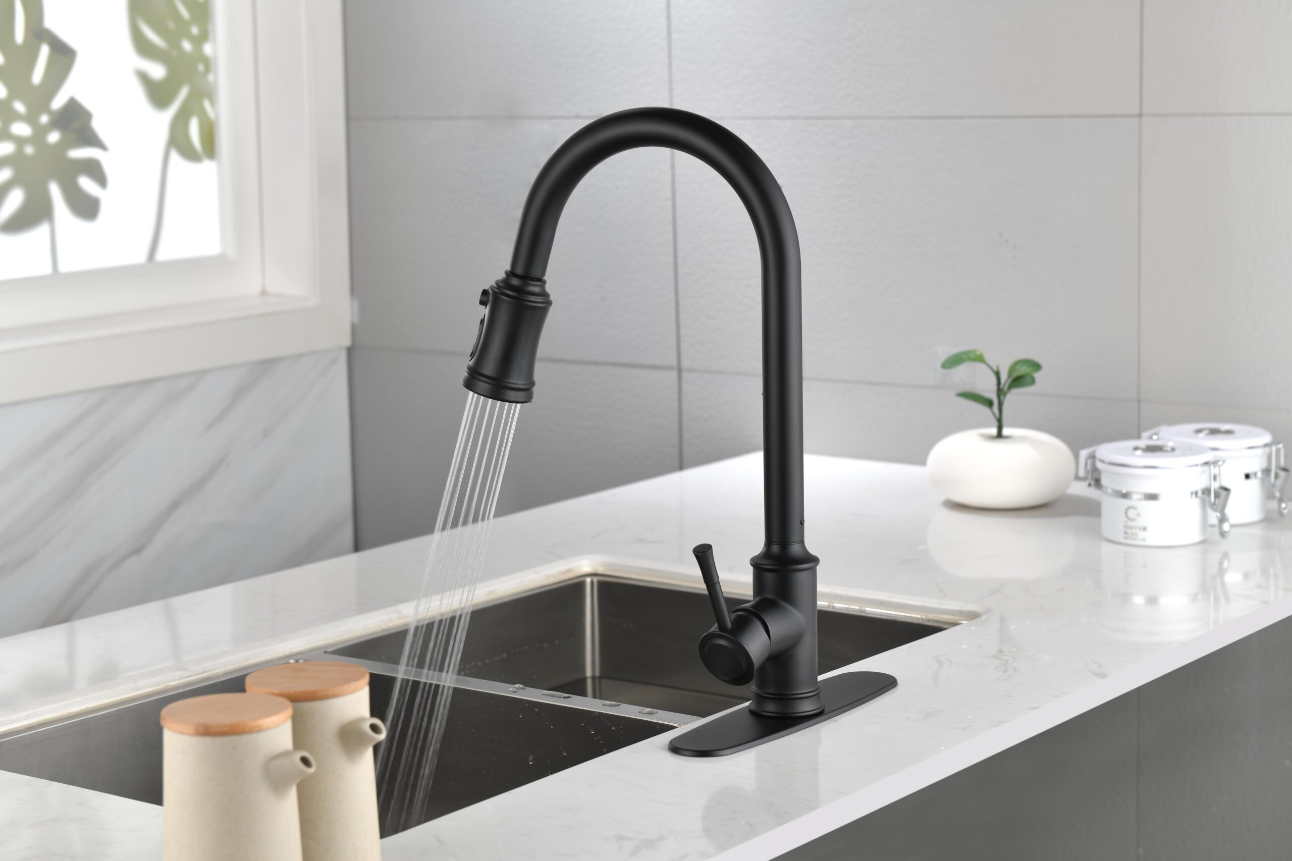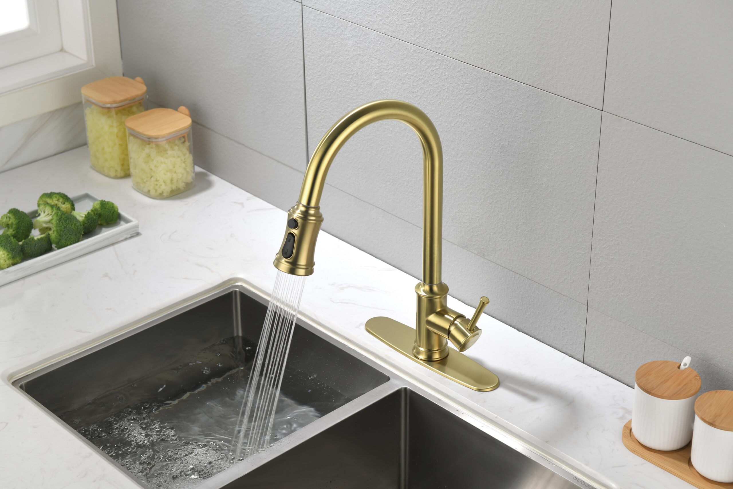 Double Outlet Water Pull-Down Spray: Easily Switch Between Spray And Steam Mode, Bringing Greater Convenience To Kitchen Cleaning.