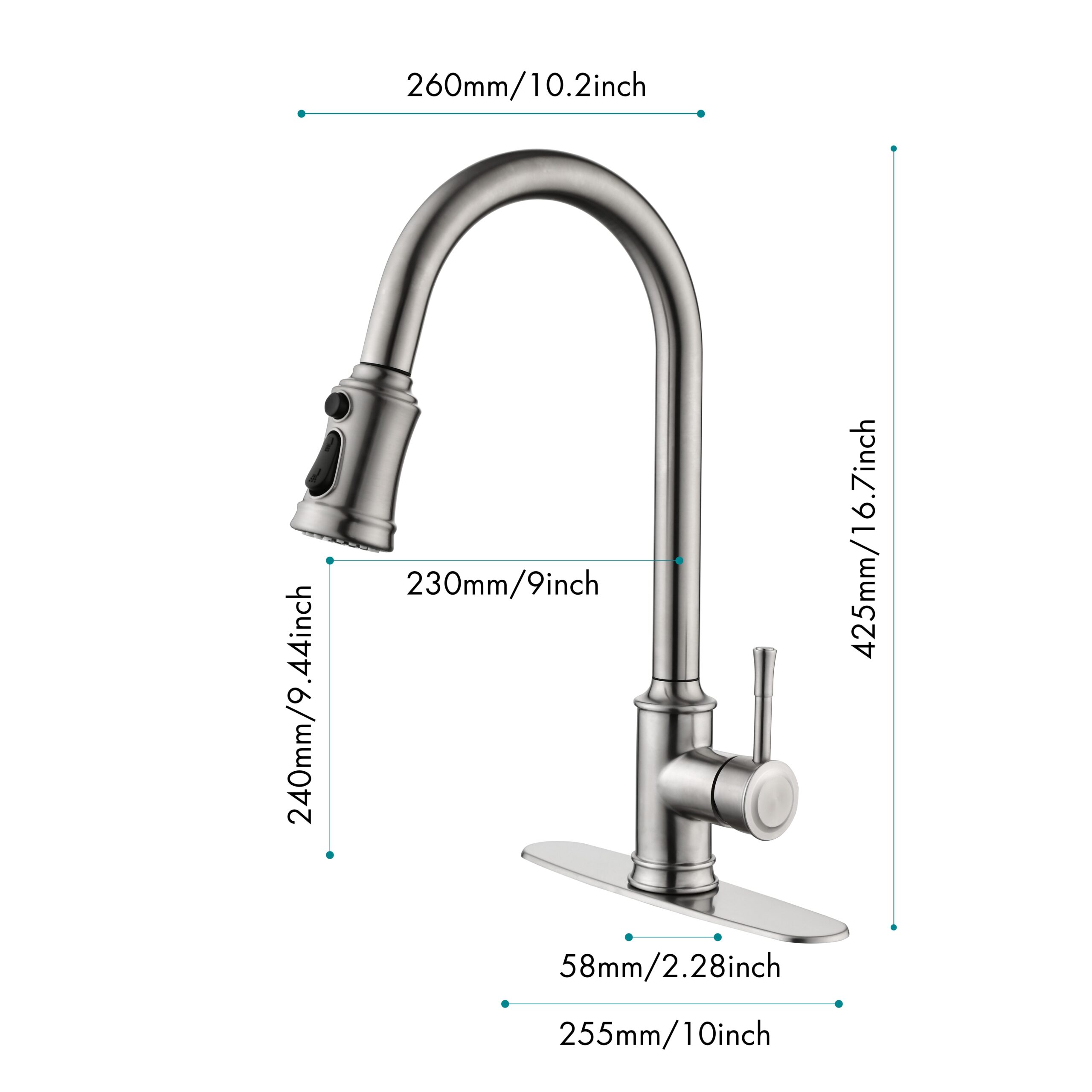 3.Double Outlet Water Pull-Down Spray: Easily Switch Between Spray And Steam Mode, Bringing Greater Convenience To Kitchen Cleaning.