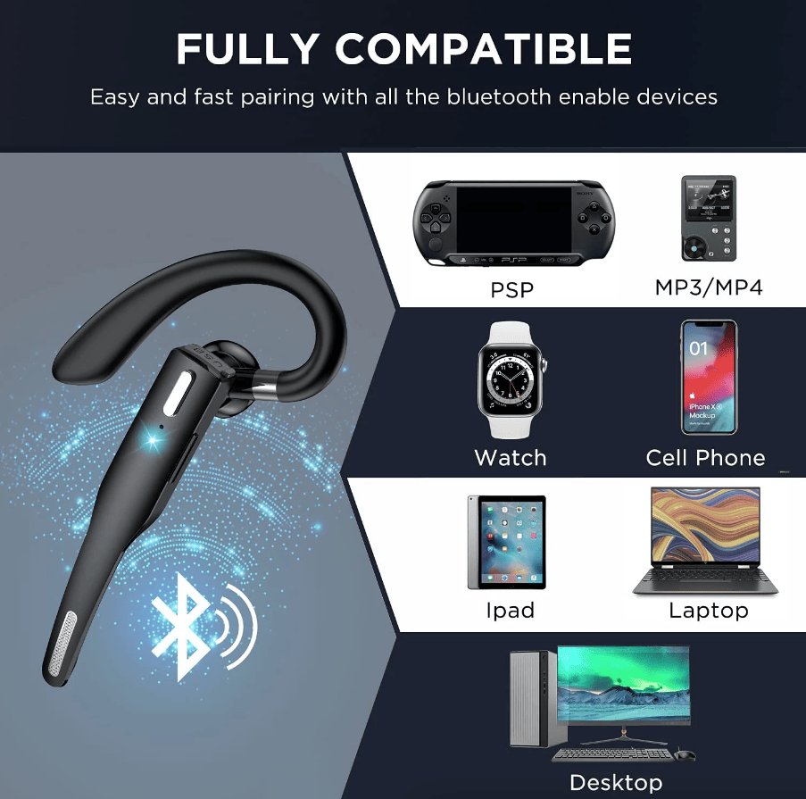 - BLUETOOTH HEADSET 5.1: Adopted Bluetooth 5.1 HD technology provide you super clear voice for talking. Fast and easy to pair any two phones and answer calls from either one.